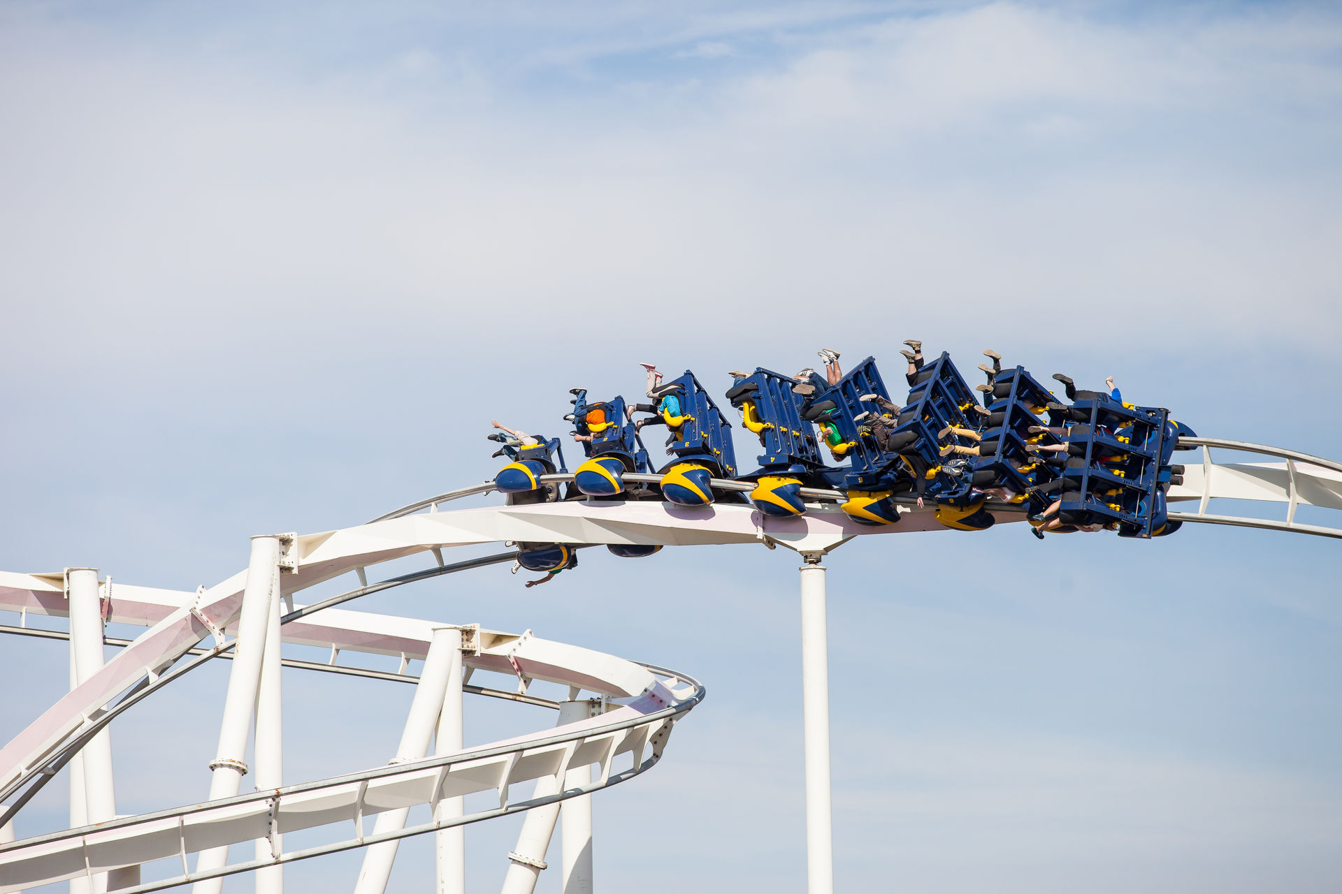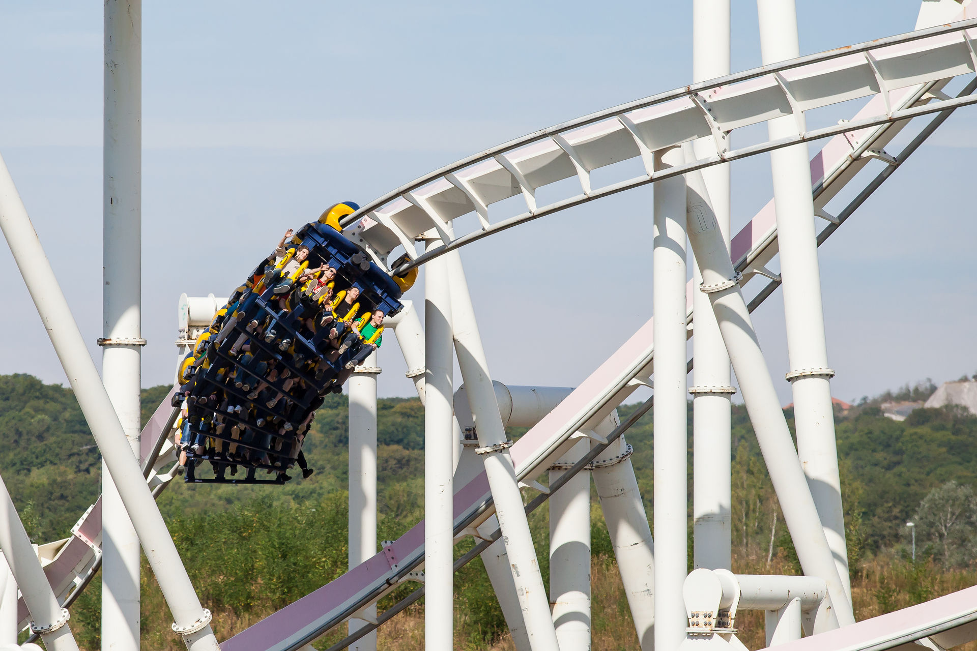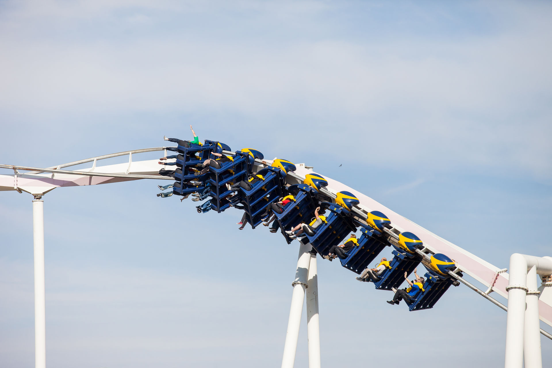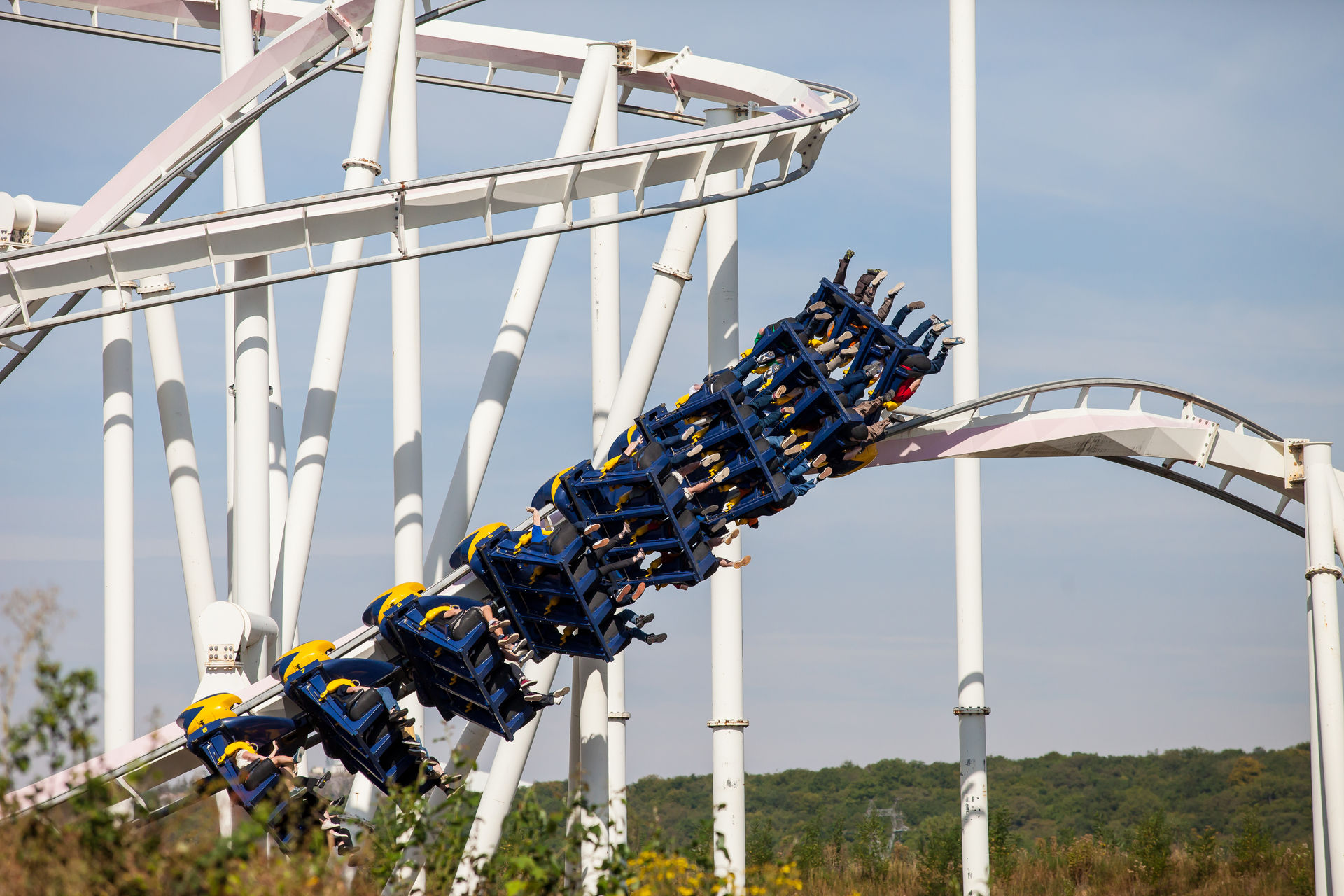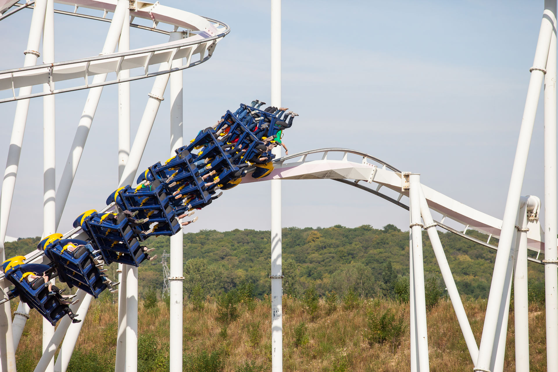 Ein Inverter mit diesen Ausmaßen war auch für mich Neuland, dementsprechend hoch waren die Erwartungen. Optisch machte die Bahn schon wesentlich mehr her, als es auf Bildern den Eindruck machte. Klar an einigen Stellen rostet der Stahlkoloss ein wenig, aber das strahlende weiß lässt darüber hinweg sehen. Die Fahrt ist typisch für einen B&M der alten Schule: sanft aber druckvoll. Vorallem die Abwärtshelix verdient das Prädikat besonder g-lastig. Das Monster ist eine super Bereicherung für den Park, zumindestens aus den Sicht eines Fans S