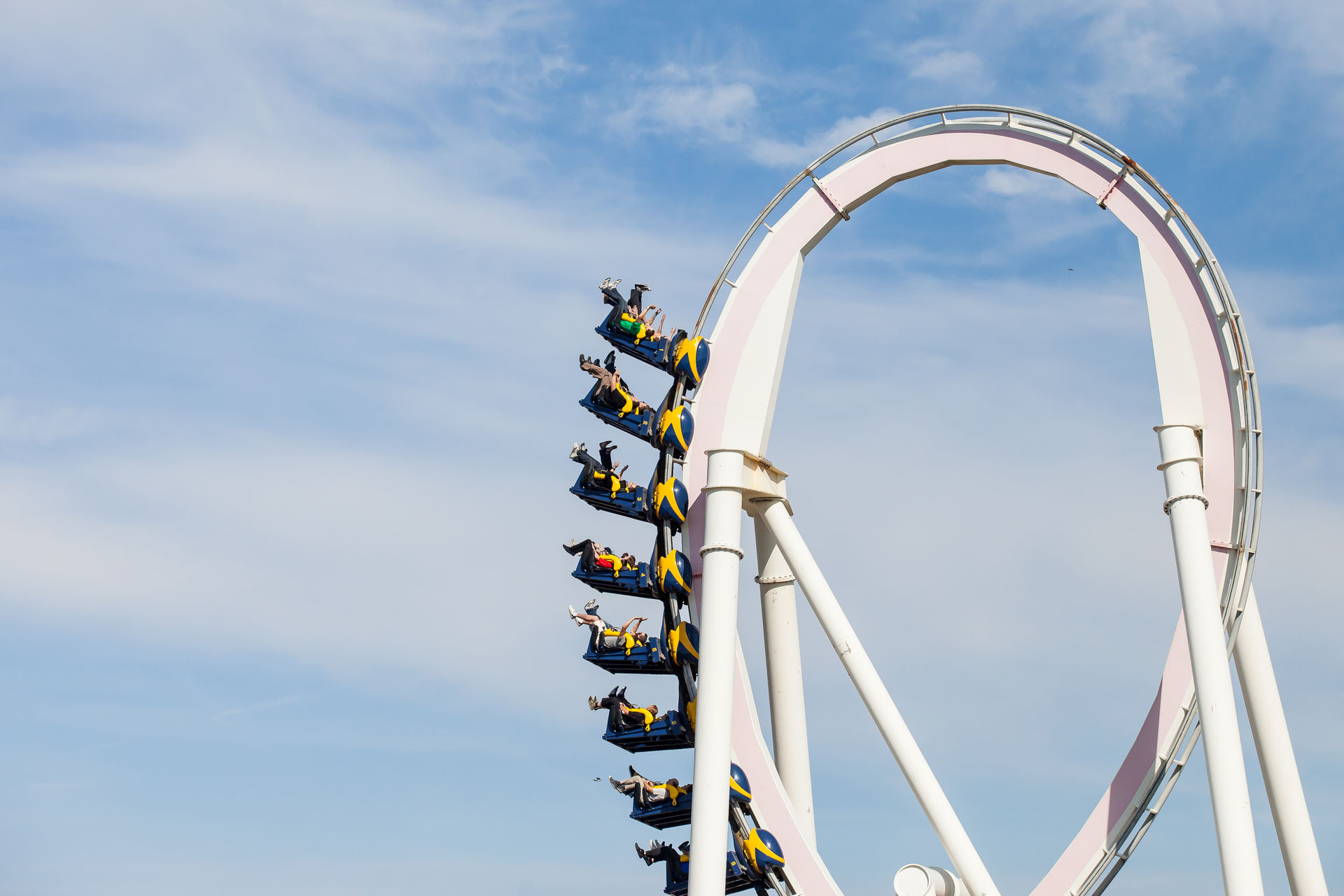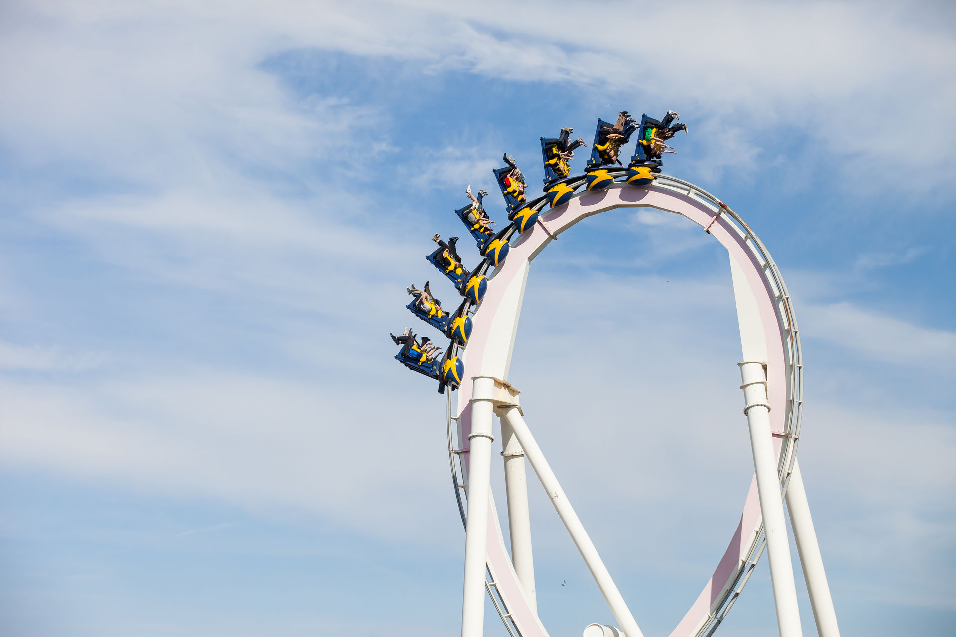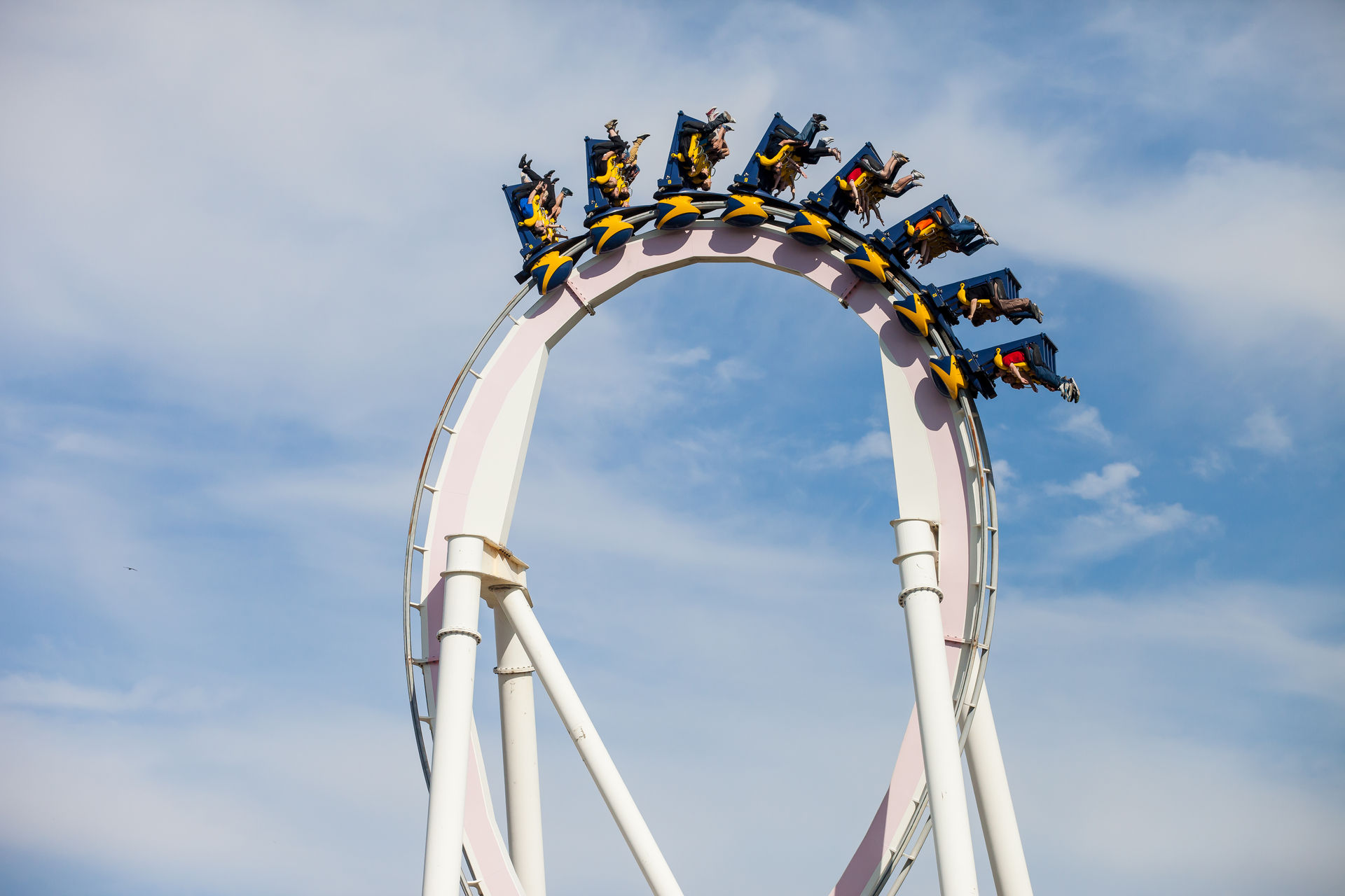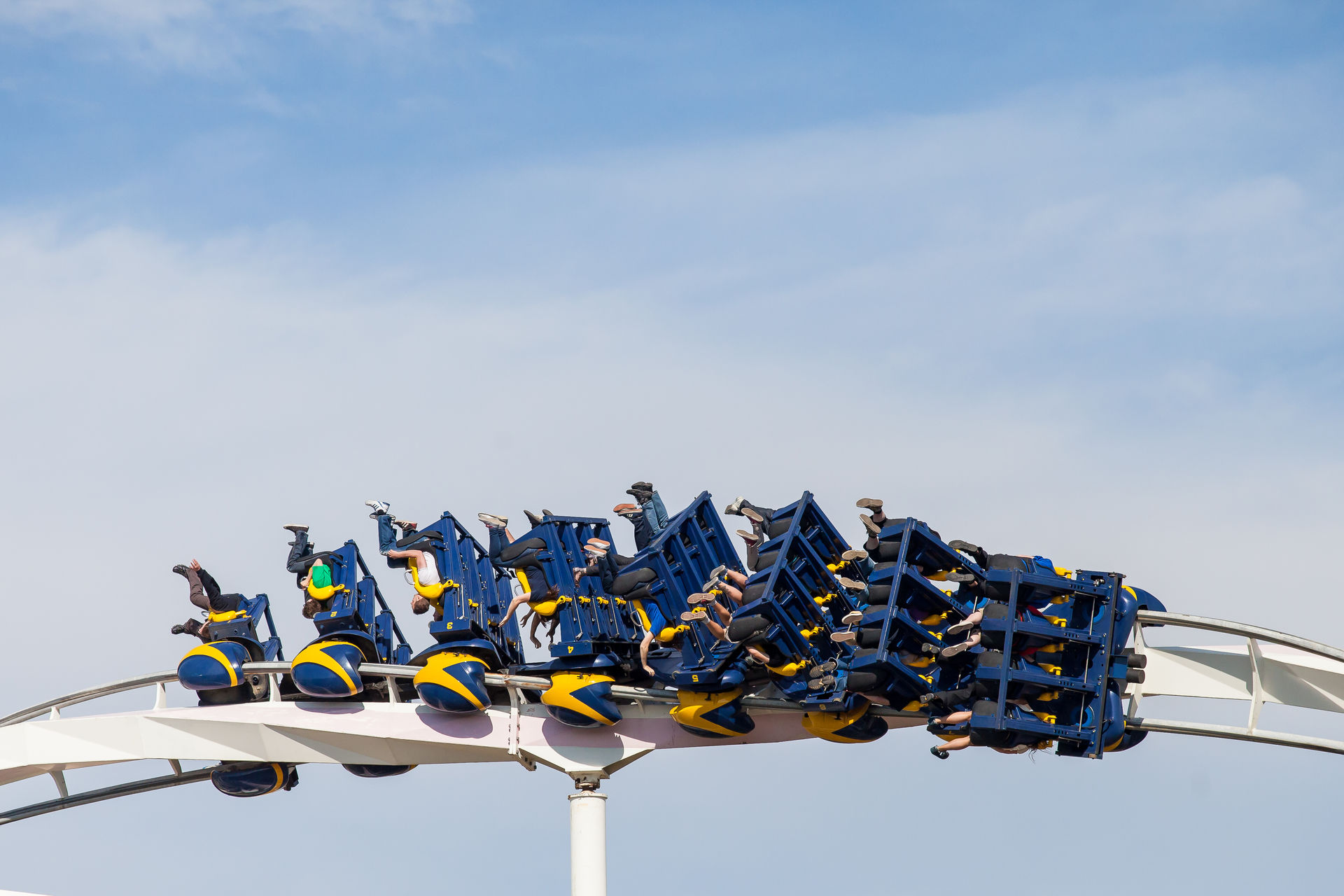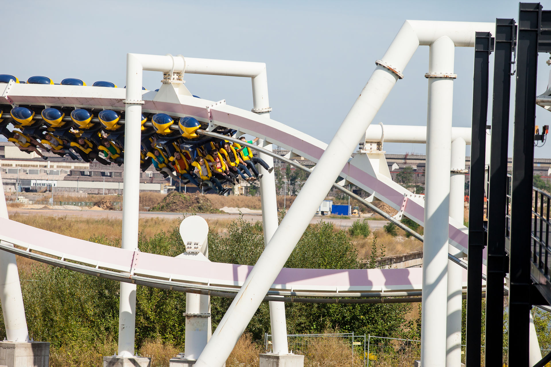 Ein Inverter mit diesen Ausmaßen war auch für mich Neuland, dementsprechend hoch waren die Erwartungen. Optisch machte die Bahn schon wesentlich mehr her, als es auf Bildern den Eindruck machte. Klar an einigen Stellen rostet der Stahlkoloss ein wenig, aber das strahlende weiß lässt darüber hinweg sehen. Die Fahrt ist typisch für einen B&M der alten Schule: sanft aber druckvoll. Vorallem die Abwärtshelix verdient das Prädikat besonder g-lastig. Das Monster ist eine super Bereicherung für den Park, zumindestens aus den Sicht eines Fans S