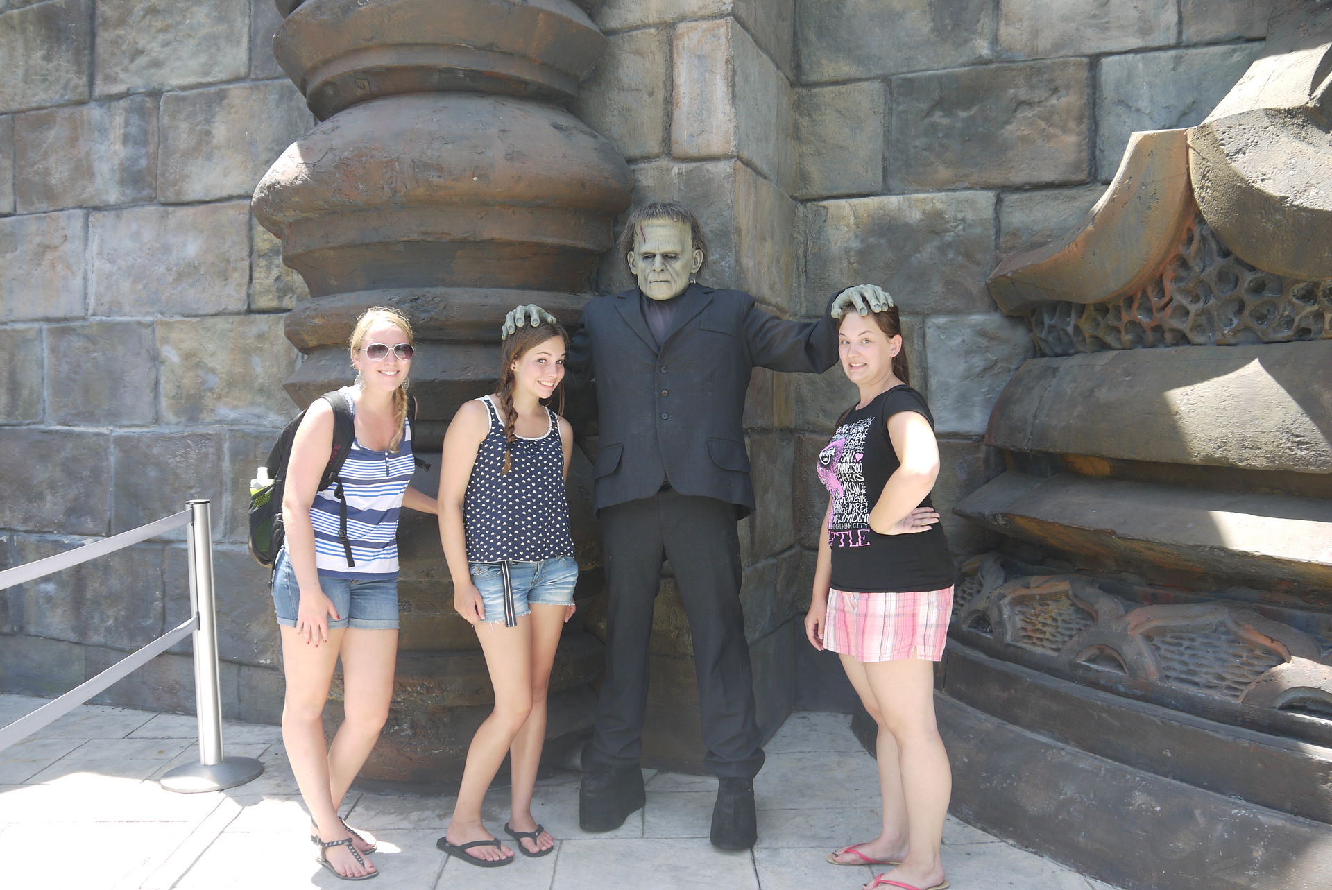 Am 10. Juli (Dienstag) ging es nach Hollywood und zu den Universal Studios. Um 7 fuhr der Bus los und nach knapp einer Stunde waren wir am Walk of Fame, wo wir eine Stunde hatten, um uns um zu schauen. Danach ging es wieder in den Bus und ab zu den Universal Studios. Dort angekommen, sind wir zusammen als Gruppe zuerst zur „Studio Tour“ gegangen, welche wirklich sehr sehr gut war, weil man viele der dort gefilmten Filme/ Serien selber kannte. Die Tour dauerte knapp 50 Minuten. Danach trennten wir uns von den Anderen, um uns erst mit „Shrek 4D“ und dann im „Lower Lot“ ein wenig Zeit zu vertreiben. Da ich ja im November in Orlando leider nicht die Mummy fahren konnte, wurde sich natürlich dort gleich als erstes angestellt. Nach gerade mal 10 Minuten konnten wir Platz nehmen. Die Fahrt an sich war wirklich sehr gut, vor allem das Theming gefiel mir sehr. Die Fahrt hätte ruhig ein wenig länger sein können. Das Foto wurde natürlich wieder gekauft, da der Park ja keine andere richtige Bahn zu bieten hatten. Da es sehr warm war, haben wir uns anschließend in „Jurassic Park“ gewagt, wo wir mehr als nass wurden. Danach ging es zu „Transformers The Ride“. Da dort eine Wartezeit bon 50 Minuten angezeigt wurde, sind wir als Single Rider reingegangen und konnten so schon nach nicht einmal 10 Minuten fahren. Die Fahrt war sehr schön und erinnerte mich ein wenig an Orlando im November, vor allem die eine Stelle, wo ein Feuerball auf einen zu kommt und die 3D Illusion in ein echtes Feuer übergeht, war super! Nach einem kleinen Lunch bei Panda Express ging es zu den Simpsons und dann zur „Waterworld“ Wassershow, die jetzt nicht gerade so super gut war. Leider wurden wir auch nicht so nass wie erhofft. Danach ging es durch das „House of Horrors“ weiter zum „Terminator 2: 3D“, war ganz gut gemacht. Wieder an der Sonne tanzten wir noch ein bisschen zu den Blues Brothers, die gerade spielten und dann war es auch schon Zeit den Park wieder zu verlassen.