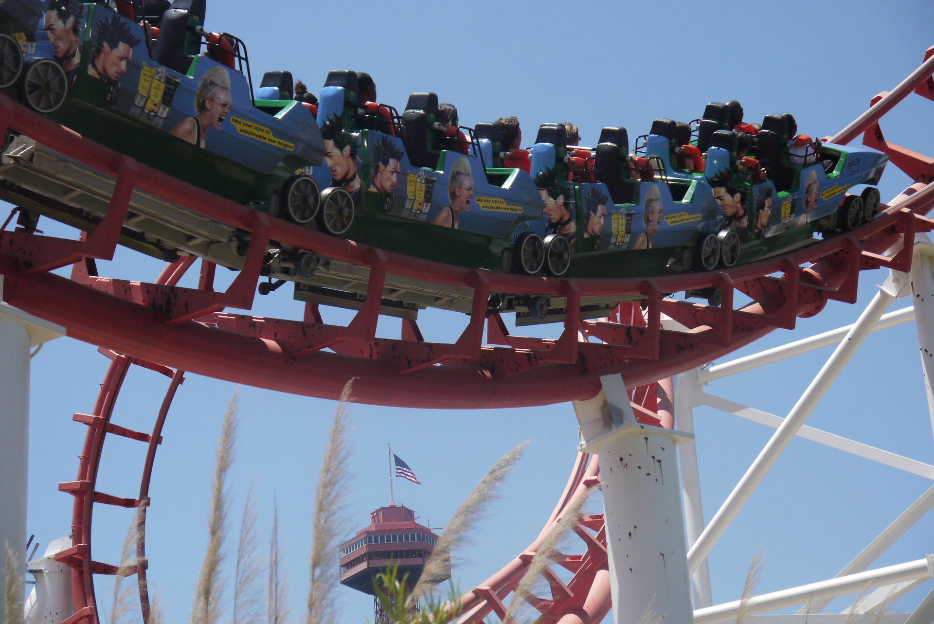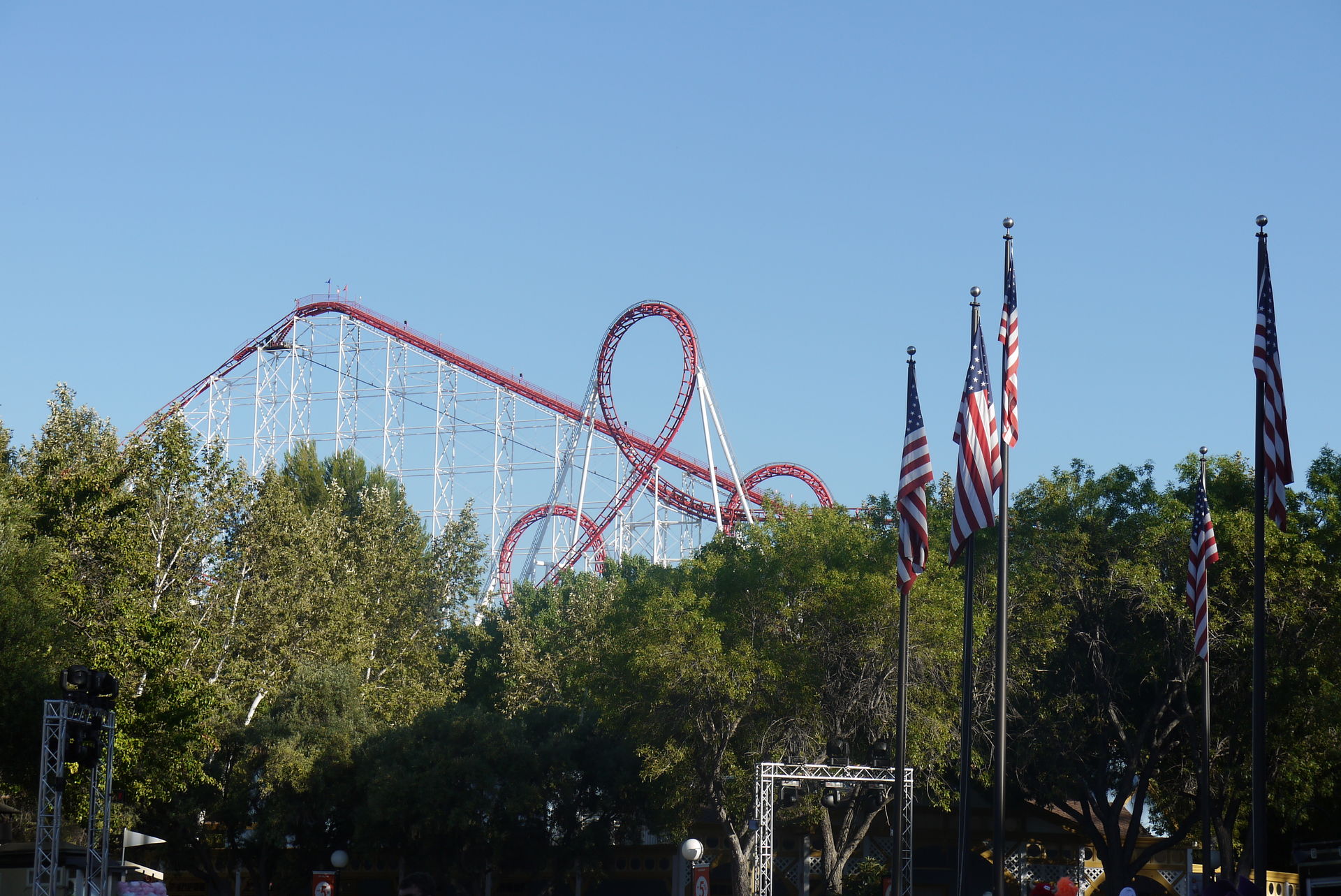 Am Dienstag, dem 17. Juli ging ein weiterer Traum für mich in Erfüllung: wir fuhren in den Six Flags Magic Mountain. Und schon einmal vorweg: NEIN, wie haben nicht alle Bahnen geschafft. Dies wäre an einem Tag selbst mit Flash Pass kaum zu schaffen und außerdem sind nicht alle gefahren. Da uns das Shuttle vom Hostel mit 50$ pro Person Roundtrip zu viel war, haben wir die Metro und 2 Busse genommen. Dies hat etwas mehr als 1,5 Stunden gedauert und nur 14$ Roundtrip gekostet. Da wir schon früh los fuhren waren wir gegen 10 schon am Park. Da dieser aber erst um 10.30 Uhr aufmachte hatten wir noch mehr als genug Zeit um Sarah einen Season Pass zu kaufen. Ich habe meinen ja schon.