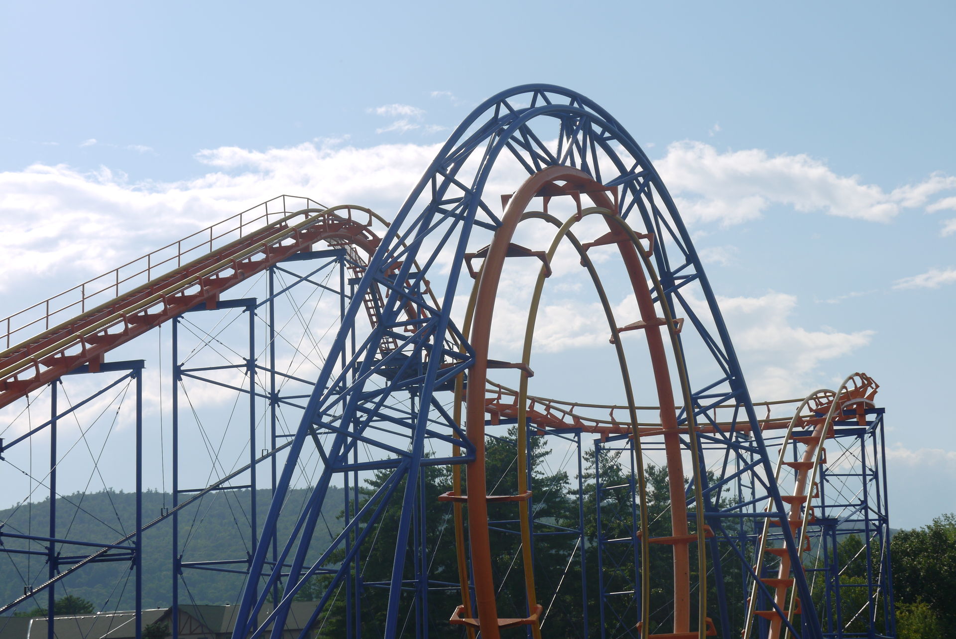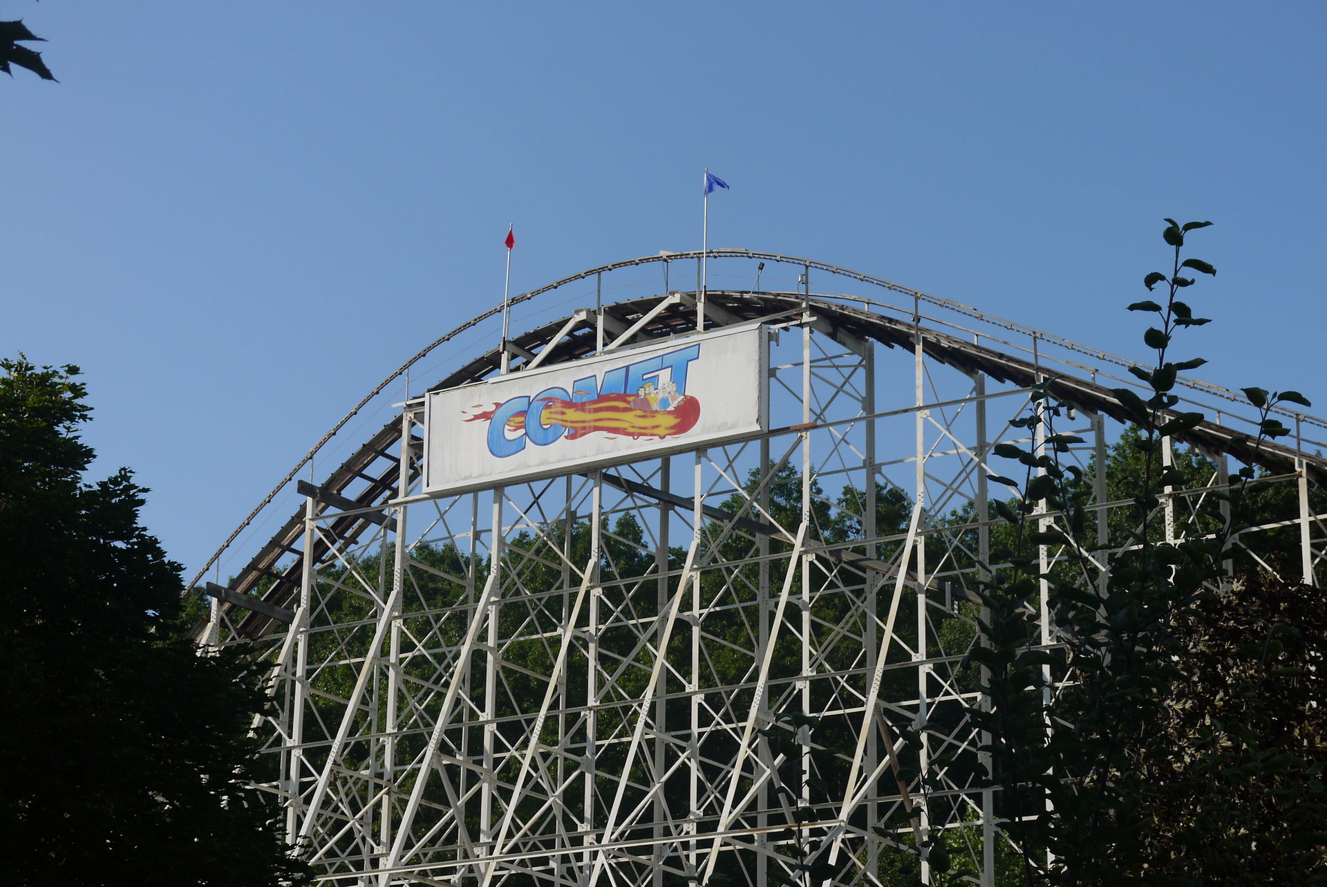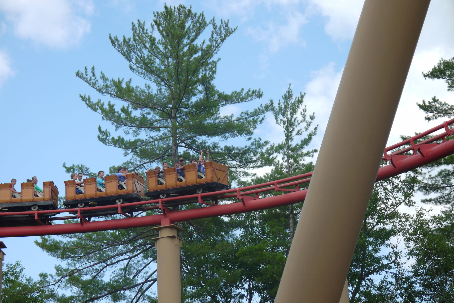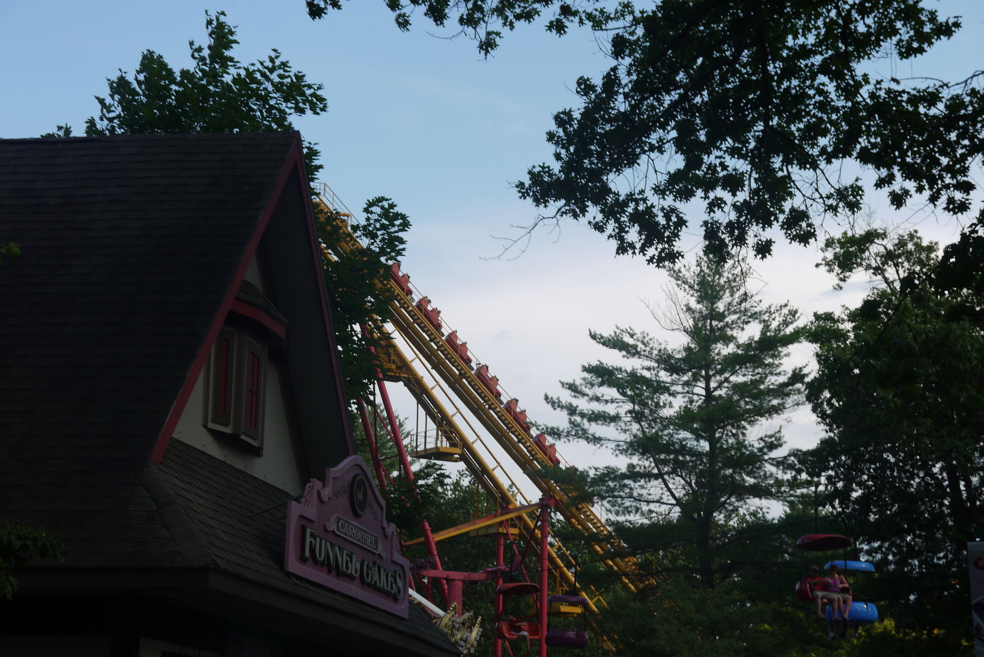Nach nicht mal 3,5 Stunden Schlaf waren wir alle wieder wach und machten uns fertig. Das ganze Auto musste nochmal aufgeräumt und organisiert werden, da wir ja nachts einfach nur alles hineingeschmissen haben. Nachdem wir uns fertig gemacht haben und das Auto wieder fahrbereit war, sind wir gegen kurz vor 11 Uhr Richtung Great Escape gefahren. Fast 3 Stunden später als geplant, aber die Nacht hat ja leider alles durcheinander gebracht und so mega toll war der Park ja eh nicht. Die Fahrt dauerte um die 3 Stunden, knapp an einem anderen Gewitter vorbei und entlang schöner Landschaften. Um kurz vor 3 kamen wir an unserem Campingplatz an, welcher nur 5 Minuten Fußweg vom Park entfernt lag. Nachdem wir unser Zelt aufbauten liefen wir zum Park, welcher jetzt nicht so grandios war. Zuerst wagten wir uns in den “Canyon Blaster“, einer Familienachterbahn. Danach ging es in die Wildwasserbahn, die aber alles andere als wild war und dann ging es zum “Steaming Demon“. Ein Demon war diese Bahn mehr als gedacht, allerdings für Kopf und Ohren. Aua. Immer noch mit Schmerzen in den Ohren und im Kopf wollten wir zur Bobbahn. Da diese aber nicht fuhr stellten wir uns stattdessen beim Rafting an, wo wir auch schön nass wurden. Anschließend gönnten wir uns “Deep Fried Brownie Bites“ mit Eis und gingen dann zum “Comet“, welche wir sehr gut fanden und sie deswegen auch gleich mehrmals fuhren. Danach hatten wir quasi schon den ganzen Park durch (“Boomerang Coast to Coaster“ ließen wir aus, da uns die Bahn ja schon in dem anderen Park nicht gefiel). Um halb 7 machten wir uns schon wieder auf den Weg zu unserem Zelt, fuhren dann zu Pizza Hut und schliefen dann irgendwann ein. Diese Nacht ohne Gewitter und im Zelt.