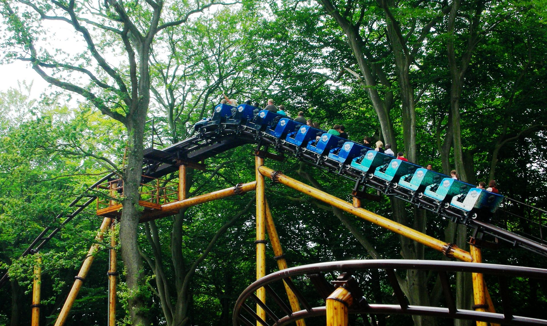 Zierer ebenso wie eine absurde Zuglänge und ein Setting in unangetasteter Natur. All diese Elemente verbinden sich in Duinrell und ergeben eine stimmige Kikkerachtbaan, die jedoch inzwischen unterhalb von Splash und Dragon Fly ihre Runden dreht, wodurch die Umgebung der Bahn eher schattig als natürlich wirkt. Dies tut der Kikkerachtbaan jedoch keinen Abbruch; Sie bleibt einfach die perfekte Bahn für Klein und Mittelgroß, deren auffallend blaue Züge sich hoffentlich noch viele Jahre durch den (Stützen-)Wald schlängeln dürfen. An diesem Dienstag sollten unsere Herzen allerdings für