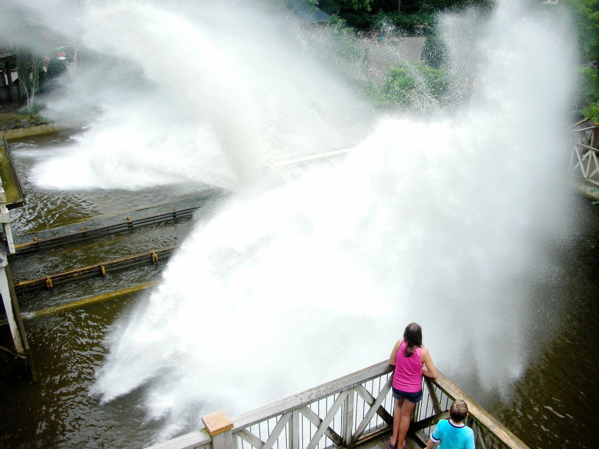 Bei manchen Freizeitparkbesuchern bekommt man das Gefühl, dass man es ihnen in einer Wasserbahn einfach nicht recht machen kann. Zwischen "trocken" und "frisch geduscht" gibt es einfach keine weiteren Abstufungen für sie. Splash treibt diese Schwarzweißmalerei auf die Spitze, wo sie als ironische Selbstreflexion einer gesamten Vergnügungsindustrie samt Klientel auf der Metaebene kulminiert ... ähm, was? Worauf es ankommt: Duinrell lässt durch den Einsatz von zwei verschiedenen Booten seine Gäste selbst entscheiden, wie sie aussteigen möchten. Bietet "de gesloten boot" eine halbwegs trockene Reise, sieht man aus "de offen boot" absolut niemanden mit trockenem Auge aussteigen.