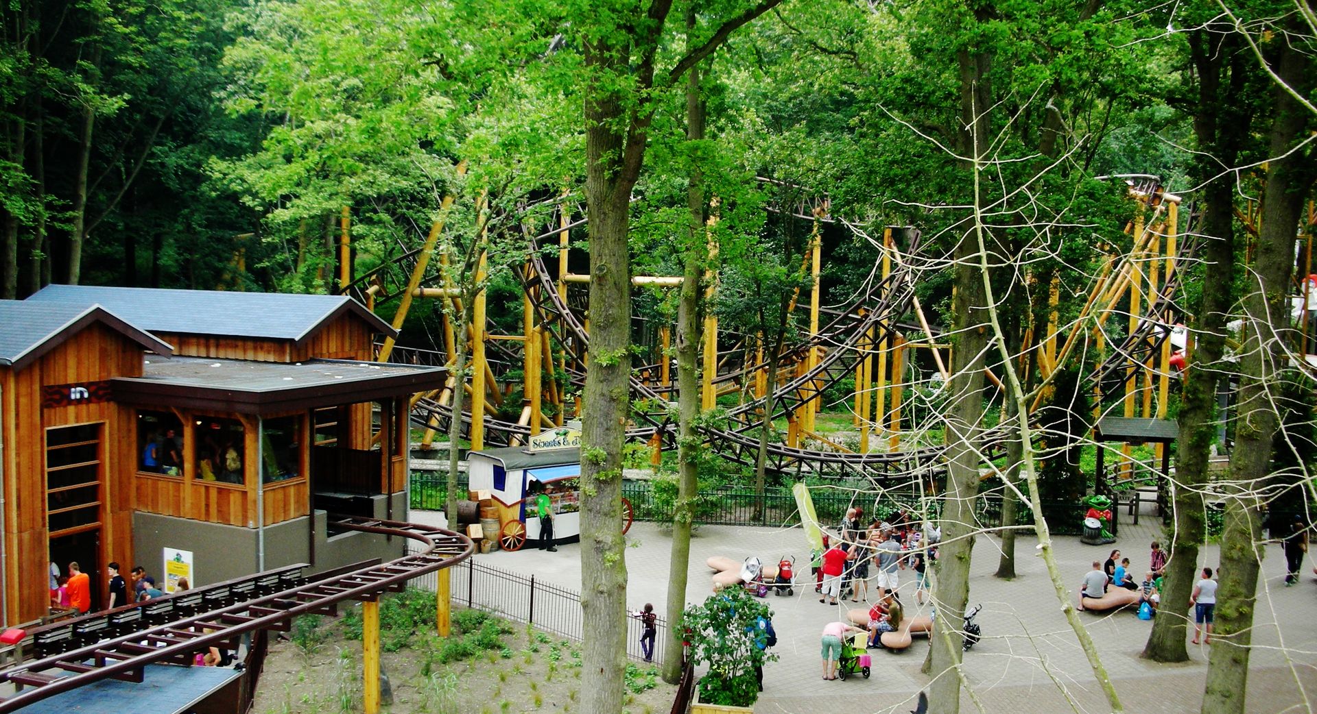 Am Eingang lösten wir Kombitickets, mit denen man für einen schlappen Aufpreis von 3,50¤ nicht nur Duinrell, sondern außerdem noch das Tikibad für zwei Stunden besuchen darf. Nach Betreten des Parks begann sofort die Suche nach der Kinderachterbahn von