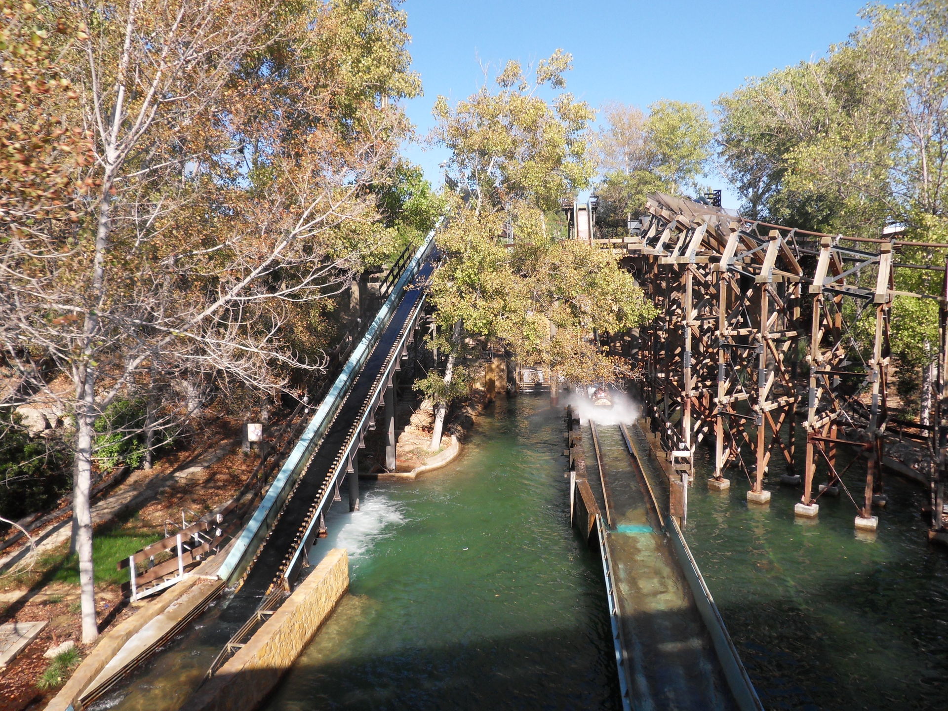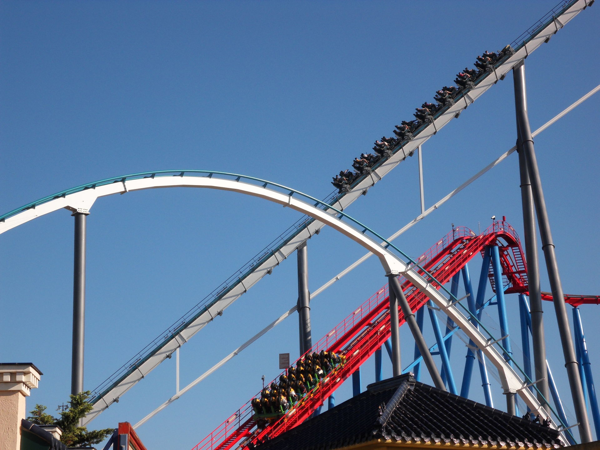 Beide Coaster erklimmen den Lifthill