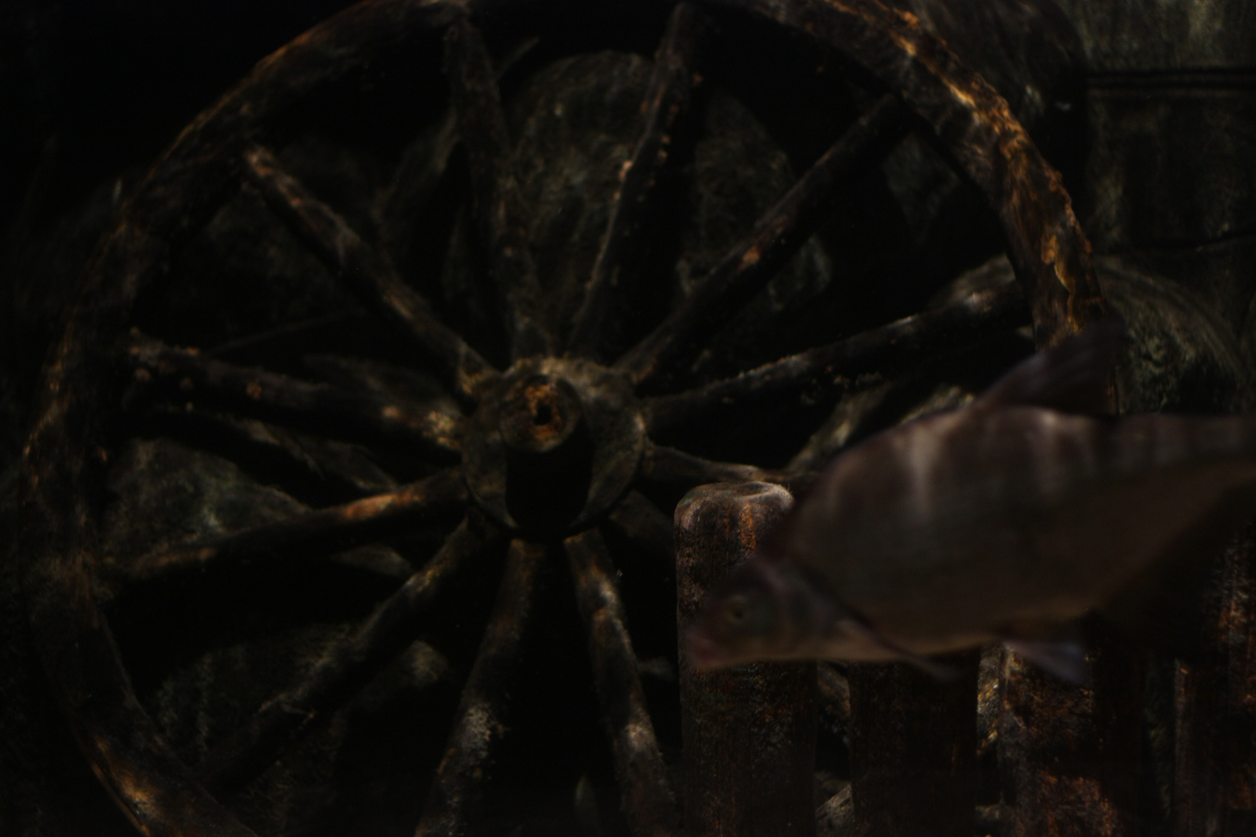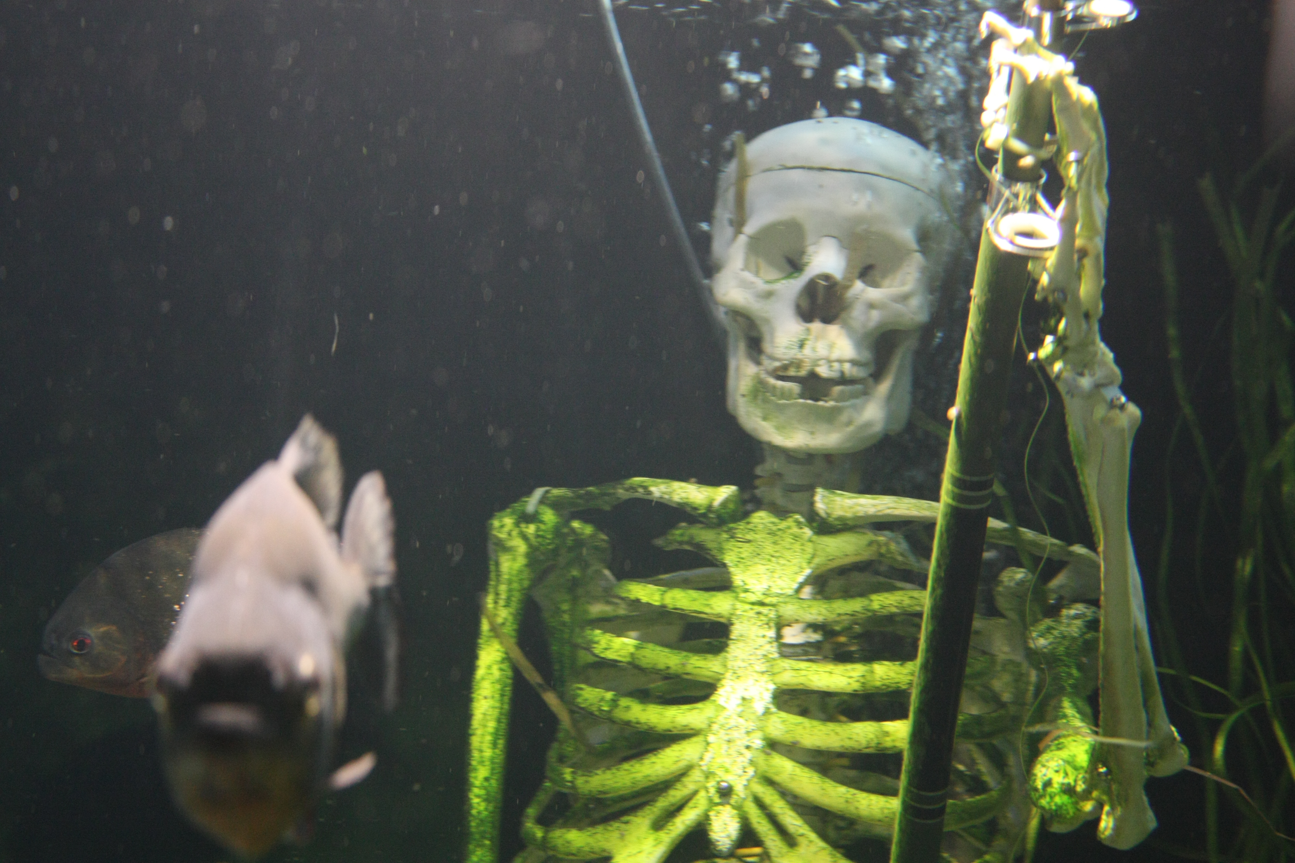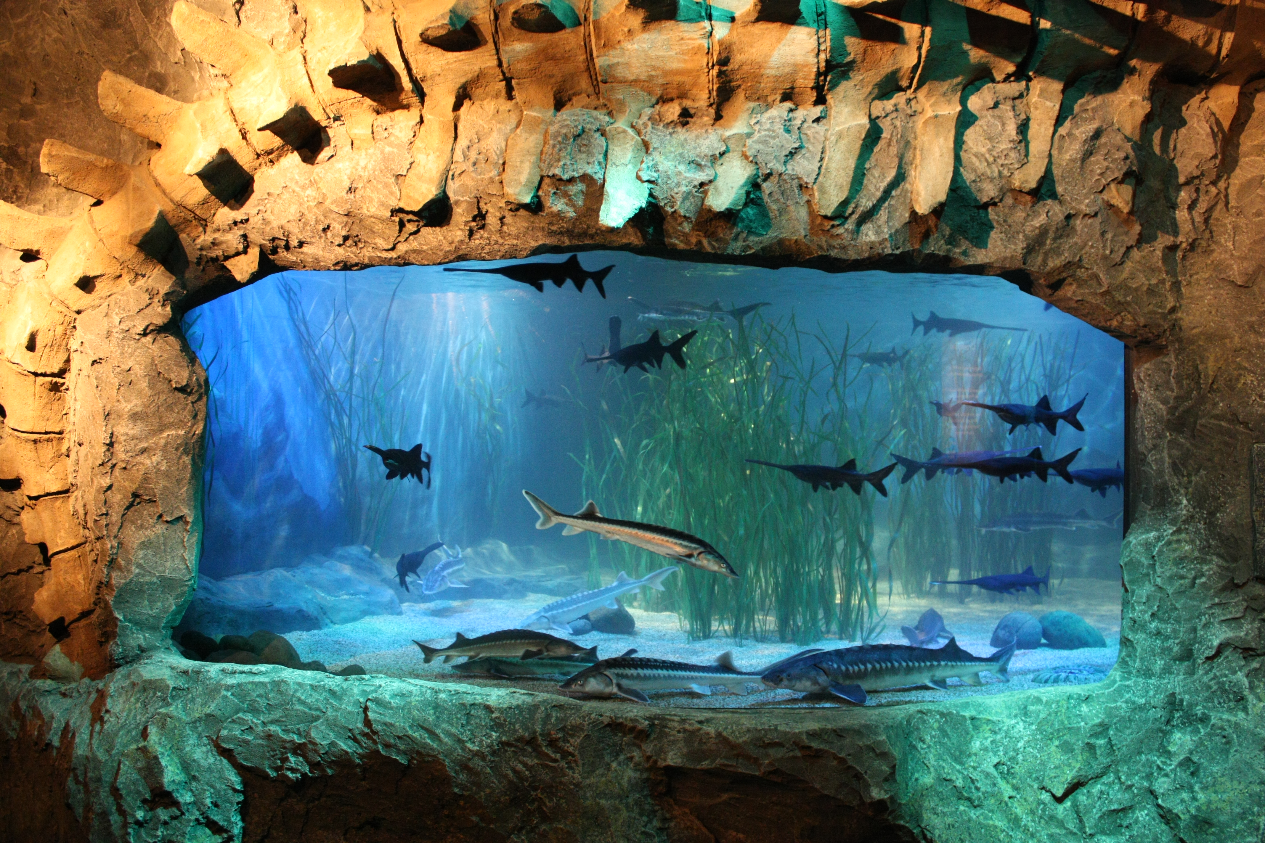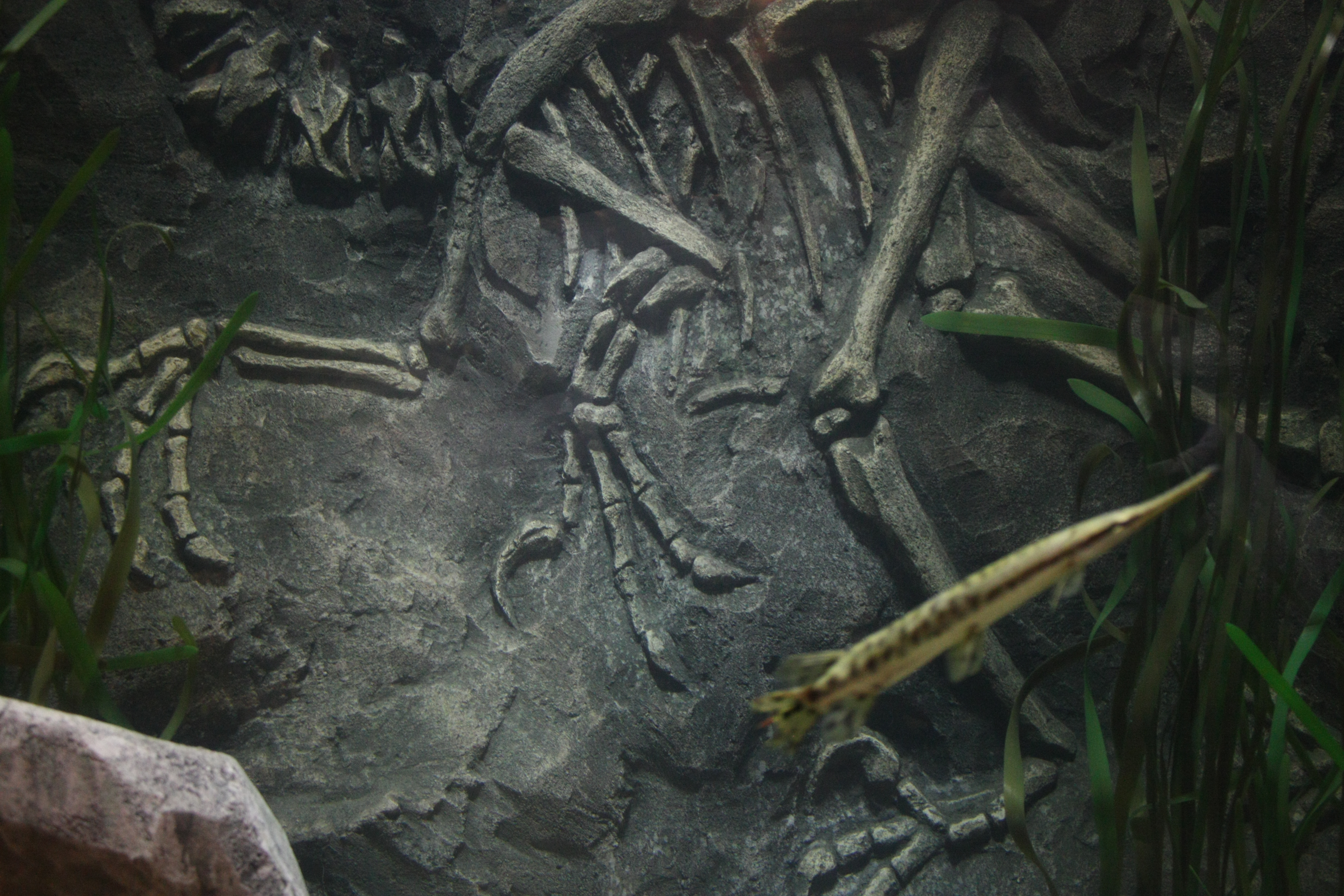 Dieser schöne, freundliche Fisch steht in unmittelbarer Nähe zum Aufzug, mit dem man in wieder nach oben fahren kann.
