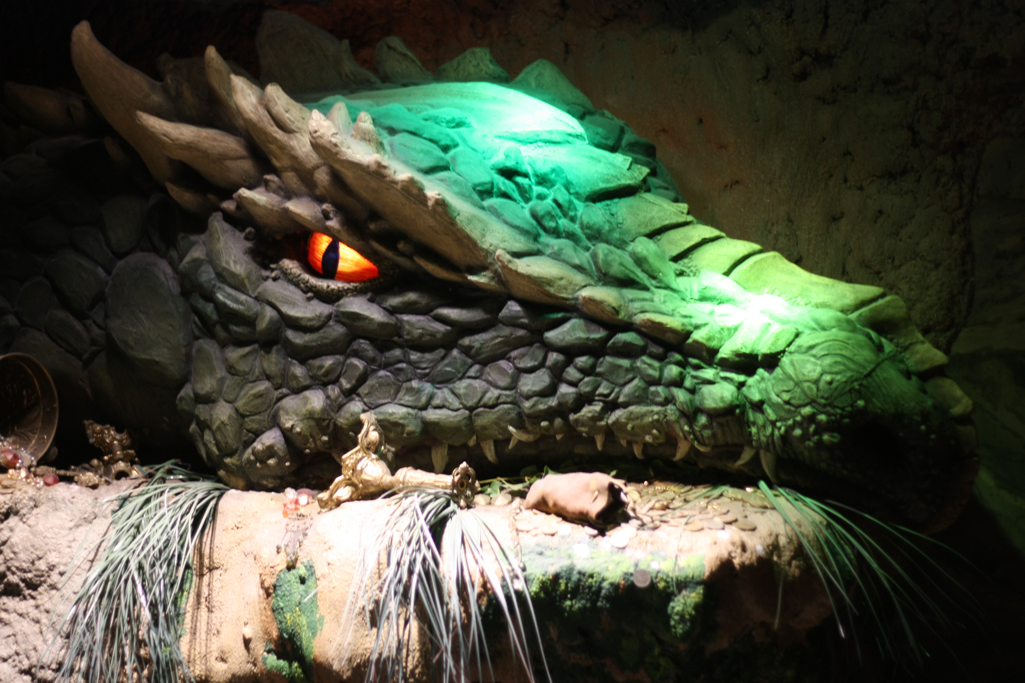 Der wirklich toll gestaltete Drache windet sich durch den ganzen Raum und durchbricht dabei die ein oder andere Wand.