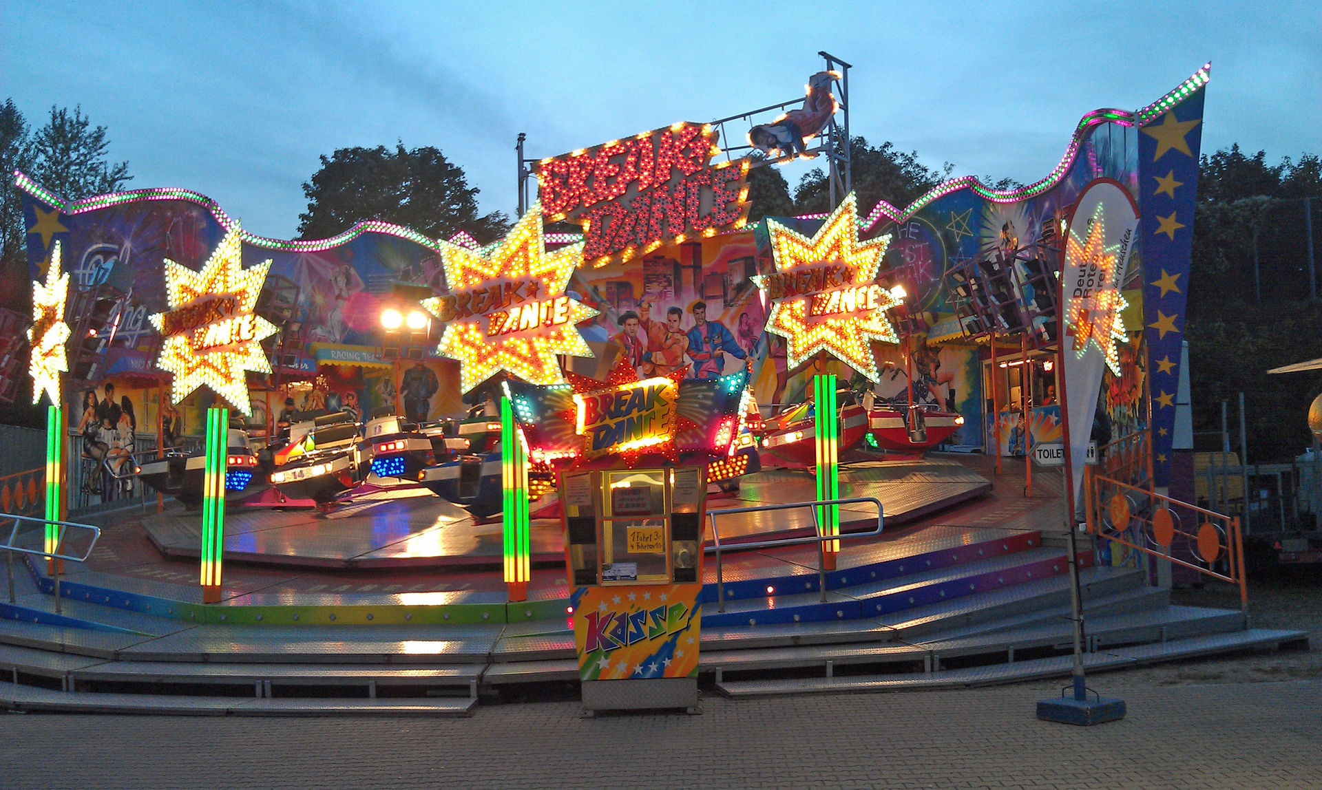 Skooter gab es auch. Wenn man die 40 Crepes Buden mitrechnet, kommt das mit den 50 Schaustellern auch hin. An den Wochenenden und Mittwochs am Familientag soll mehr los sein, flüsterte mir zumindest die Waffelbäckerin. Hat sie sicher auch recht mit - weniger geht ja nicht.