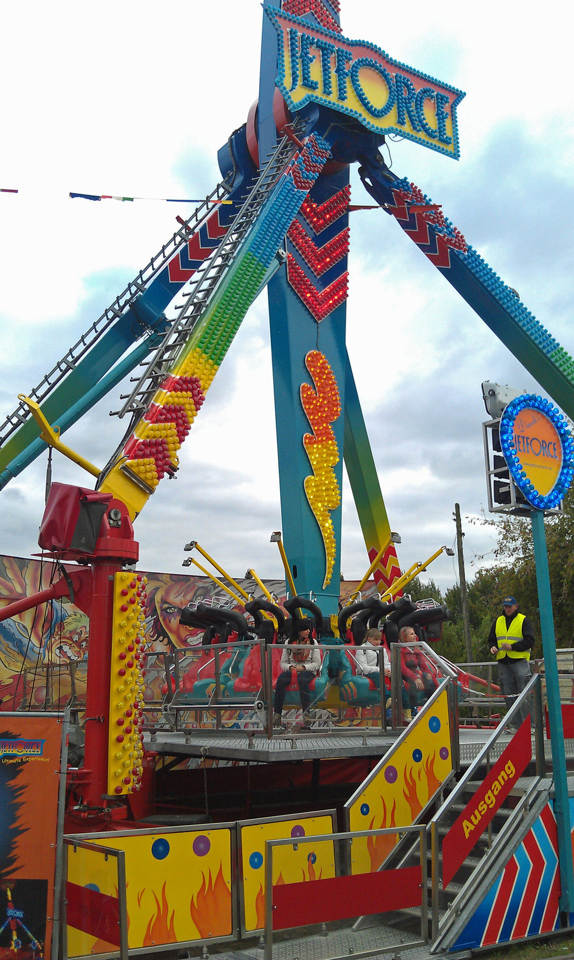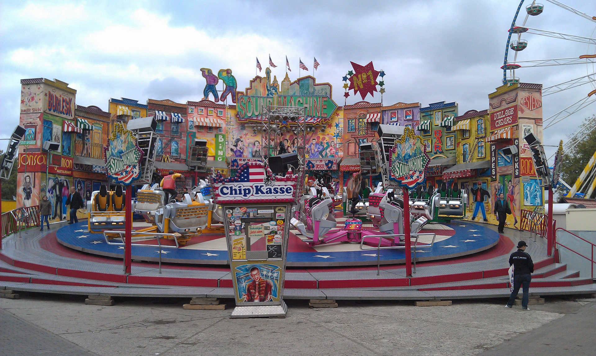 Auf dem nächsten Eckplatz Weltes Soundmachine, welche mich vor allem durch seine gnadenlose Lautstärke der Musik von einer Fahrt abhielt. An eine gepflegte Konversation in onride Manier - sprich rumstehen und essen - gegenüber am Wurststand war nicht zu denken.