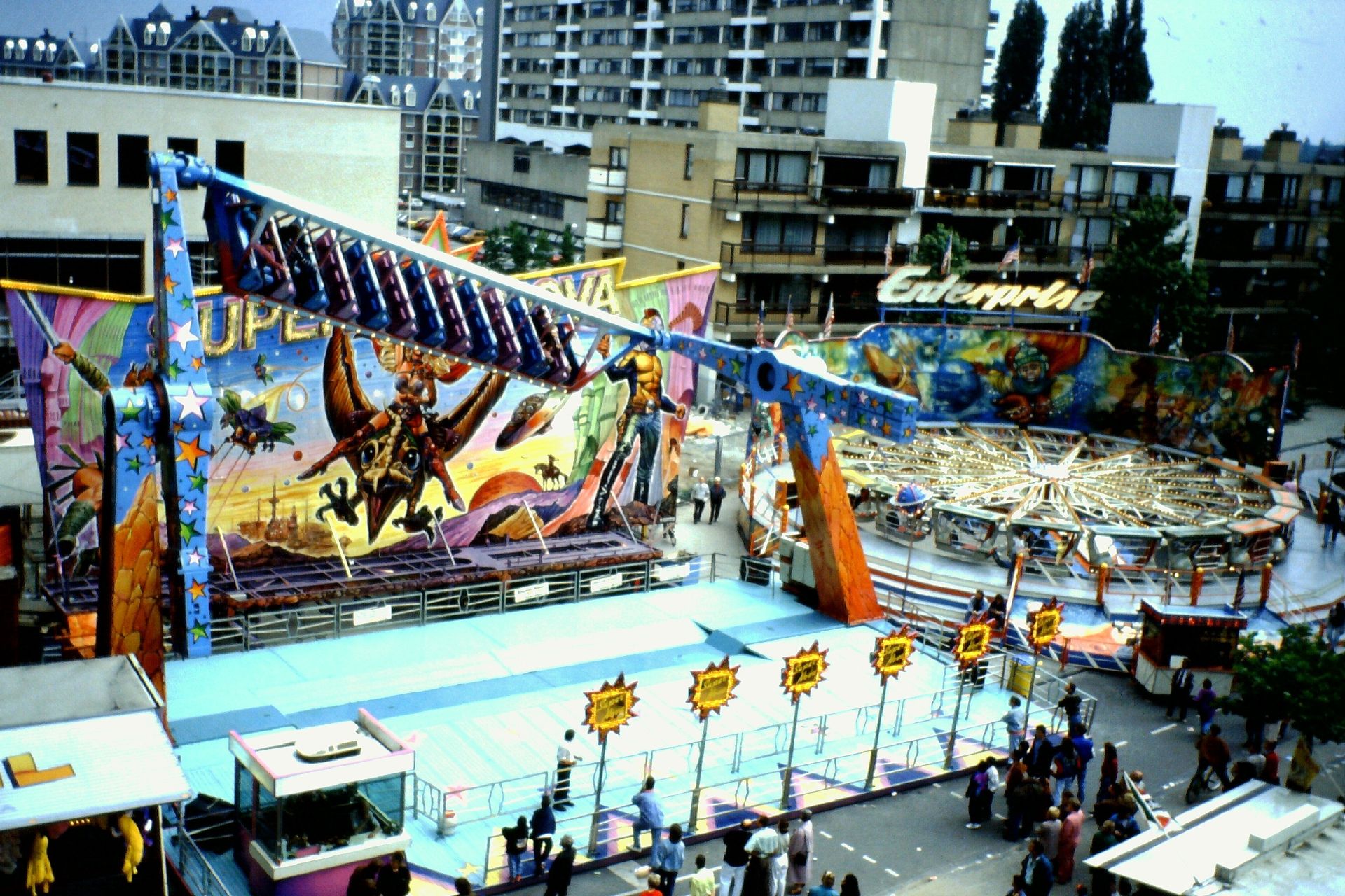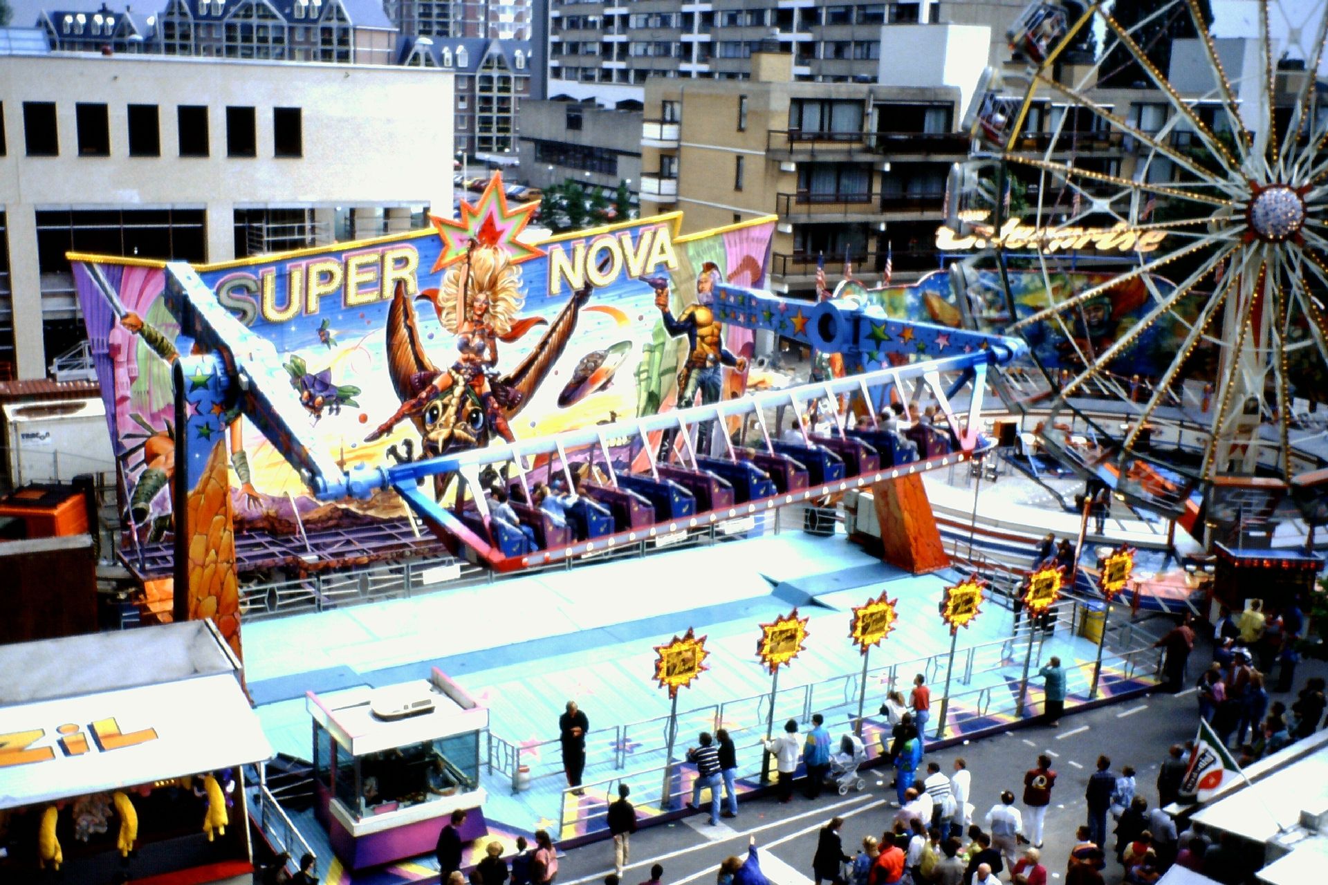 in Berlin bin ich vor Ewigkeiten noch eine Super Nova mit dem Namen "Crazy (oder war es Flying?) Tiger" gefahren. Die Anlage war wie ein Dschungel thematisiert, grüne Farben dominierten und die Gondel hatte einen Tigerkopf vorne dran.