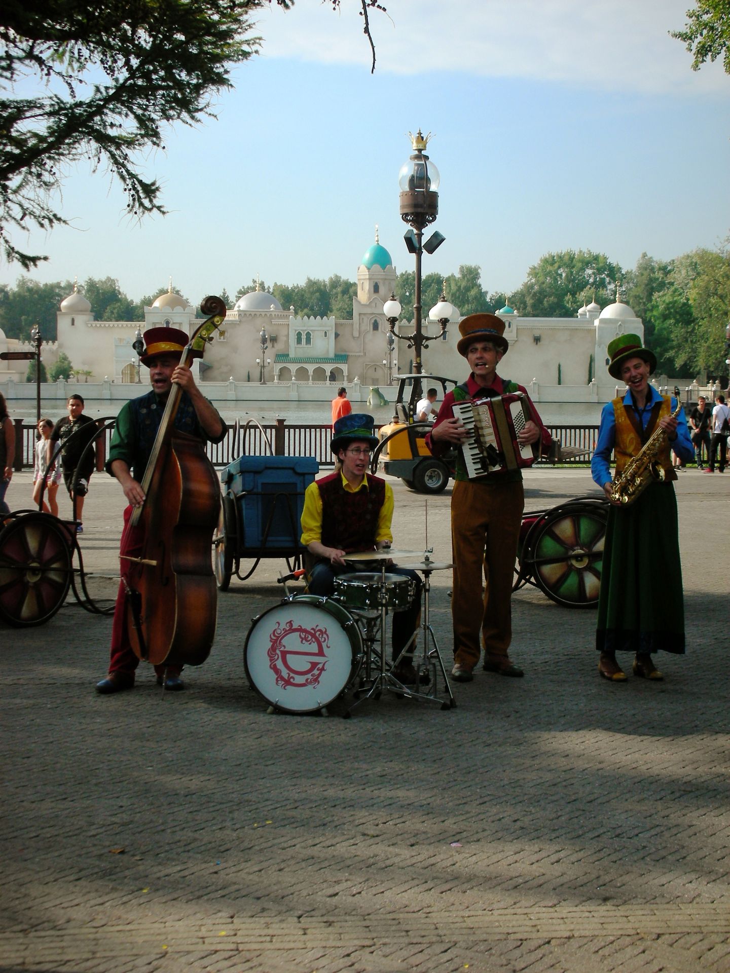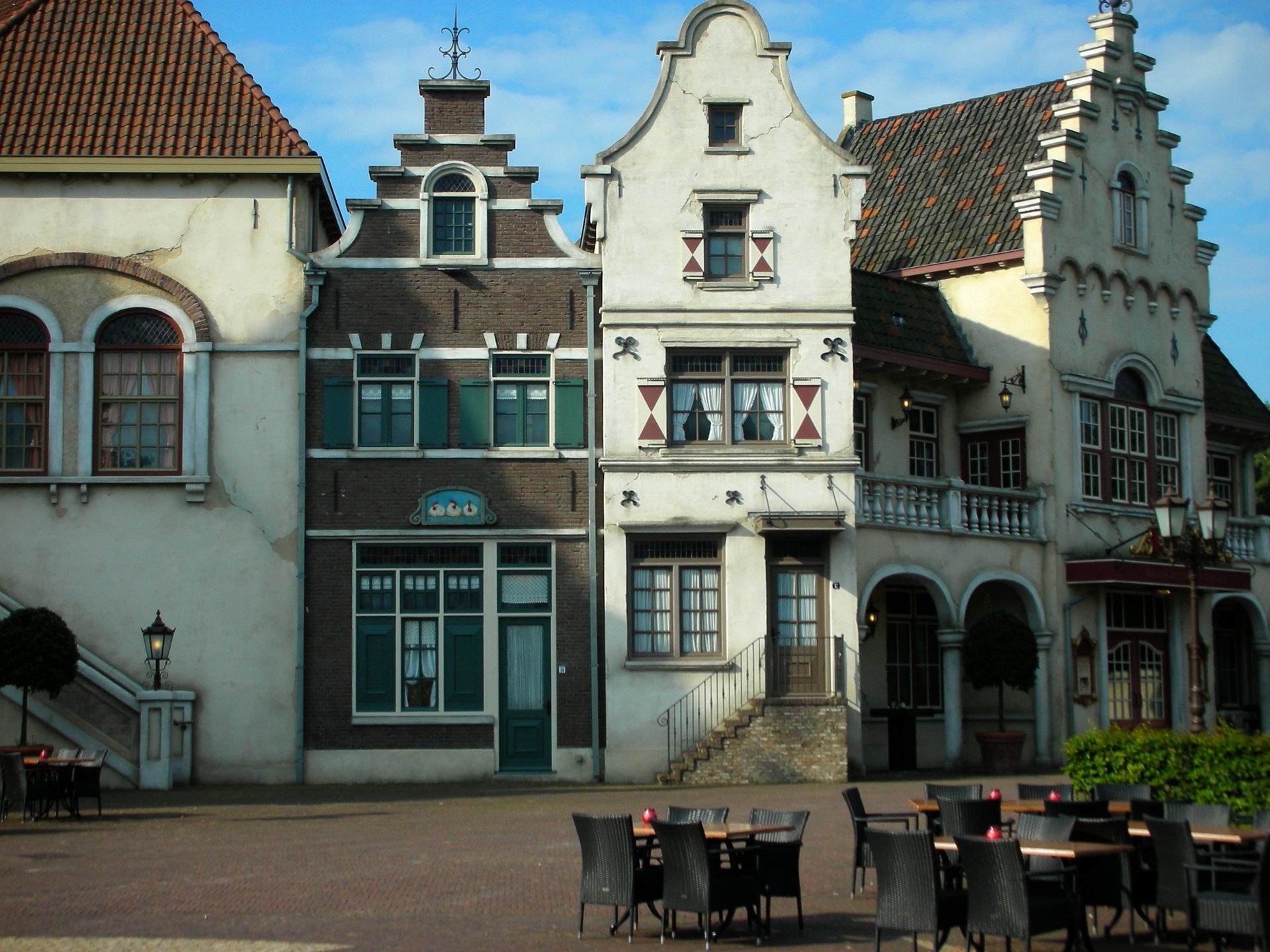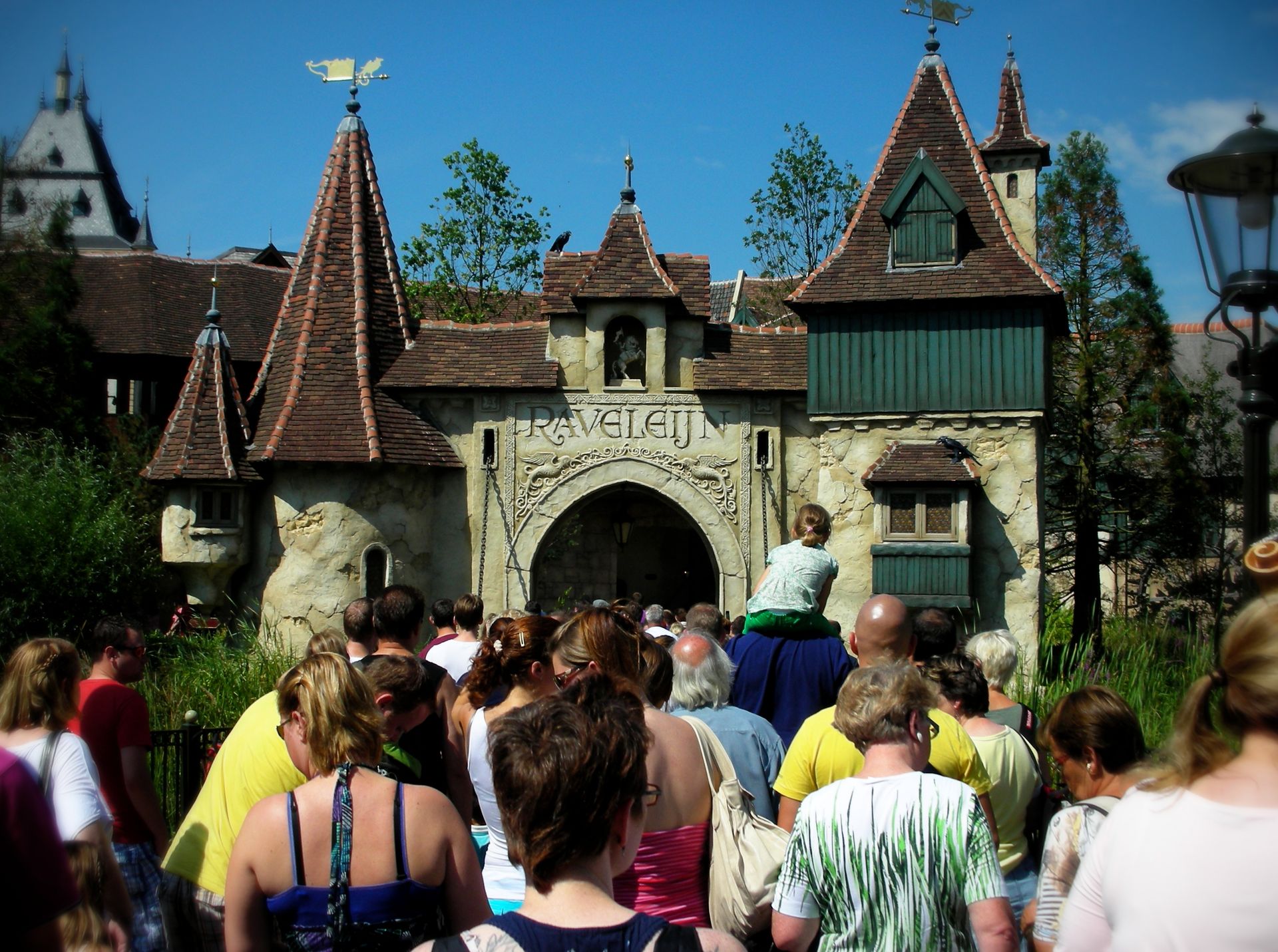 Ehrlichgesagt hat sich die Vokalisation meines persönlichen ersten Eindrucks wohl am ehesten so angehört: "Scheiße, die Säcke verlangen 10¤ fürs Parken?!". Dessen ungeachtet machte sich große Freude breit, als wir den sagenhaften Eingang von Efteling endlich in Natura erblicken durften. Kaum eingetreten eröffnete sich vor unseren Augen ein ungeahntes Kaliber gekonnter Architektur und besinnlicher Weite an Landschaft. Eine vierköpfige Band begrüßte uns mit heiteren Gesängen einer fremden Sprache und in einer Angst, als könnte diese Schönheit jeden Moment in sich zusammenfallen, lief die Kamera bereits in den ersten drei Minuten heiß. Unsere ratlosen Blicke schweiften über das Land auf der Suche nach einer der Achterbahnen, doch sie fanden nichts, also folgten wir der Masse und ließen uns von Efteling besäuseln.