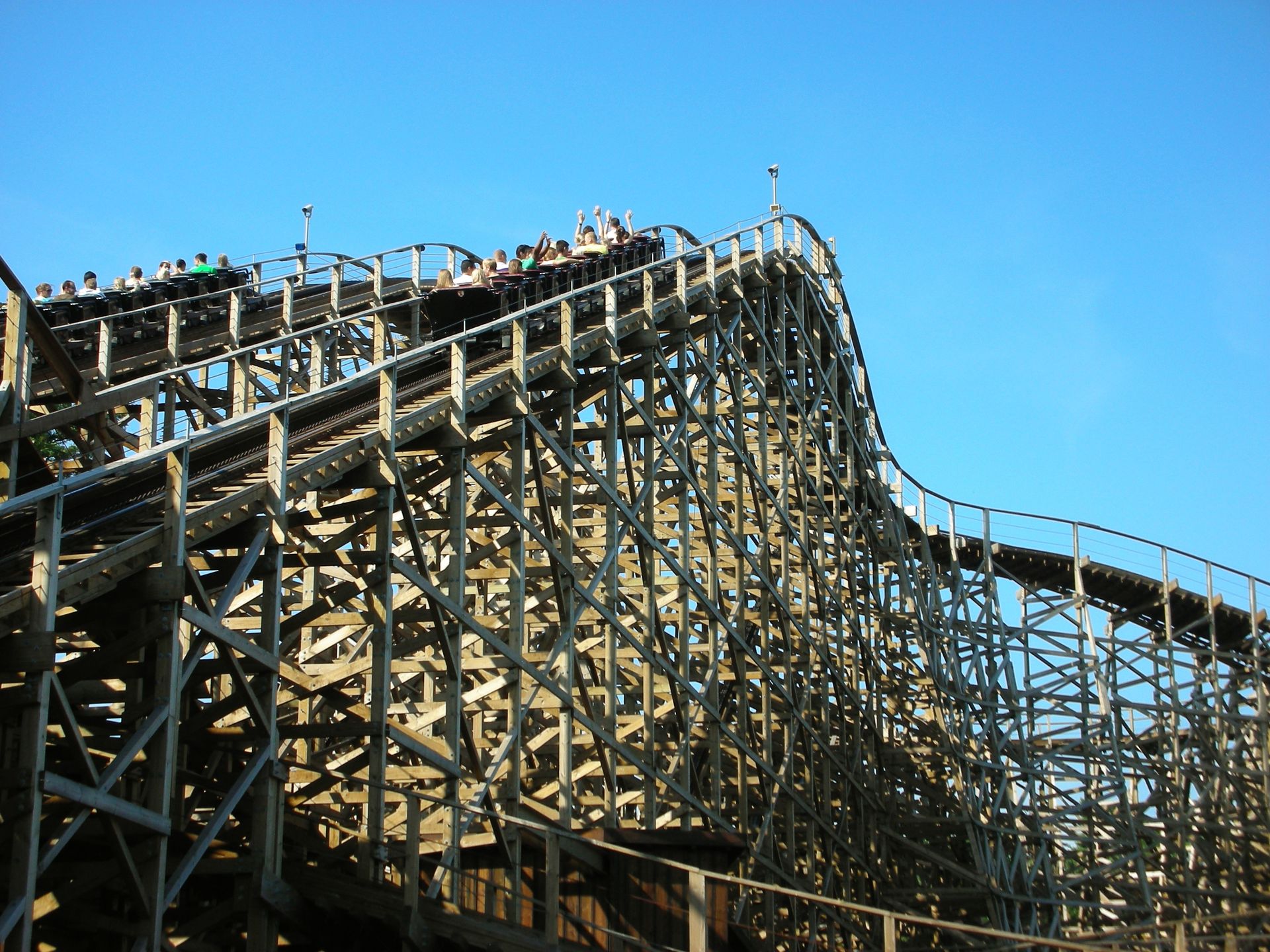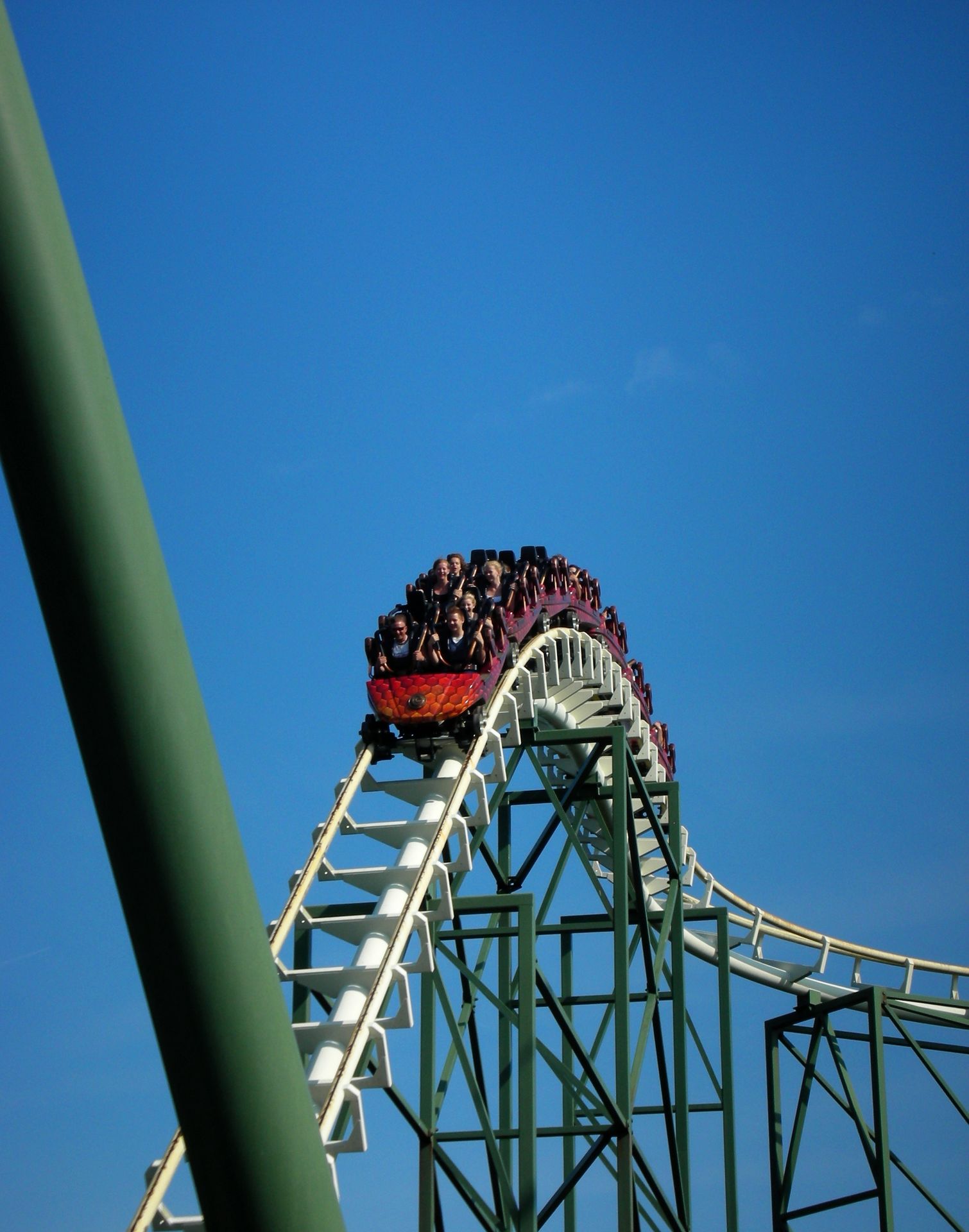 First Drop in die Tiefe, von der aus wir uns in einer S-Kurve wieder nach oben schwingen. Im Vergleich zu