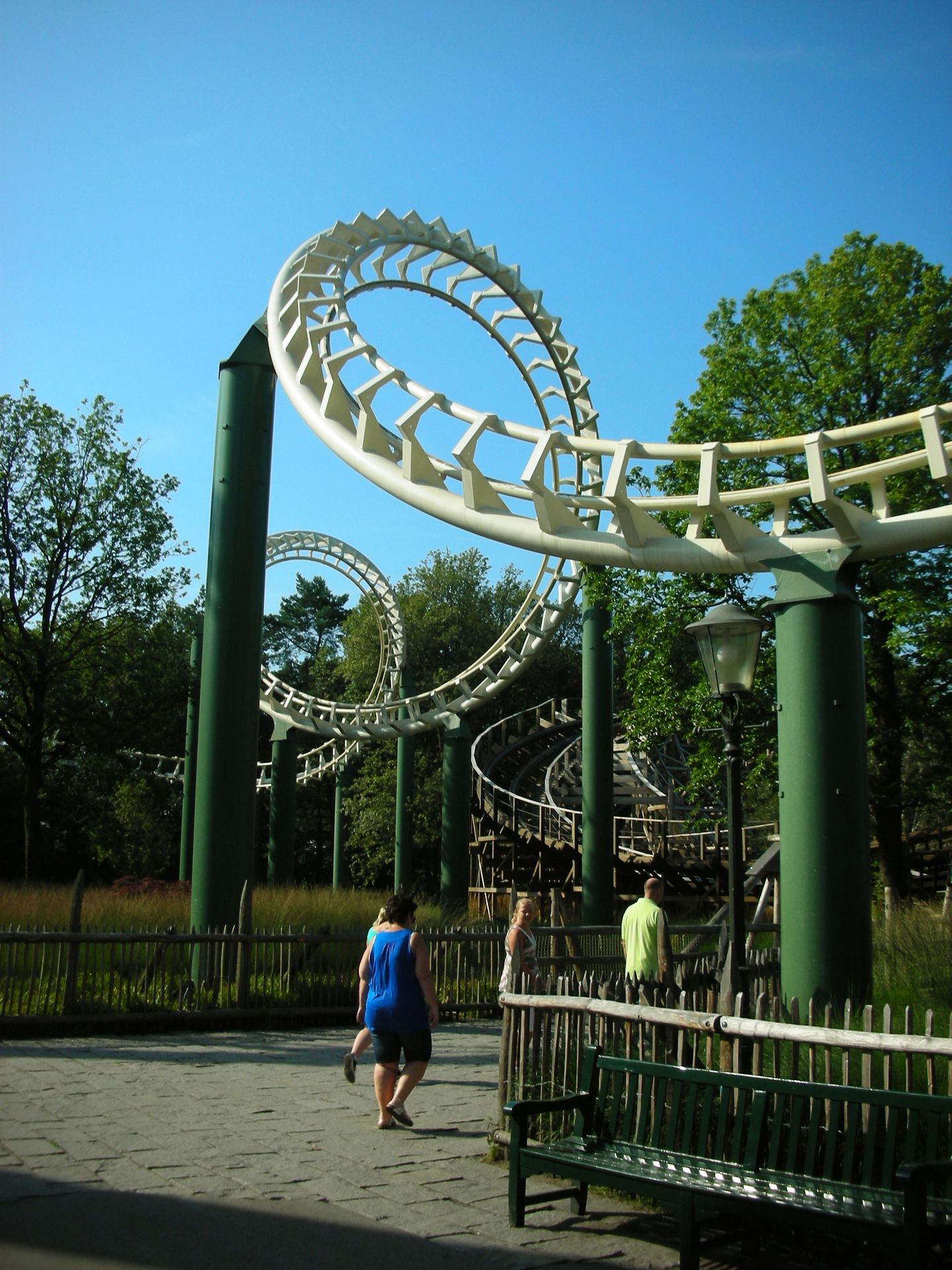 Korkenzieher - fährt sich die Bahn ausgesprochen angenehm. Andererseits bietet sie vor dem Hintergrund einer sich immer schneller entwickelnden Vergnügungsindustrie kaum mehr Anreiz, sodass wir es nach unserer Fahrt bei einigen ehrfürchtigen Blicken beließen, die wir der Schlange hin und wieder zuwarfen.