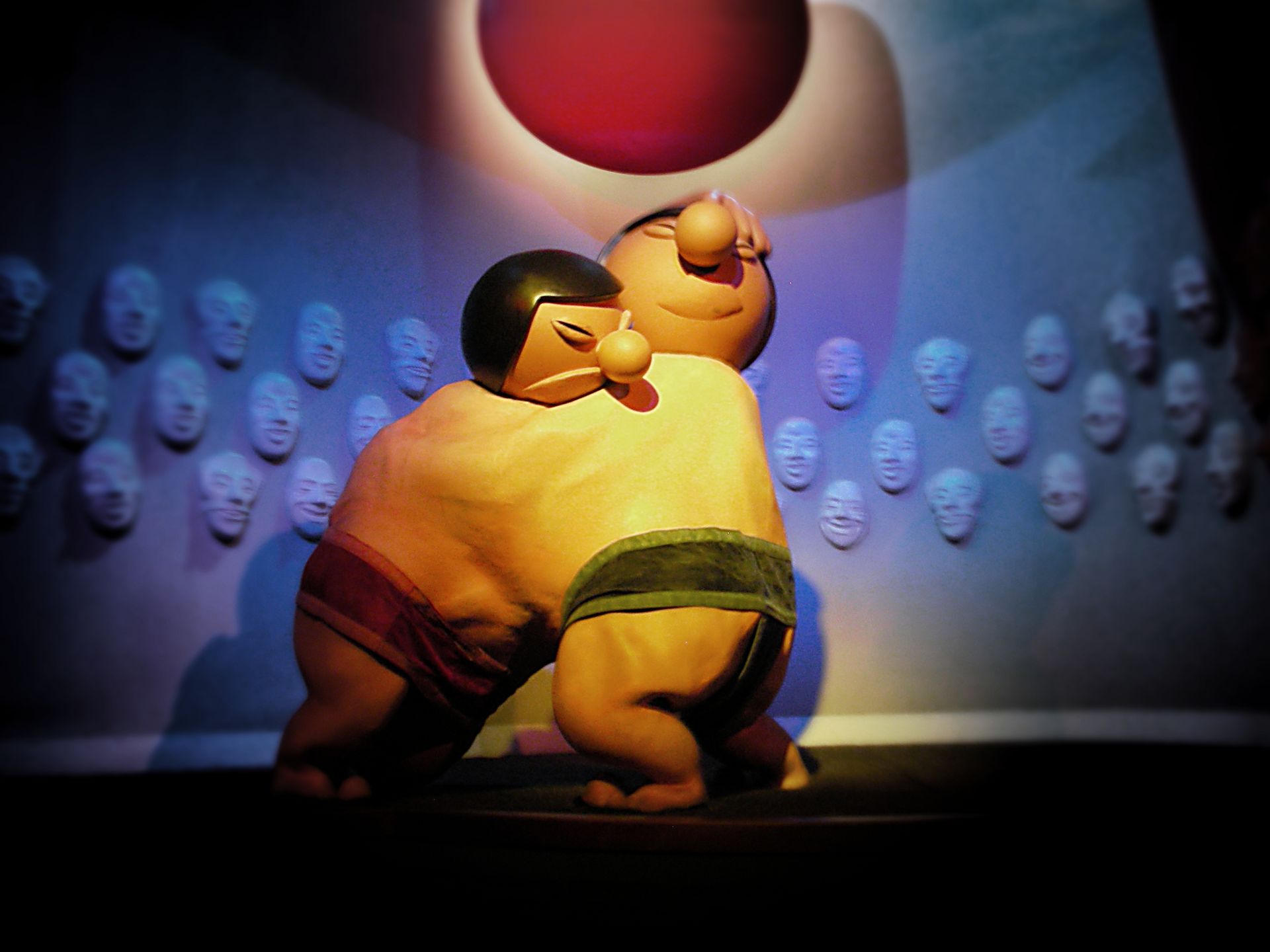 Animatronicbrei zweier Sumoringer in inniger Umarmung