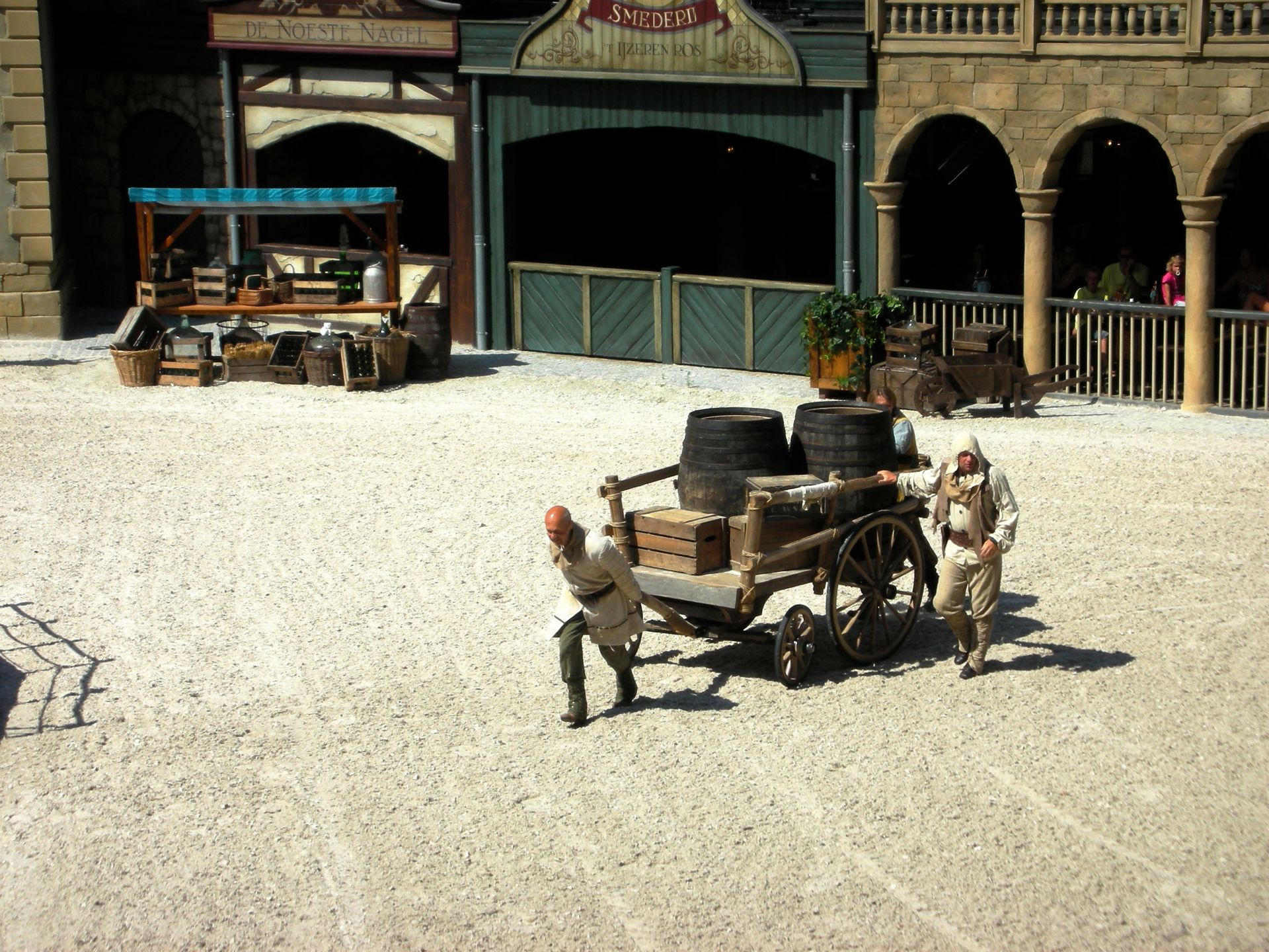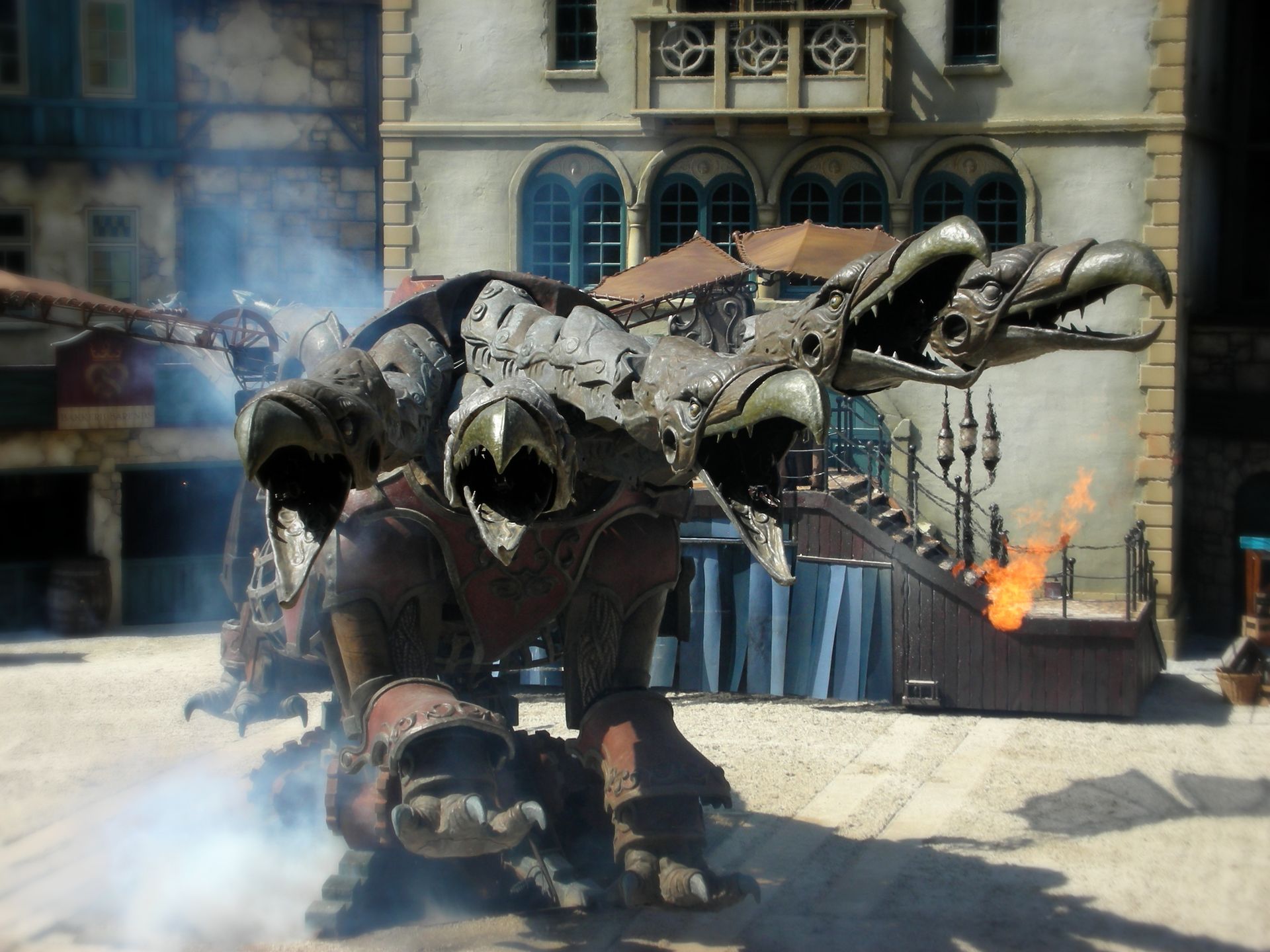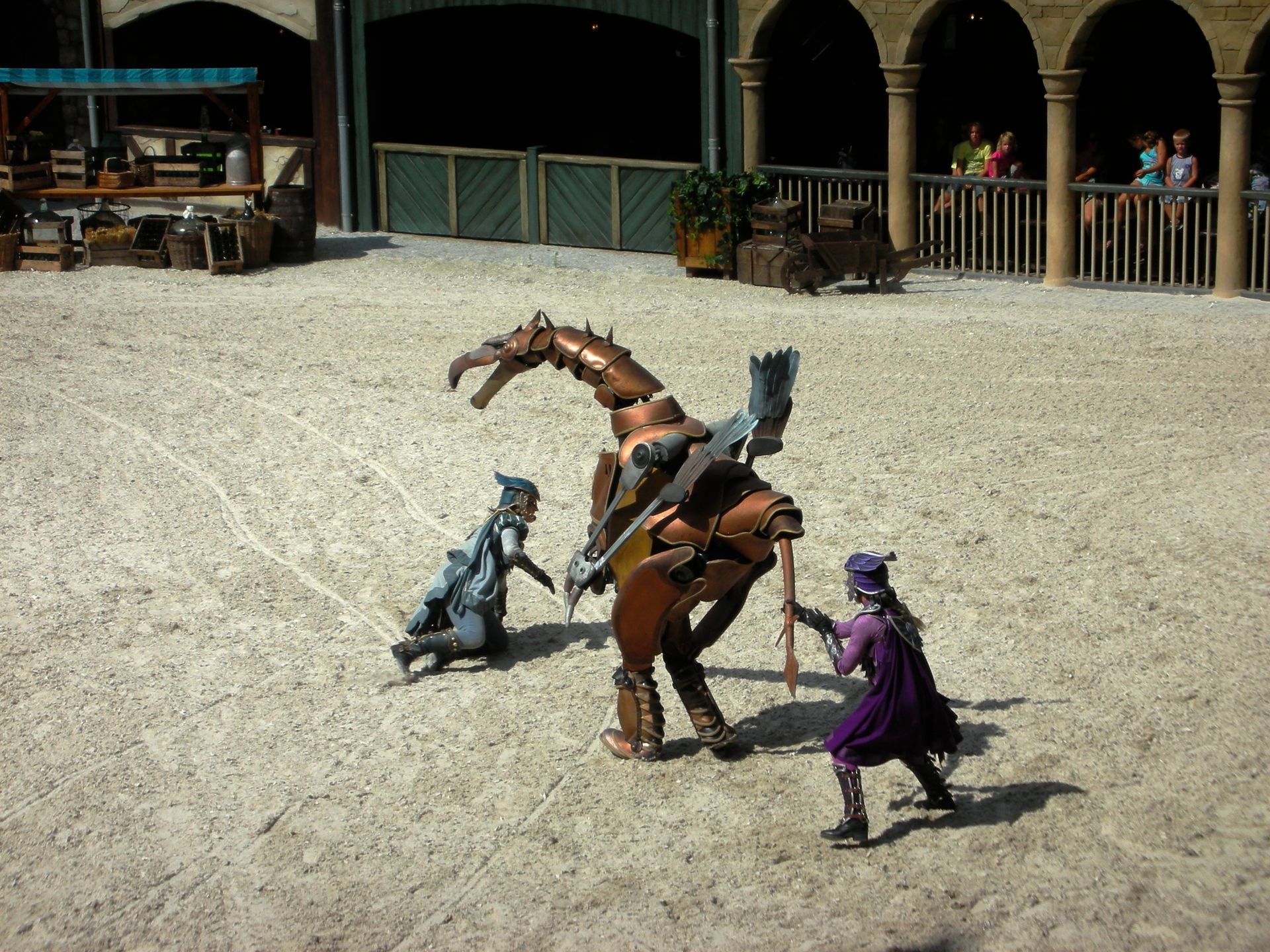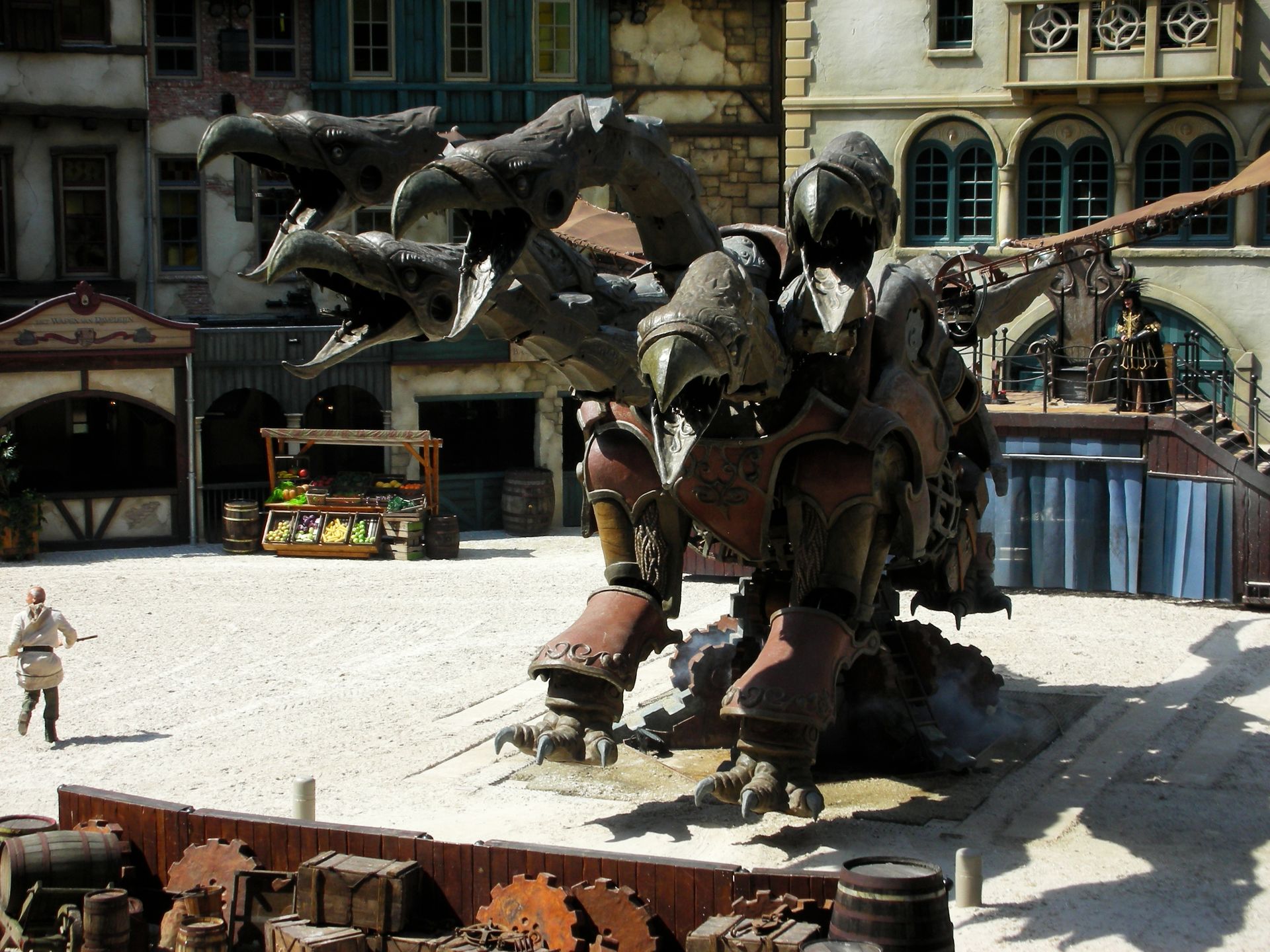 Zur Show selbst bleibt wenig zu sagen, schließlich erwies sich unser eingerostetes Niederländisch als etwas hinderlich, sobald es darum ging der Prosa der Erzählerstimme zu folgen. Die Kampfszenen kamen allesamt sehr ulkig herüber und das ein oder andere tollpatschige Ableben wusste durchaus das gesamte Publikum zu belustigen. Merkwürdigerweise - und hier kommt vermutlich erneut die Sprachbarriere ins Spiel - ergriffen die verstorbenen Helden alsbald wieder ihre Schwerte, warfen sich auf ihr Ross und geboten dem nächsten Schalunken Einhalt. Zweifelsohne bildet das Highlight der Show der riesige mechanische Drache, der mit seinen fünf Köpfen Hydra wahre Konkurrenz bereitet. Leider konnte er sich trotz seiner bestimmt makellosen Konstruktion nicht gegen all die eingebildeten Reiter durchsetzen, die selbstverliebt auf ihren Pferden posten, als er auch nur einen seiner Köpfe hängen ließ.
