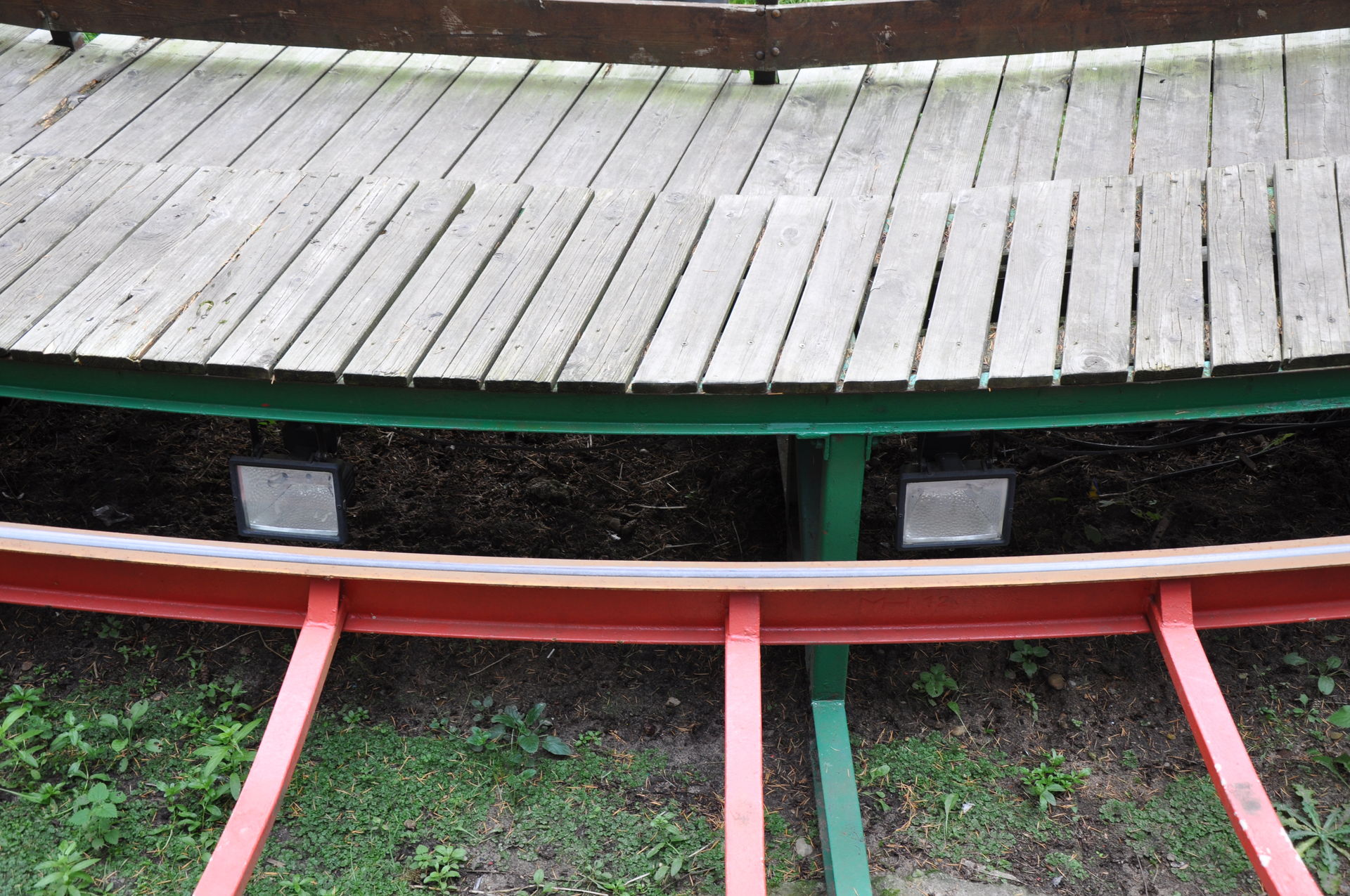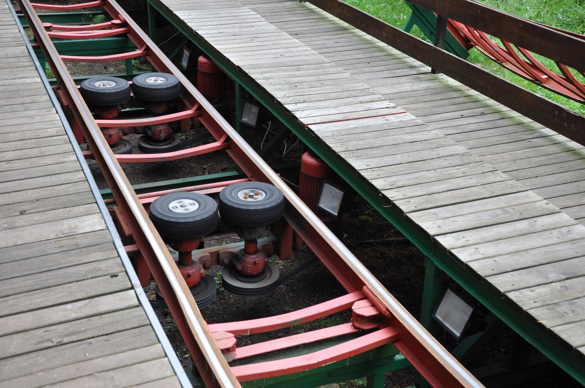 Kann sein, dass ich falsch verstanden wurde: Der Zug wird in seine 6 Glieder zerlegt und dann wieder in der Bremse aufgesetzt, da es an der Stelle, an der der Zug steht/stand es einfach nicht möglich ist den Zug über die Strecke zu ziehen. Auf der einen Seite ist der Lift mit seinen Fachwerkstützen im Weg, auf der anderen stehen 25 Meter hohe Bäume. Auch wenn man den Zug durch den 2. Corkscrew ziehen würde, müsste man ihn dann wieder von der Stelle bergen, da er nicht über den nächsten Hochpunkt kommen würde. Deshalb wurde dieses Verfahren der Zugbergung ausgewählt.
