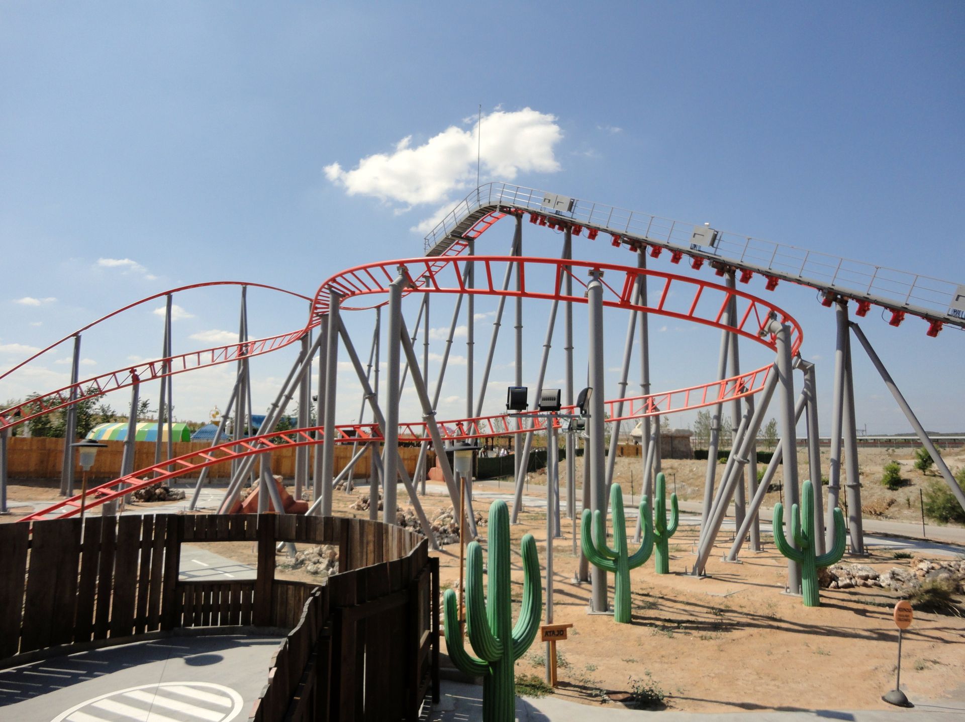 Der nächste Themenbereich ist der Western Bereich; Old West Territory genannt. Hier warten neben zwei nicht weiter erwähnenswerten Wasserattraktionen auch die Holzachterbahn Coaster Express. Wie in Bottrop hieß die Holz-Bahn auch schon mal Wild Wild West. Die Bahn hat aber ein anderes Layout, fährt sich grundsätzlich besser und ist irgendwie langweiliger. Eine Fahrt hat gereicht!