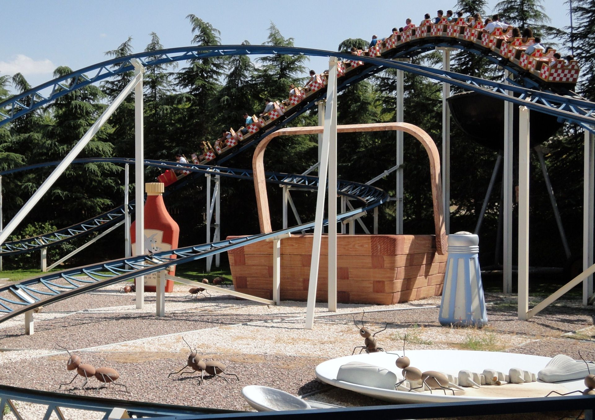 Zierer. Die Bahn ist wie Tausend andere auch, aber mir gefiel die Umsetzung des Themas hier besonders. "Picknick en el Parque", wurde mit den übergroßen Verpackungen und Insekten sehr lustig umgesetzt!