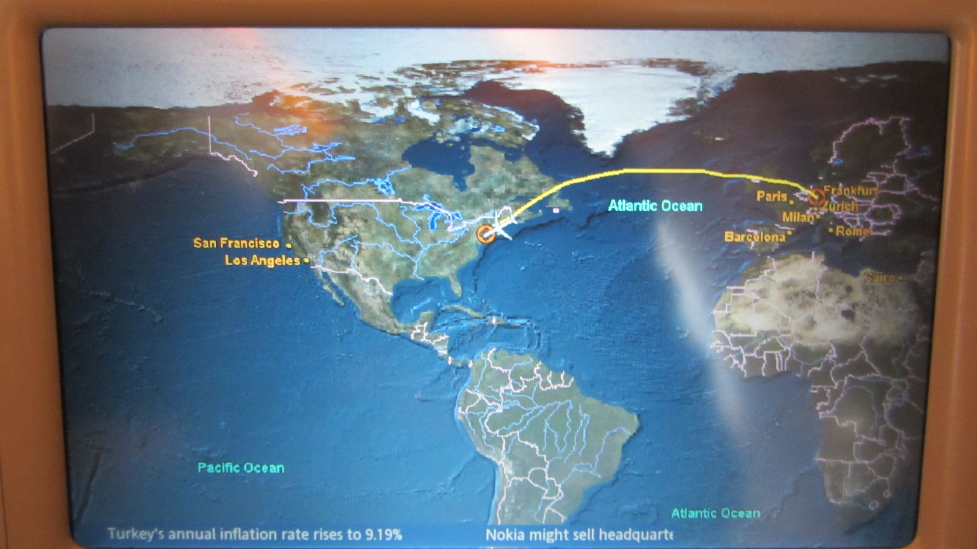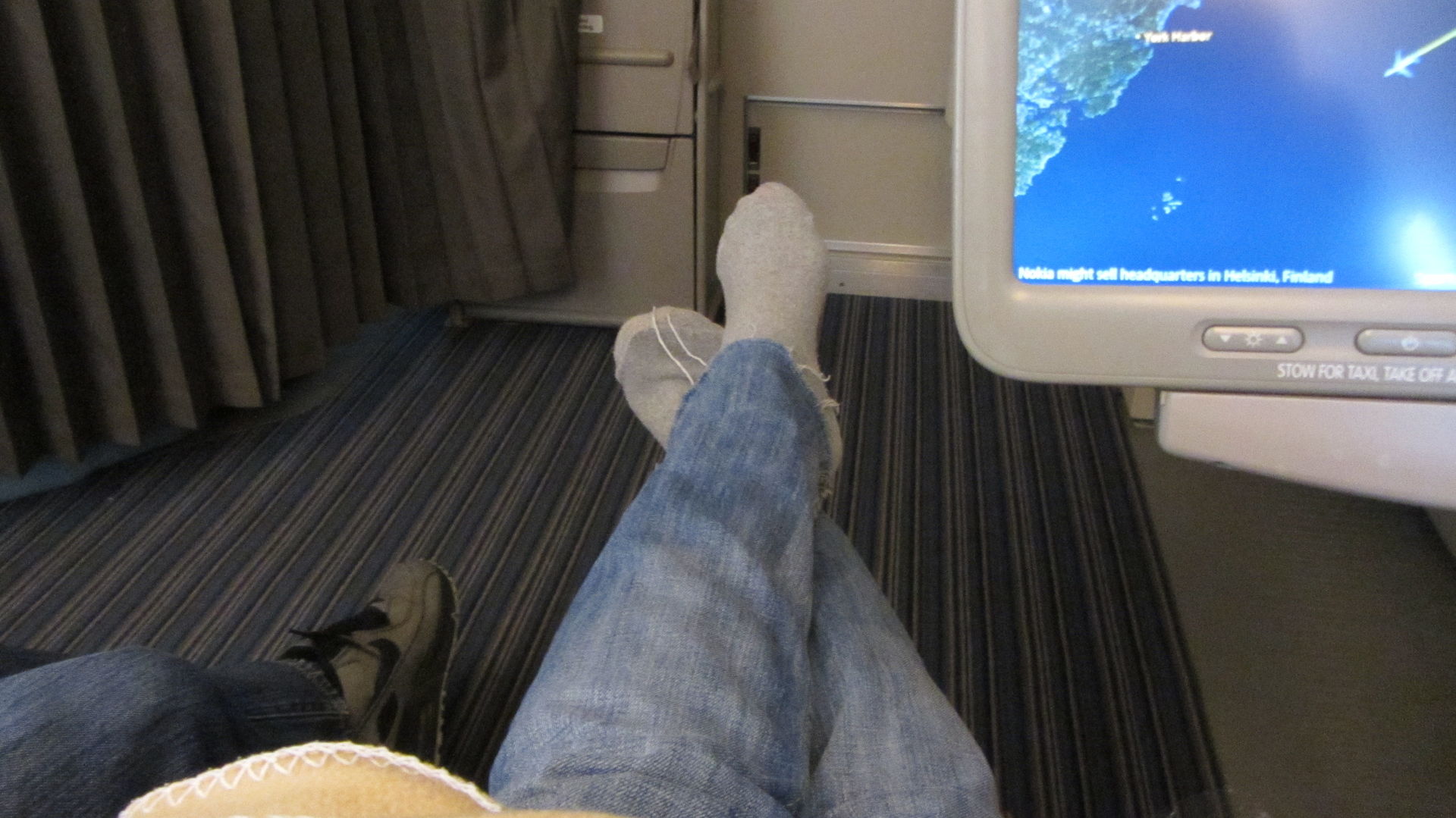 Um 06:05 Uhr ging es pünktlich Richtung Frankfurt wo wir unsern kleinen Luftbus gegen den ganz großen Luftbus austauschten. Gebucht hatte ich die besten Plätze die man in einem A380 von Singapore Airlines in der Economy kriegen kann. Zwar 40¤ Aufpreis, aber dieses Geld ist mehr als sehr gut angelegt. Upperdeck, Zweierreihe, direkt hinter der Businessclass am Notausgang. Himmlische 3m² Platz, die während des ganzen Fluges, nur bei Start und Landung, mit einer niedlichen Asiatin geteilt werden mussten.