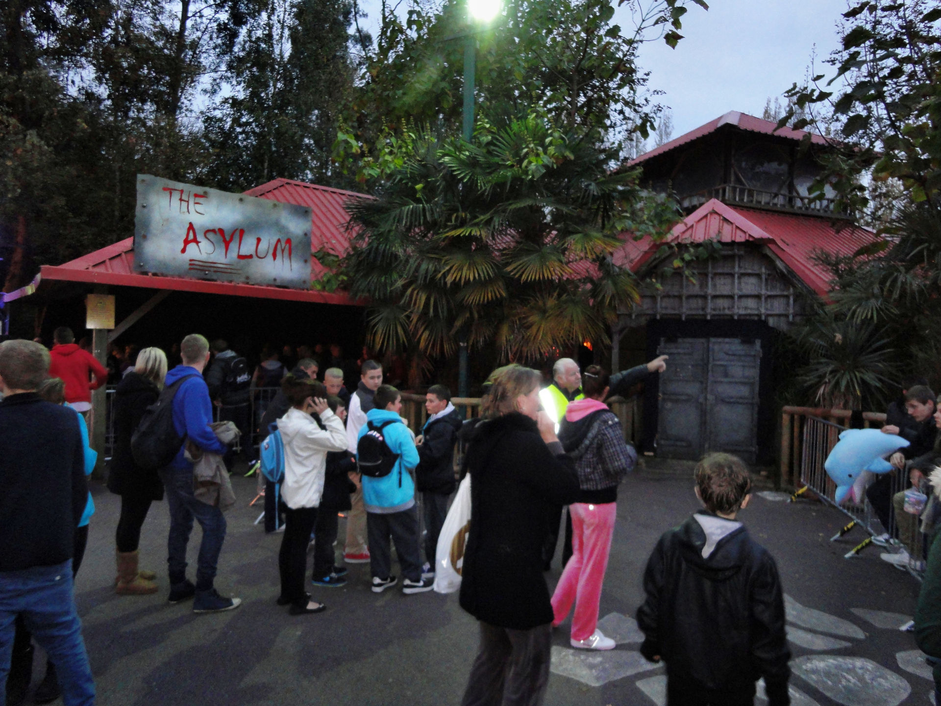 The Asylum ist ein Halloween Maze, welches schon seit Jahren nahe der ehemaligen Traktorfahrt aufgebaut wird. Am Parkplan ist hier der Schriftzug „the Showcase“ eingezeichnet. Dieses „Psycho“ Maze ist eigentlich recht einfach gestrickt. Spiegel an die Wand, Bauzäune in den Raum gestellt und ein paar motivierte Mitarbeiter. Das ganze dann in ungleiches und sehr aggressives Strobo-Licht getunkt ergibt eine sehr gute Mischung. Erschrecken tut man sich vor den Monstern, den anderen Gruppen und nicht zuletzt sogar vor sich selber. Das Ende möchte ich nicht Spoilern, aber hier sieht man wie man selbst Halloween Kracks gescared bekommt.