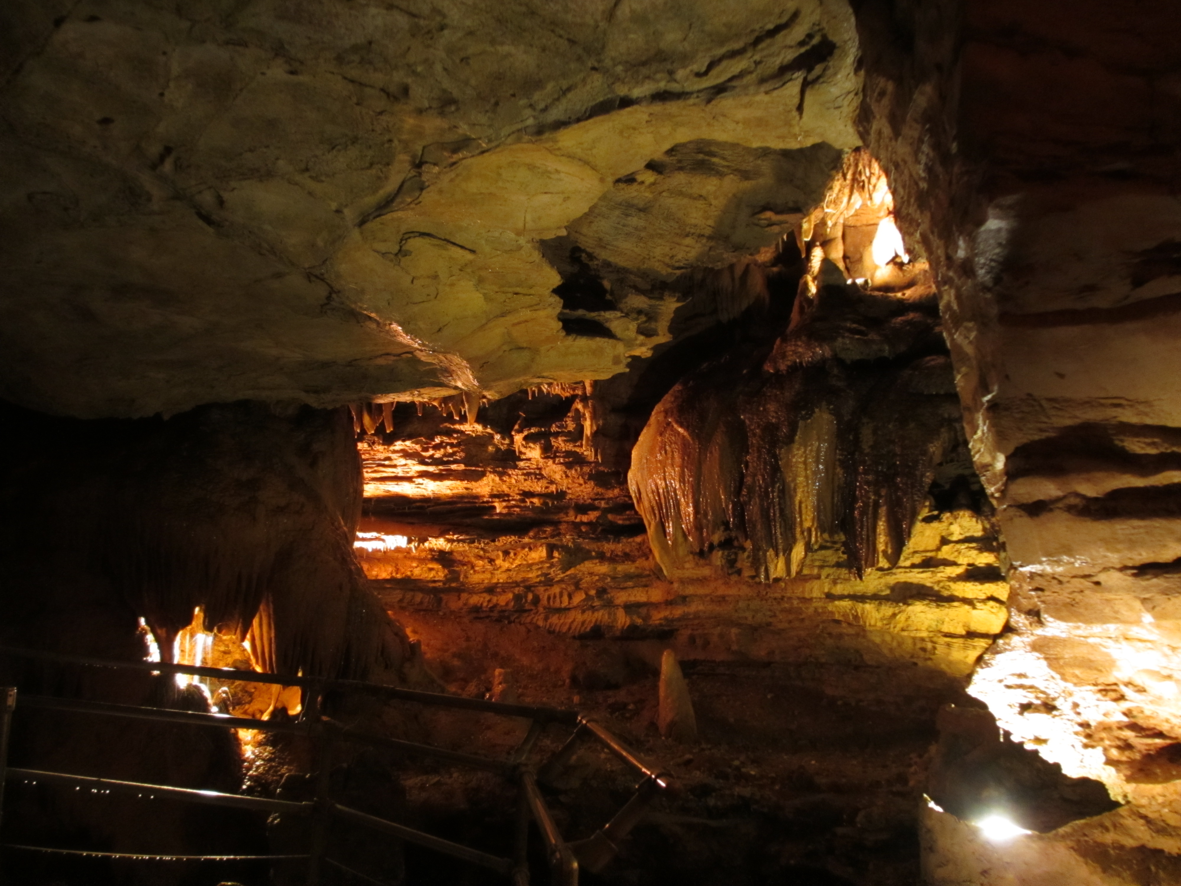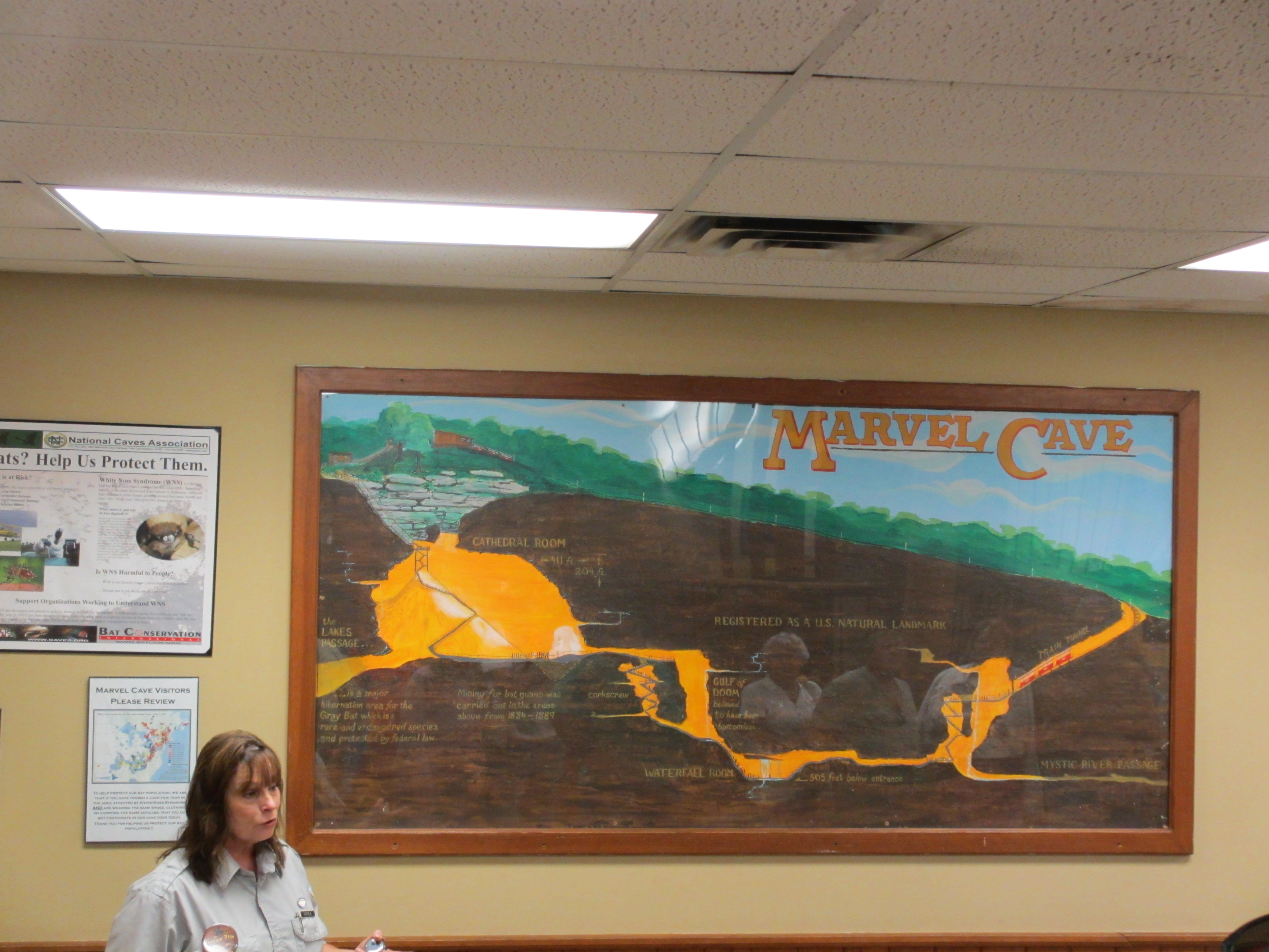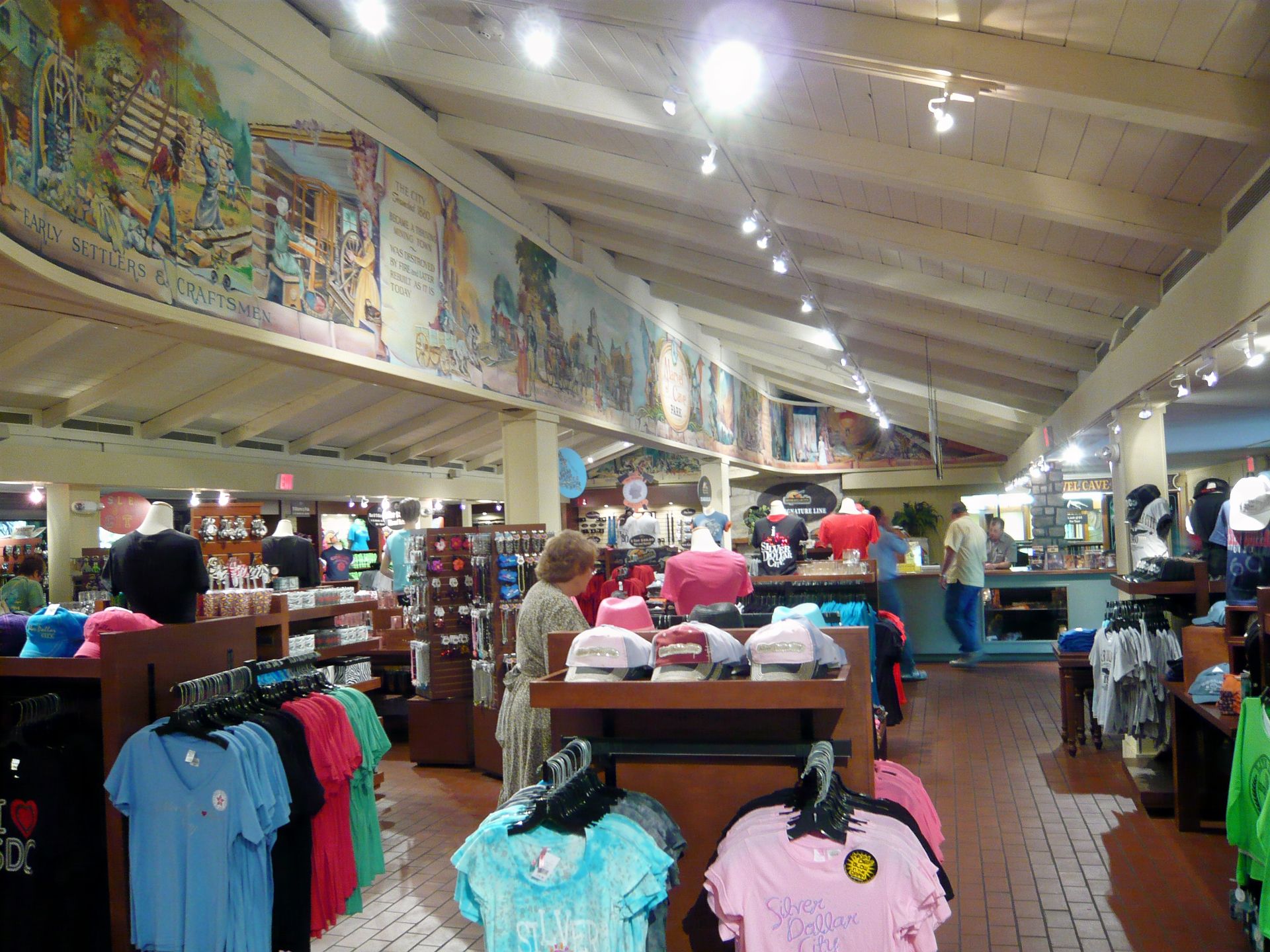 Durch diesen recht ausladend gestalteten Souvenirshop schreitet man zwangsläufig, wenn man durch die Strasse von den Ticketgebäuden aus in den Park hinein geht. Hier ist auch der Ausgangspunkt zur ursprünglichen Hauptattraktion des Parks, der Tropfsteinhöhle Marvel Cave. Ein Rundgang durch diese ist im Eintrittspreis zu Silver Dollar City enthalten, man muss sich jedoch früh für die etwa eine Stunde dauernden Touren hier eintragen, da die Teilnehmerzahl jeweils auf 60 Personen beschränkt ist. Da wir im Anschluss an unseren Parkbesuch noch eine gut 150 Meilen weite Fahretappe eingeplant hatten und Silver Dollar City alleine schon viel Zeit verschlingt, hats uns dafür leider nicht mehr gereicht. Aber zur Zeit entsteht hier ja eh ein absolut vortrefflicher Grund, so rasch wie möglich zurück zu kehren.