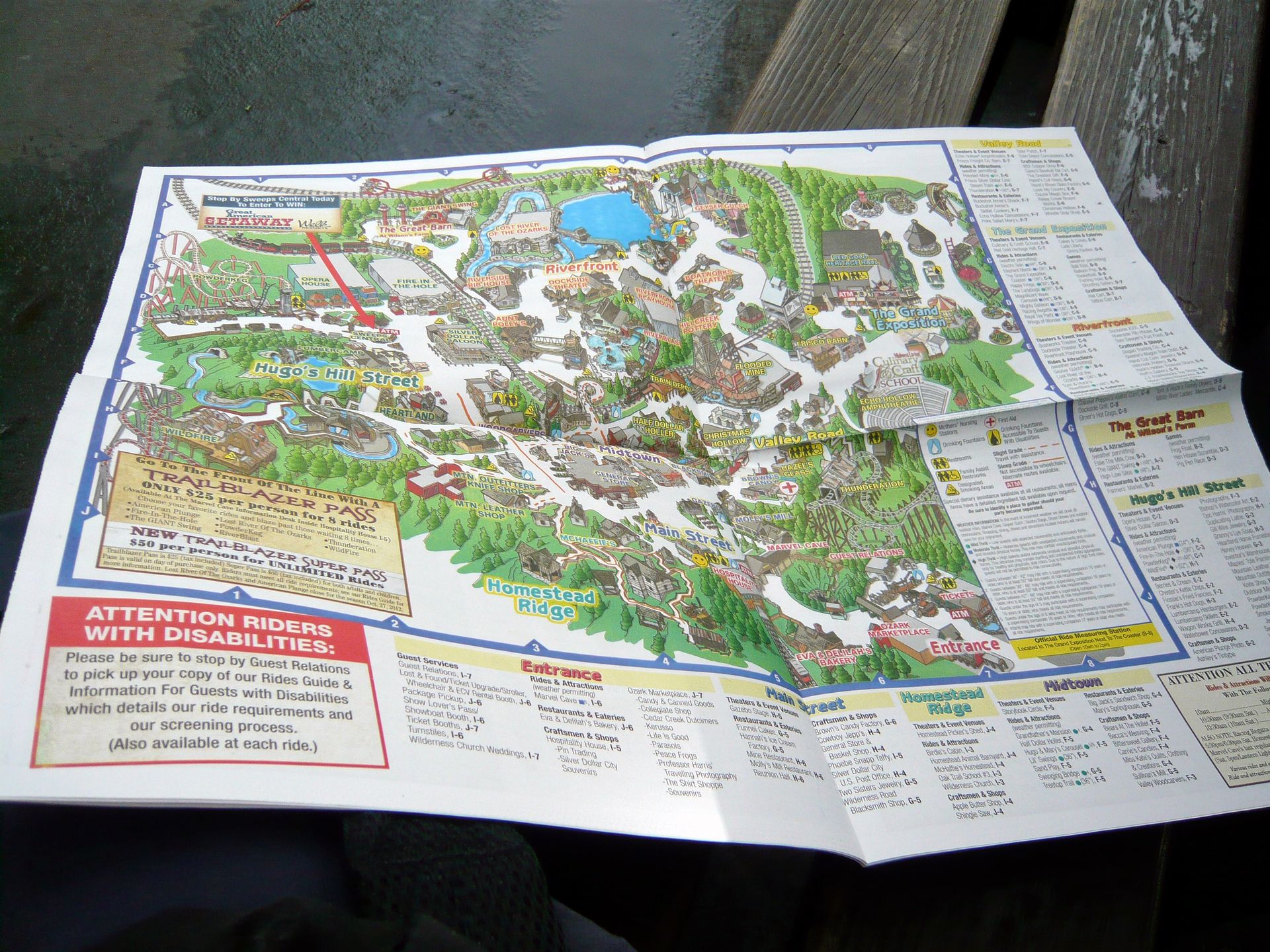 Auf dem genial in eine Zeitung eingebetteten Parkplan verschaffen wir uns einen ersten Überblick.
