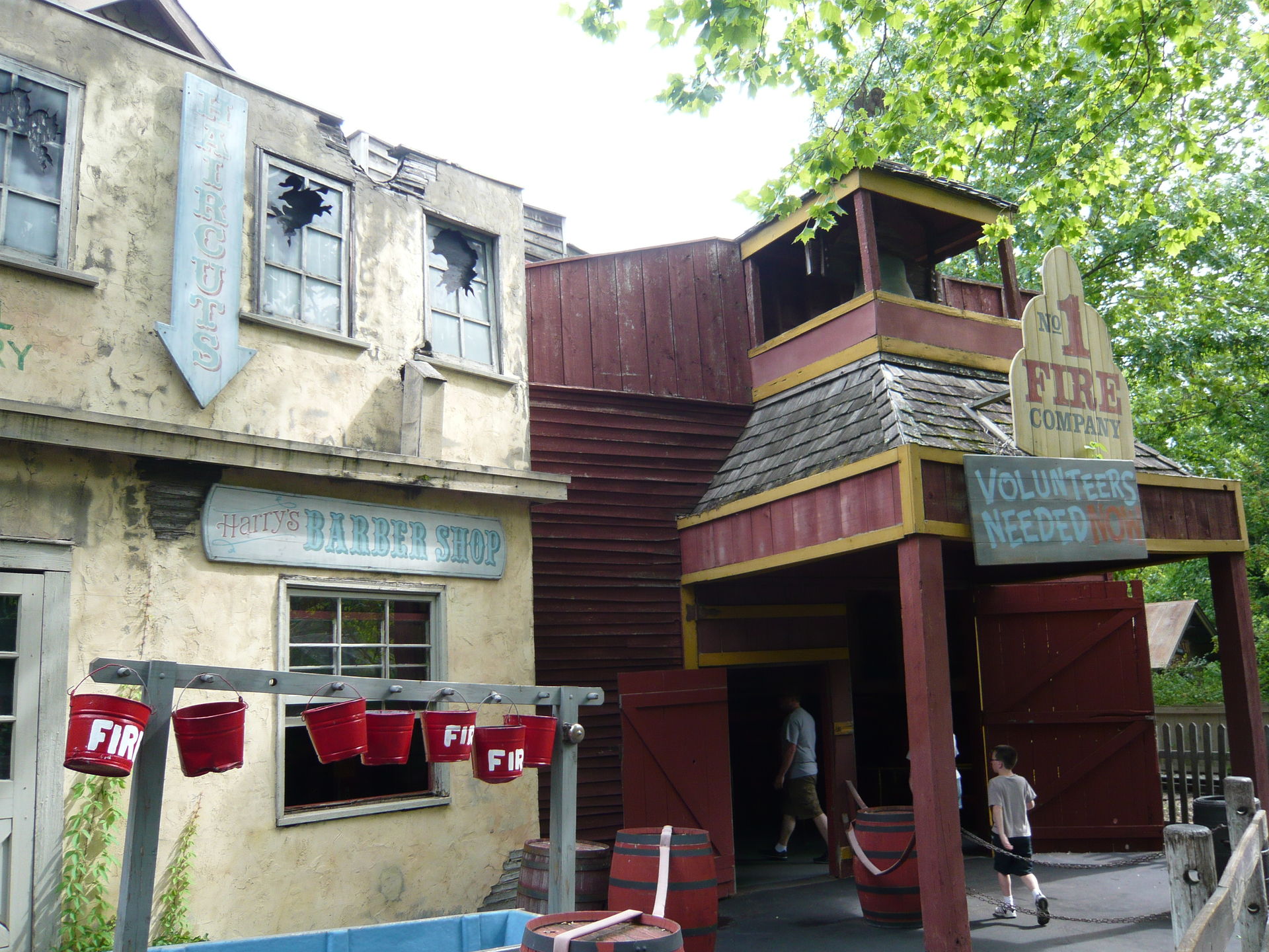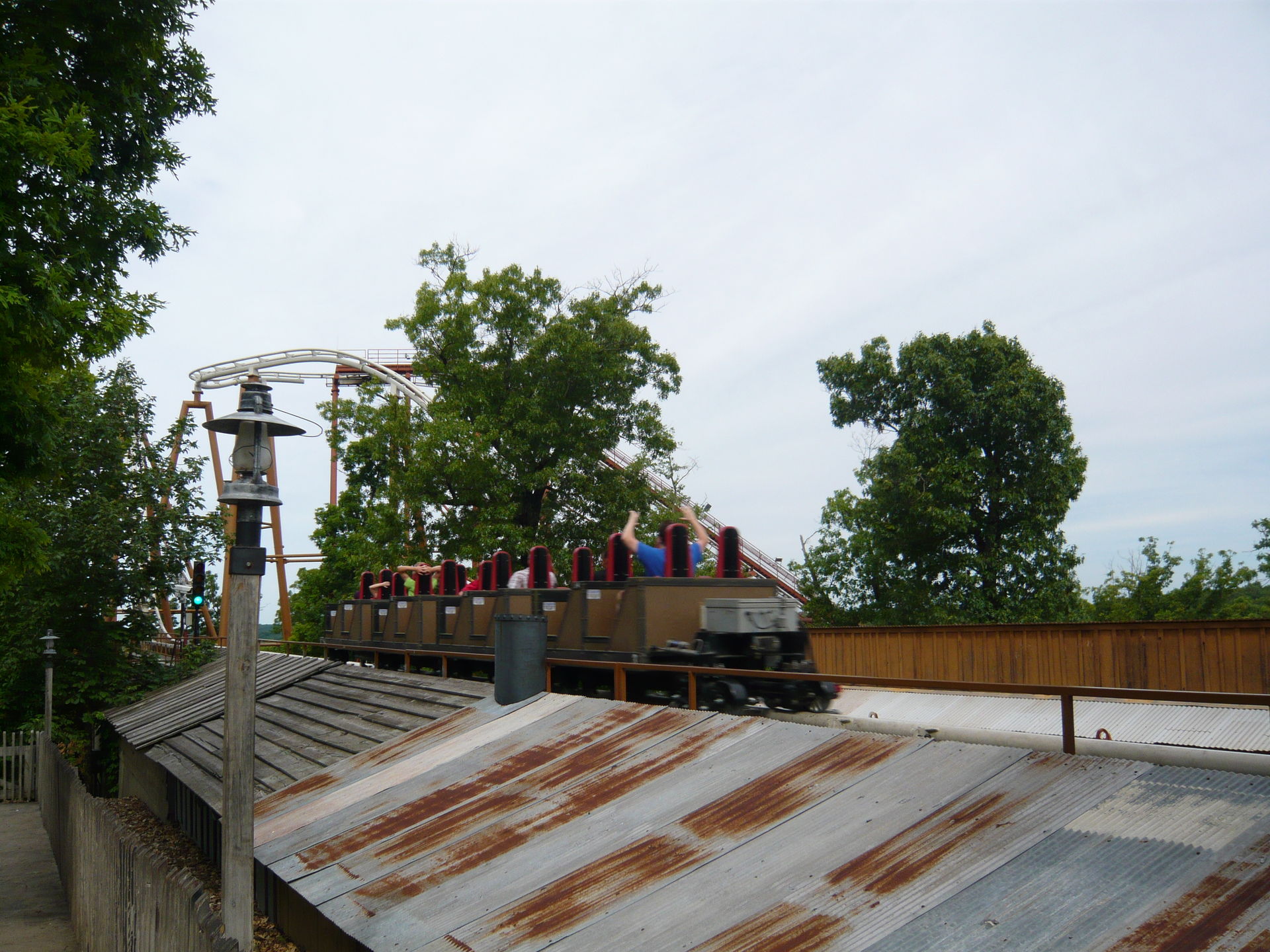 Die nahe gelegene Attraktion Fire in the Hole ist praktisch eine Schwesterbahn von Blazing Fury in Dollywood. Einem sehr langen, teilweise mit etwas altmodischer Technik ausgestatteten aber dennoch unfassbar schön gestalteten Darkride-Teil durch eine brennende Stadt aus vergangener Zeit folgen drei recht überraschende Schussfahrten, die alle als Flucht vor weiteren drohenden Gefahren thematisiert sind und welche die Anlage auch als Achterbahn zählen lassen. Unterschiede zur Ausgabe in Pigeon Forge sind die etwas kürzeren Züge, die Sicherung mit Einzelbügeln, die allgemein etwas kürzere Fahrzeit und kleinere Anzahl gezeigter Szenen im Darkride-Teil sowie die trotz guter Vorbereitung nasse Überraschung am Ende: die dritte Schussfahrt wird hier nämlich noch per Wasserbecken abgebremst, was ganz früher in Dollywood offenbar auch mal der Fall war. Obgleich nicht gerade klatschnass, waren unsere Oberkörper hinterher zu einem doch eher überraschenden Grad benetzt.