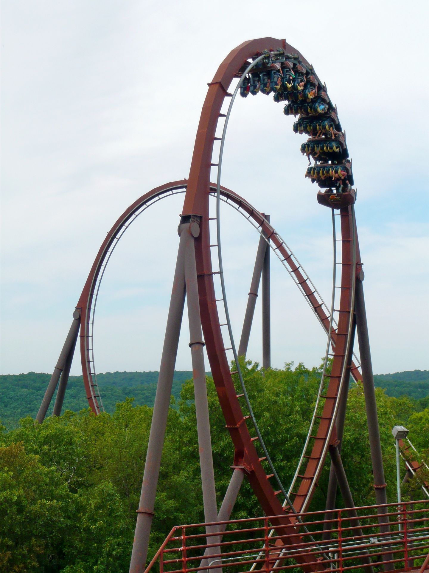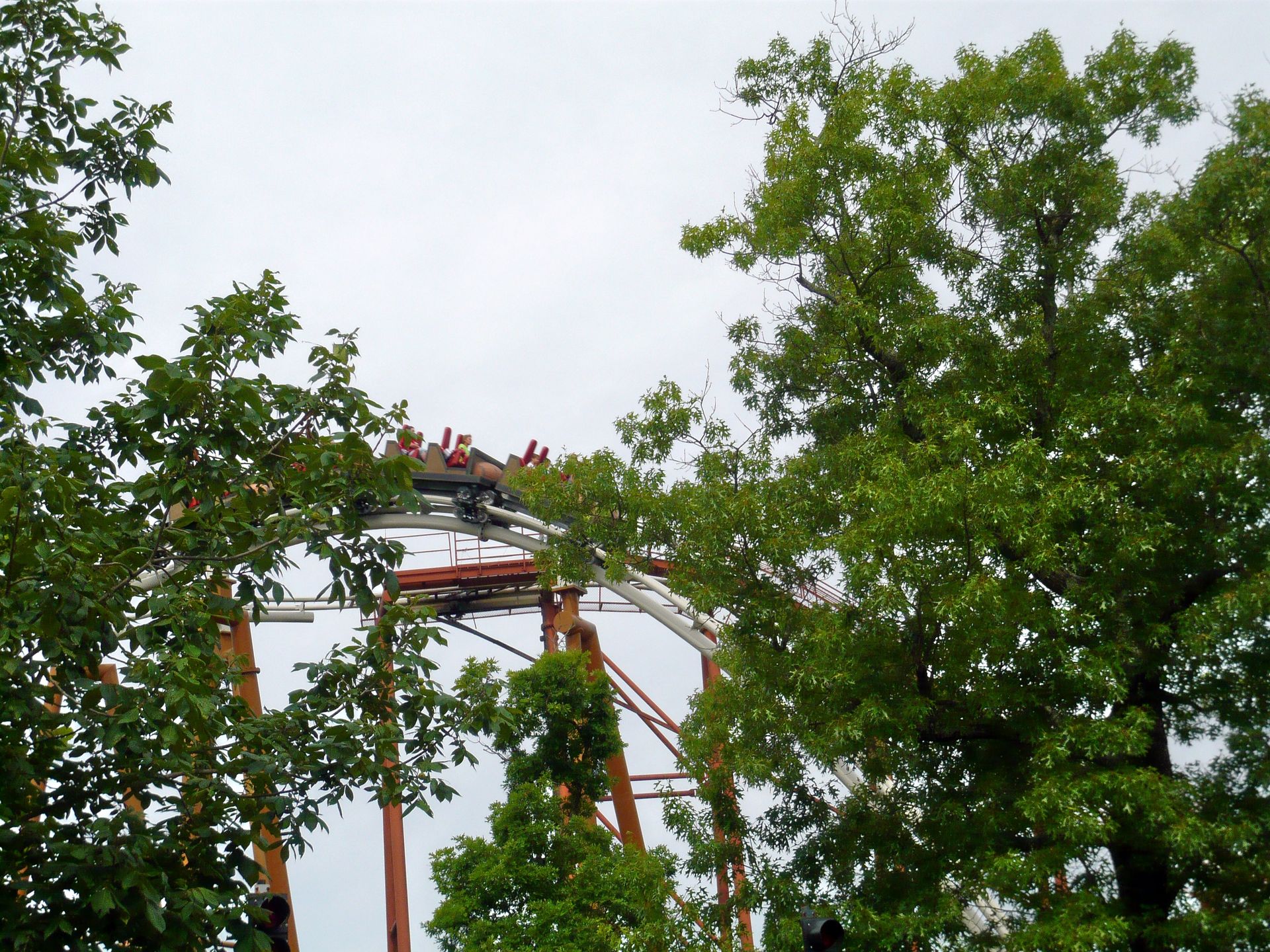 Vertikallooping absolviert, aus dem man direkt in eine bodennahe, weite Kurve entlassen wird. Nun folgt die direkt neben der Aussichtsplattform platzierte Kobrarolle, die einen zweimal auf den Kopf stellt, daraufhin donnert man durch eine Overbanked Turn recht schwungvoll in einen heftigen