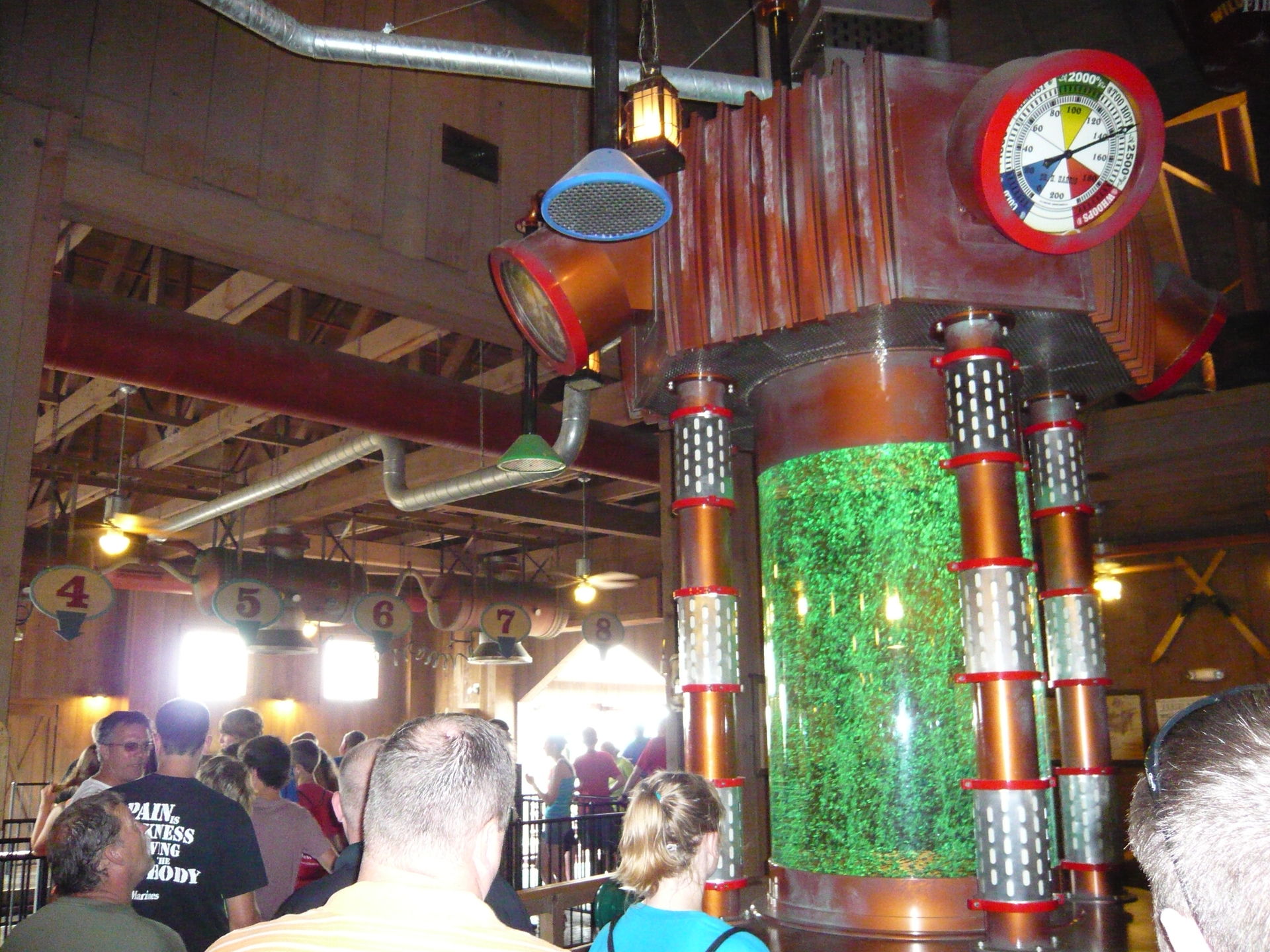 Man beachte bitte auch die Dekorationen auf dem Regal im Hintergrund - diese Entschlossenheit, mit der dieser Park sein Themeing durchzieht, ist schlicht der Hammer! Auch die Hot Dogs, die wir eigentlich nur gekauft haben, weil wir zu unserer Überraschung im bisherigen Reiseverlauf noch kein echtes amerikanisches Exemplar davon hatten, haben ausgezeichnet geschmeckt.
