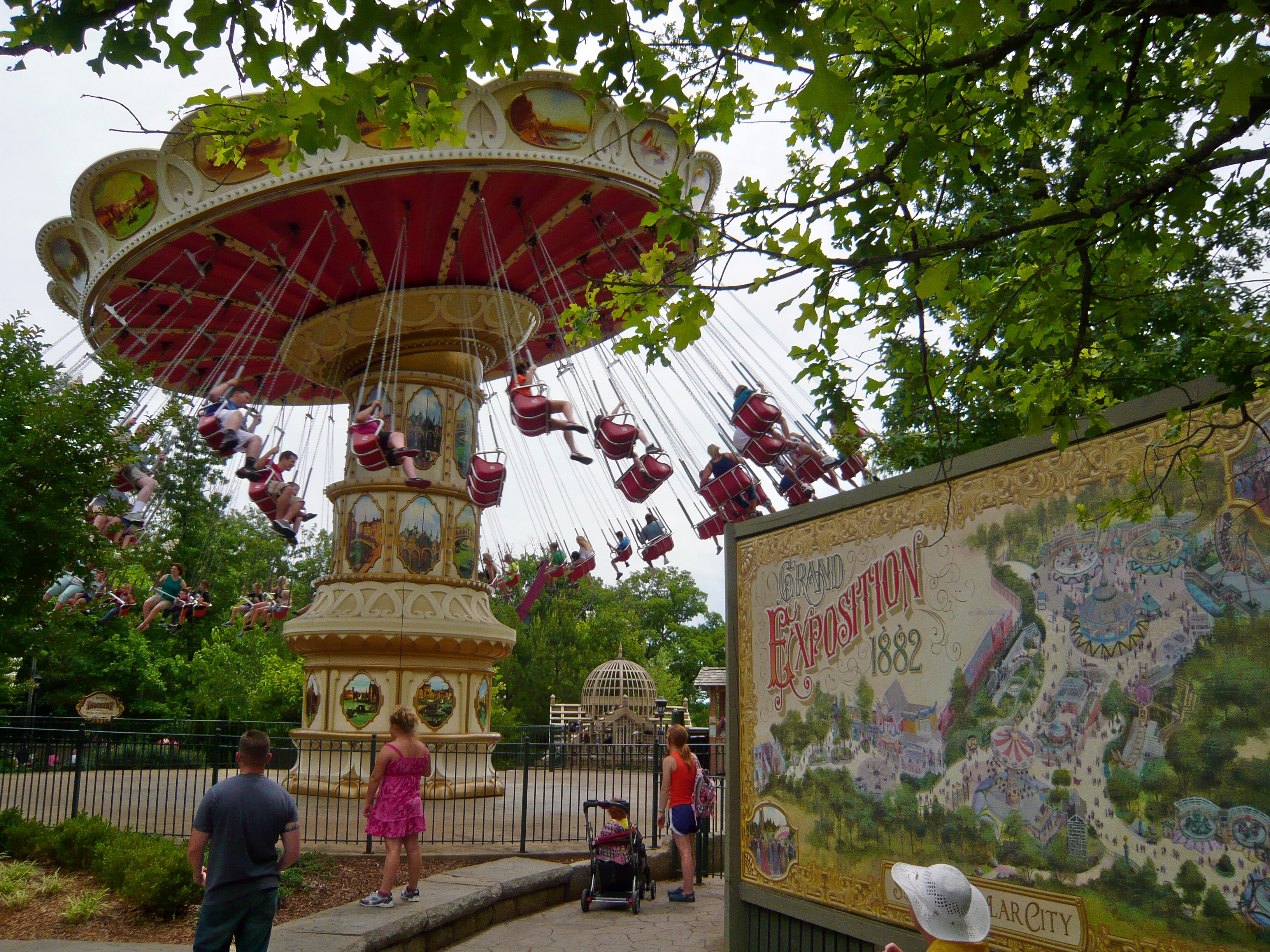Ganz in der Nähe findet man den auf sehr raffinierte Weise als alte Landesausstellung thematisierten Rummelplatzbereich The Grand Exposition, wo sich ein paar klassische Flatrides wie Teetassen, ein Wellenflieger, ein Kiddie Coaster, eine Elefanten-Manège, eine Schiffschaukel usw. befinden. Im Rahmen der Thematisierung werden all diese Karussells sozusagen als grosse technische Wunder der Moderne präsentiert.