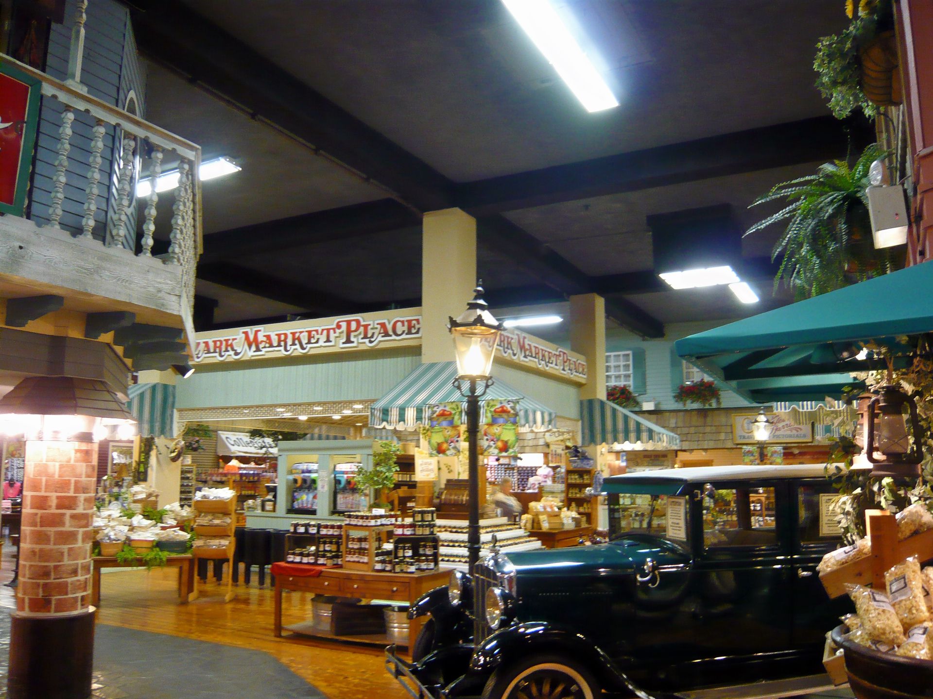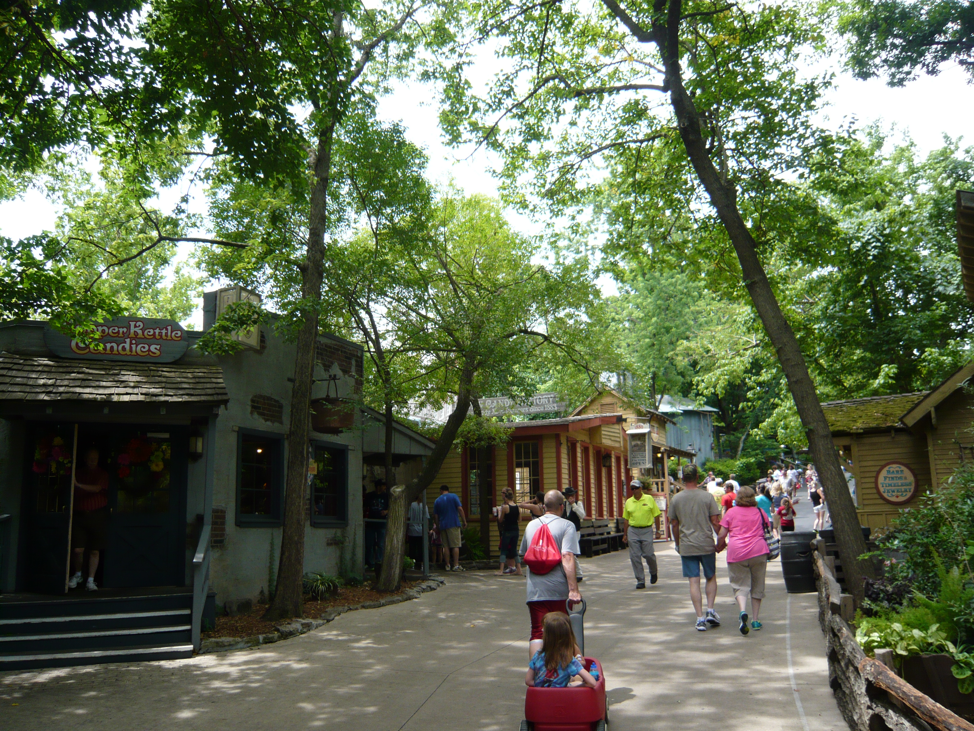 Nach fast sechs Stunden, unzähligen gelatschten Kilometern, über 150 Fotos, einer Milliarde unbeschreiblich schöner neuer Eindrücke, leckeren Coasterfahrten und einem schlicht umwerfenden Gesamterlebnis einer veritablen Zeitreise in die 1880er-Jahre war es dann leider schon wieder an der Zeit, weiter in Richtung Süden aufzubrechen. Auf dem Weg zum Ausgang schreitet man dann noch durch diese Souvenirshop-Landschaft, die als wahrhaftiger kleiner Marktplatz gestaltet ist.
