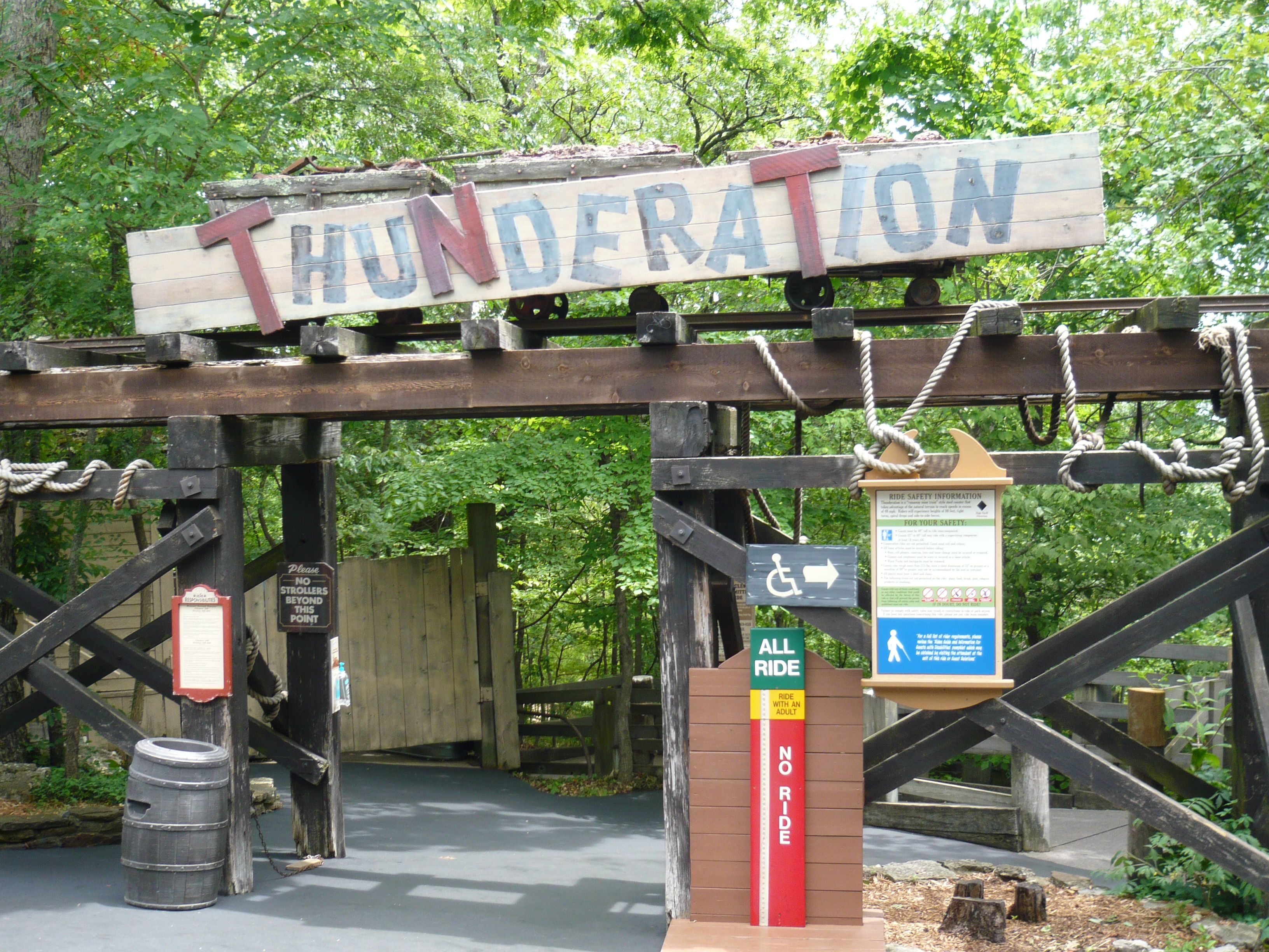 Einer der Hauptgründe, sich hier genauer umzuschauen, ist der aussergewöhnliche Minetrain Thunderation. Der Zugang liegt etwas versteckt und ist trotz Parkkarte recht schwierig zu finden - die Kollegen und ich haben uns irgendwann einfach gemerkt, dass man nicht mehr weit entfernt ist, sobald man "Brown's Candy Shop" erblickt, mussten ihn aber irgendwie trotzdem bei jeder Fahrt neu suchen.