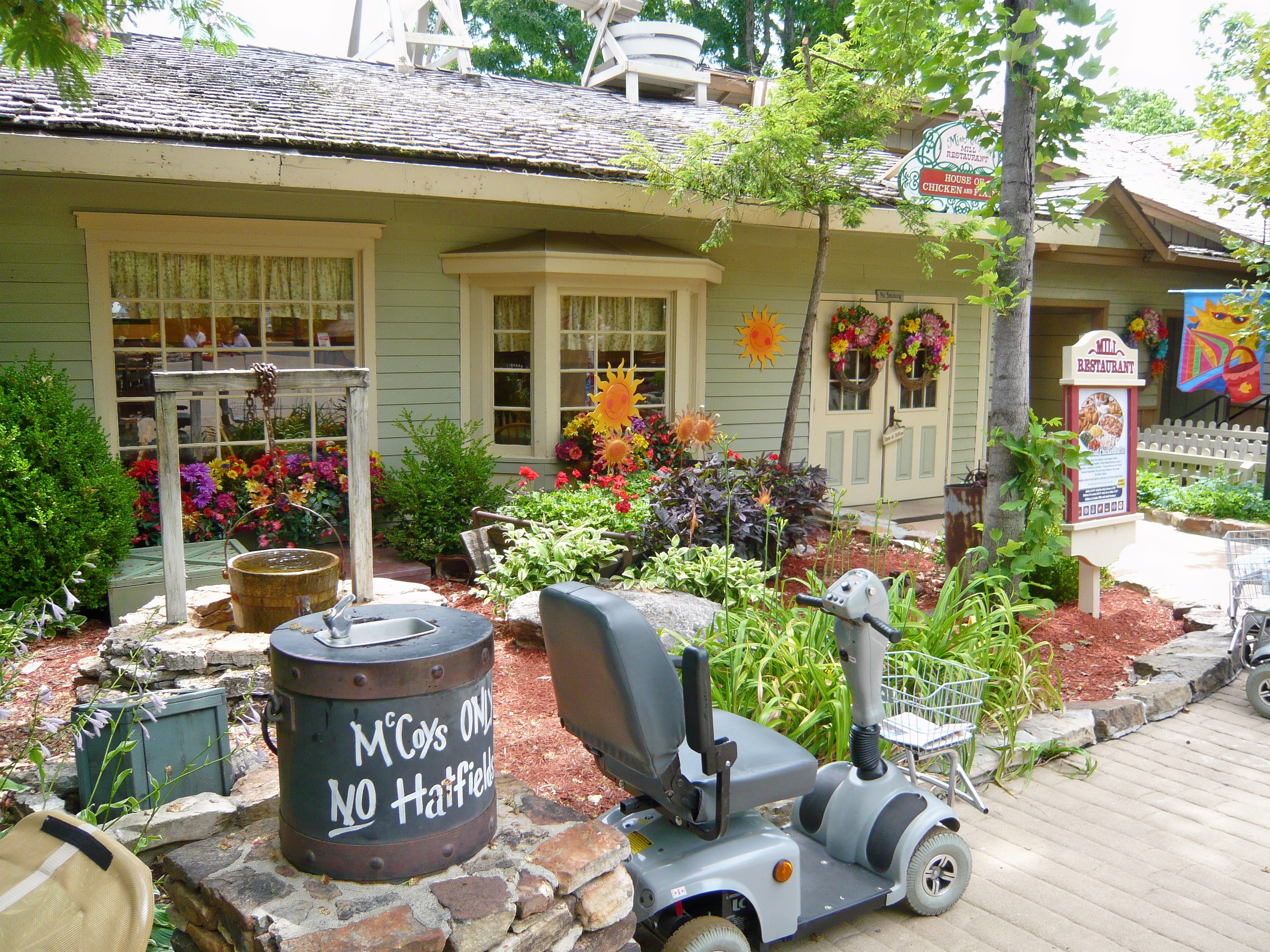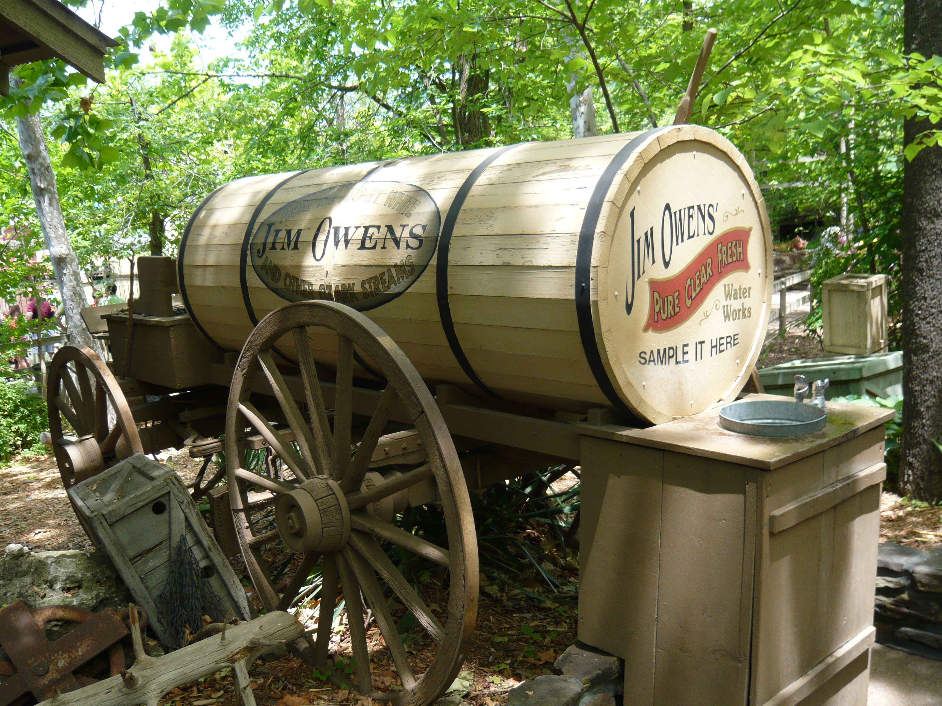 alles in diesem Park ist mit atemberaubender Detailtreue und Sorgfalt auf die 1880er-Jahre thematisiert. Trinkbrunnen, Toilettenhäuschen, Schilder und Wegweiser, Häuser, Fassaden, Attraktionszugänge, Restaurants mitamt Küchenausstattung, Mülleimer, Bänke, Läden und Imbissbuden, Spielplätze, Getränkeautomaten... Alles! Jeder Water Fountain erzählt eine kleine Geschichte (der oben abgebildete verweist z.B. auf die Ursprungsjahre des Parks, wo die Fehde zwischen den Familien Hatfield und McCoy ein Dauerthema beim Strassenentertainment war), überall sprudeln Quellchen, die irgendwelche Zierbrunnen und Holzkanäle speisen oder Wasserräder antreiben, jeder Coca-Cola-Automat hat alte Coke-Reklamen an der Seite, jeder Popcornstand hat aus Prinzip einen alten Dampfkessel drauf, Hinweisschilder sind mit alten Fonts und im Country/Berg-Slang geschrieben, sämtliche Snacks werden mit kunstvoll auf alt gestalteten Bildern dargestellt und auch mit Werbevokabular aus alter Zeit umschrieben, alle Wartebereiche und sämtliche Fahrstrecken der Attraktionen sind nur so gesäumt mit Requisiten, Animatronics und sonstigem Zeugs, das die alte Zeit darstellen soll. Ab so einem Level an Themeing klappt einem schlicht die Kinnlade runter - einfach irre, was man hier gezaubert hat, um einen gänzlich in diese längst vergangenen Zeiten eintauchen zu lassen!