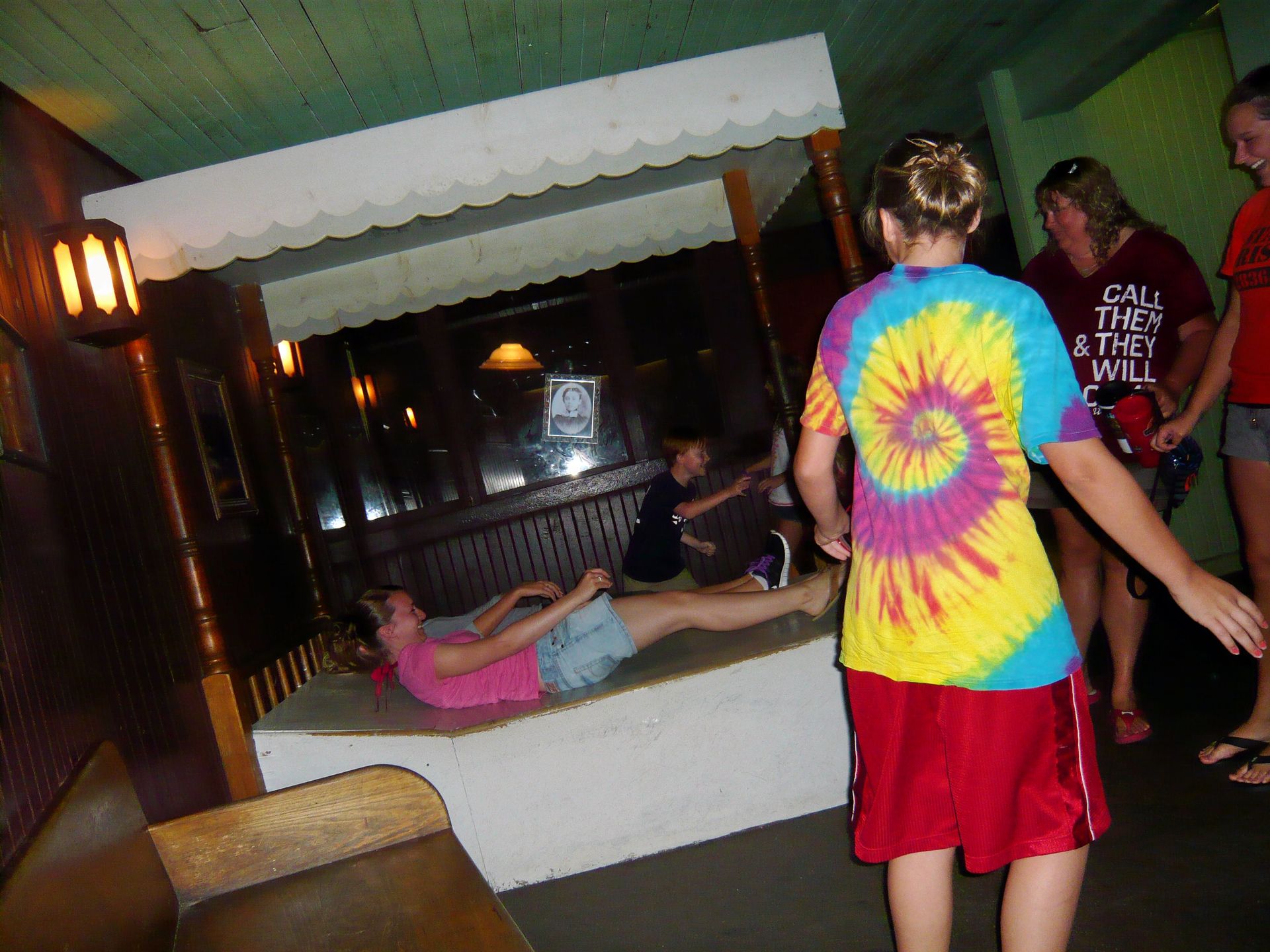 Dann habe ich noch zwei Bilder von der schrägen Walkthrough-Attraktion Grandfather's Mansion, die wir irgendwann zwischendurch besucht haben, sich irgendwo in Midtown befindet und die man nicht verpassen sollte! Ähnlich wie viele Attraktionen des Typs "Schiefes Haus" bietet auch dieses Exemplar viele versteckte Gags und einige ausgesprochen schwindelerregende Illusionen! Wers hier schafft, nicht wie ein unbeholfenes Trampeltier durch den Abschlussraum, Grossvaters Schlafzimmer, zu straucheln und sich auf seinem Bett auch noch aus der Rückenlage aufrichten kann, hat meinen allergrössten Respekt!