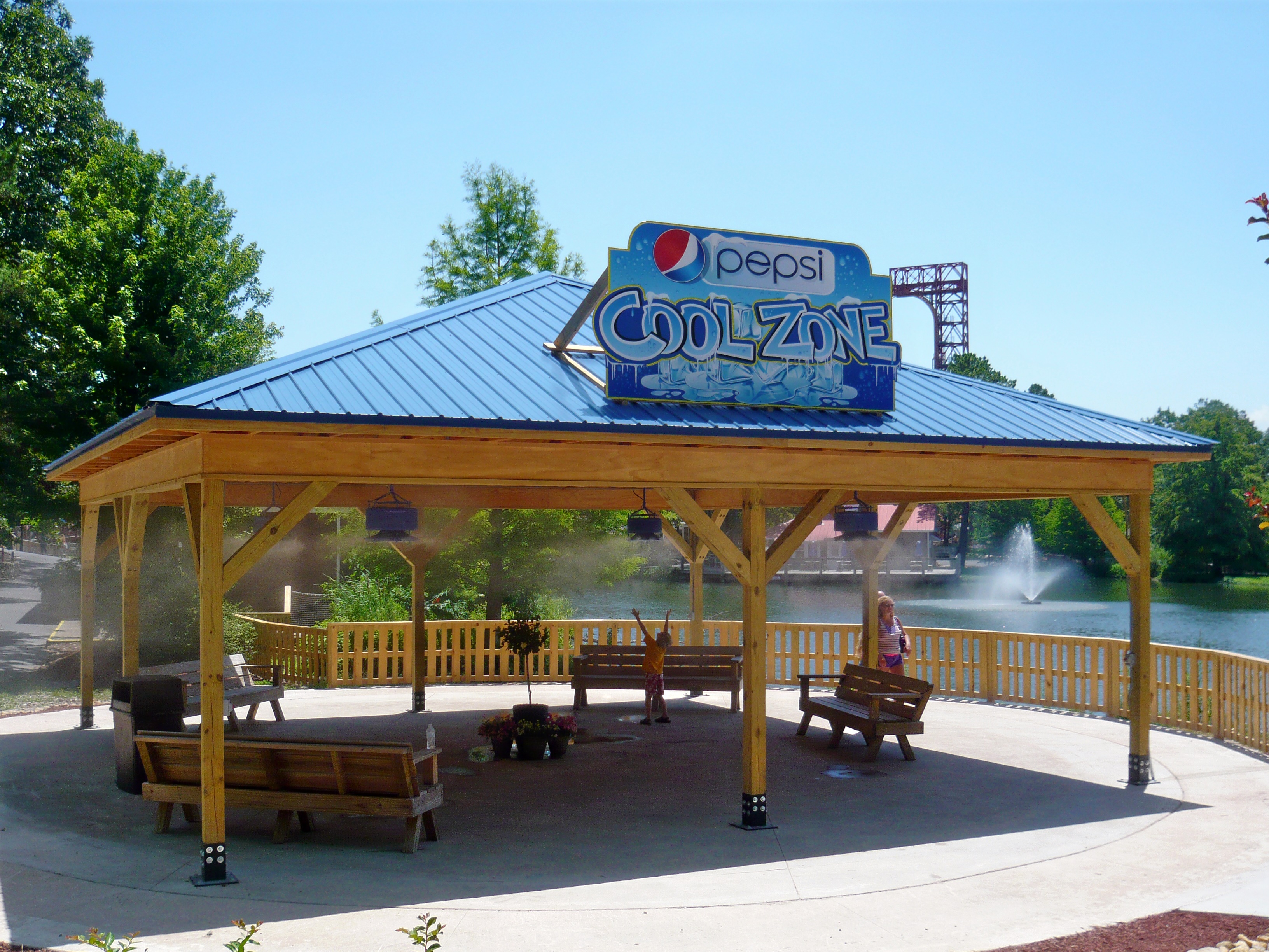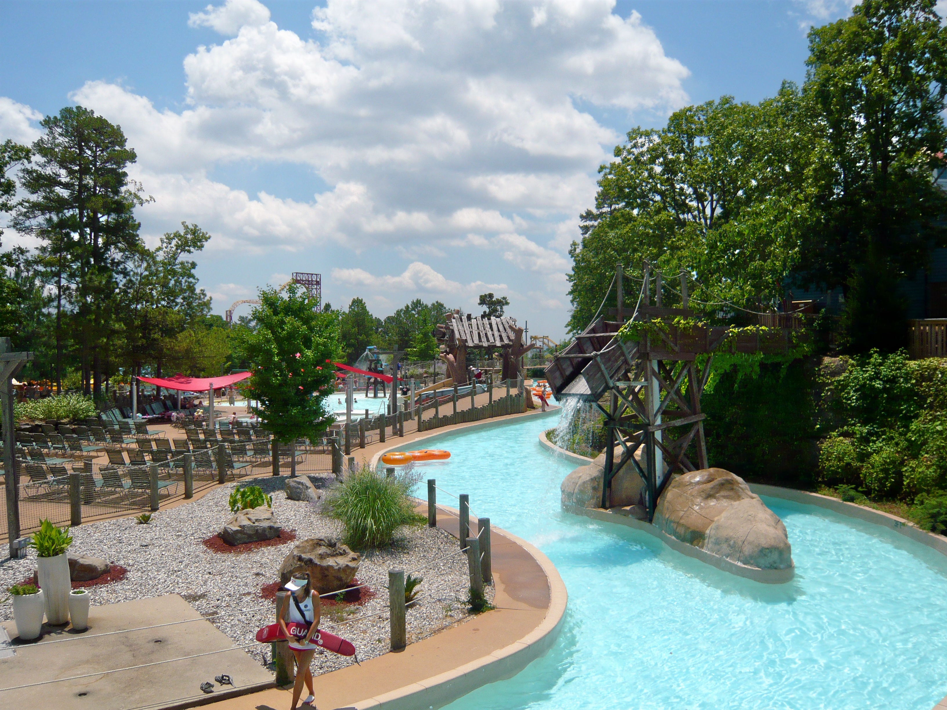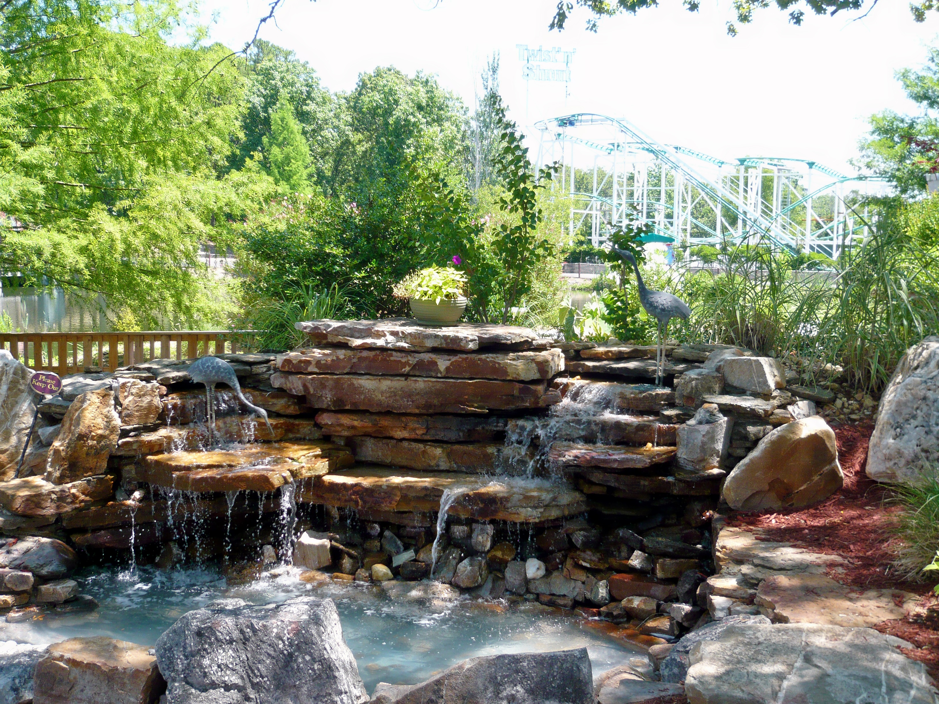 Zunächst ein paar allgemeine Parkfotos. Der erste Eindruck auf dem Weg zu den Achterbahnen erscheint gar nicht mal so schlecht! Kein Vergleich natürlich mit Silver Dollar City vom Vortag, aber stellenweise gibt es doch einige durchaus sehenswerte Gestaltungsansätze und hübsche Ecken zu entdecken.