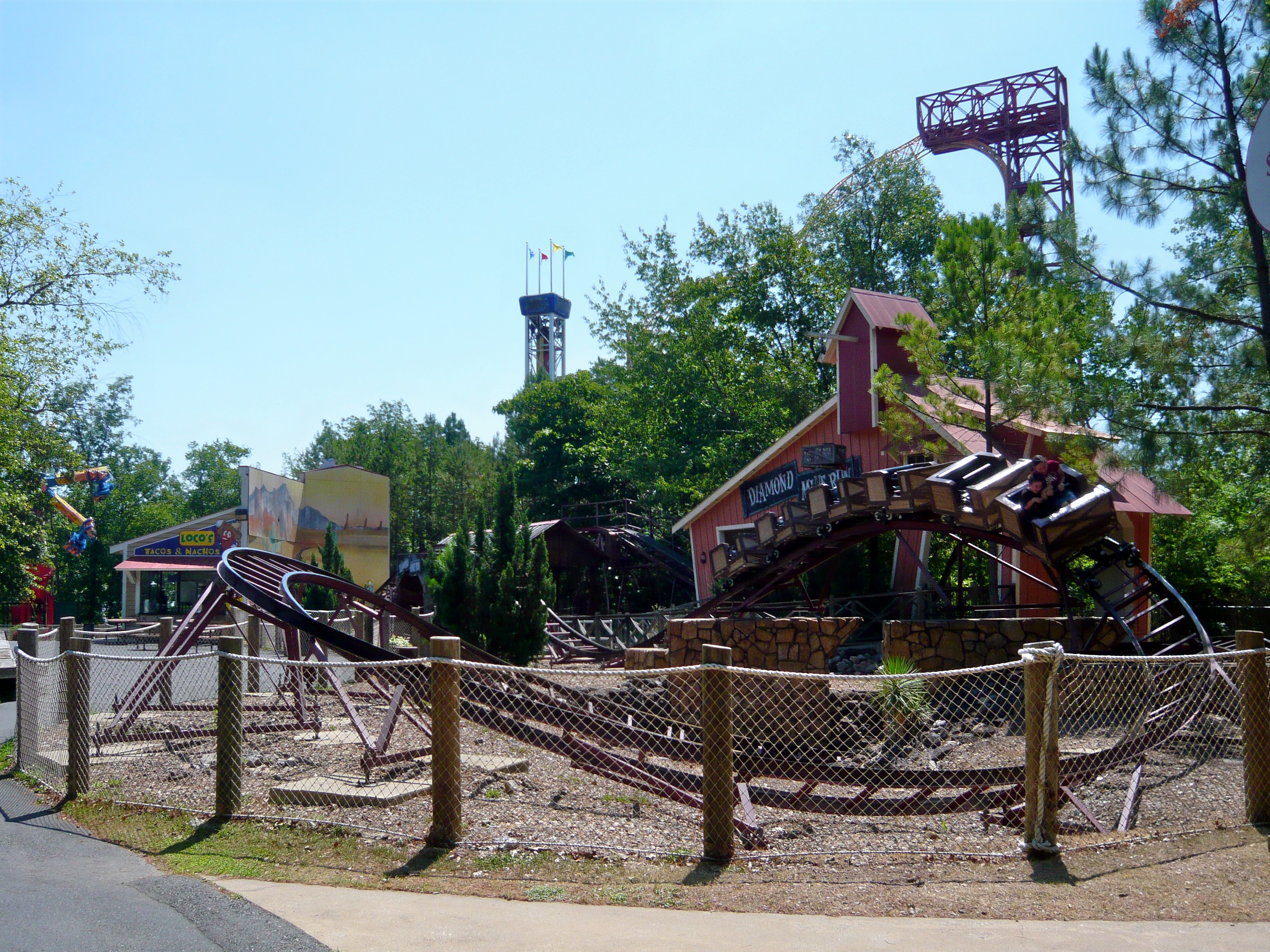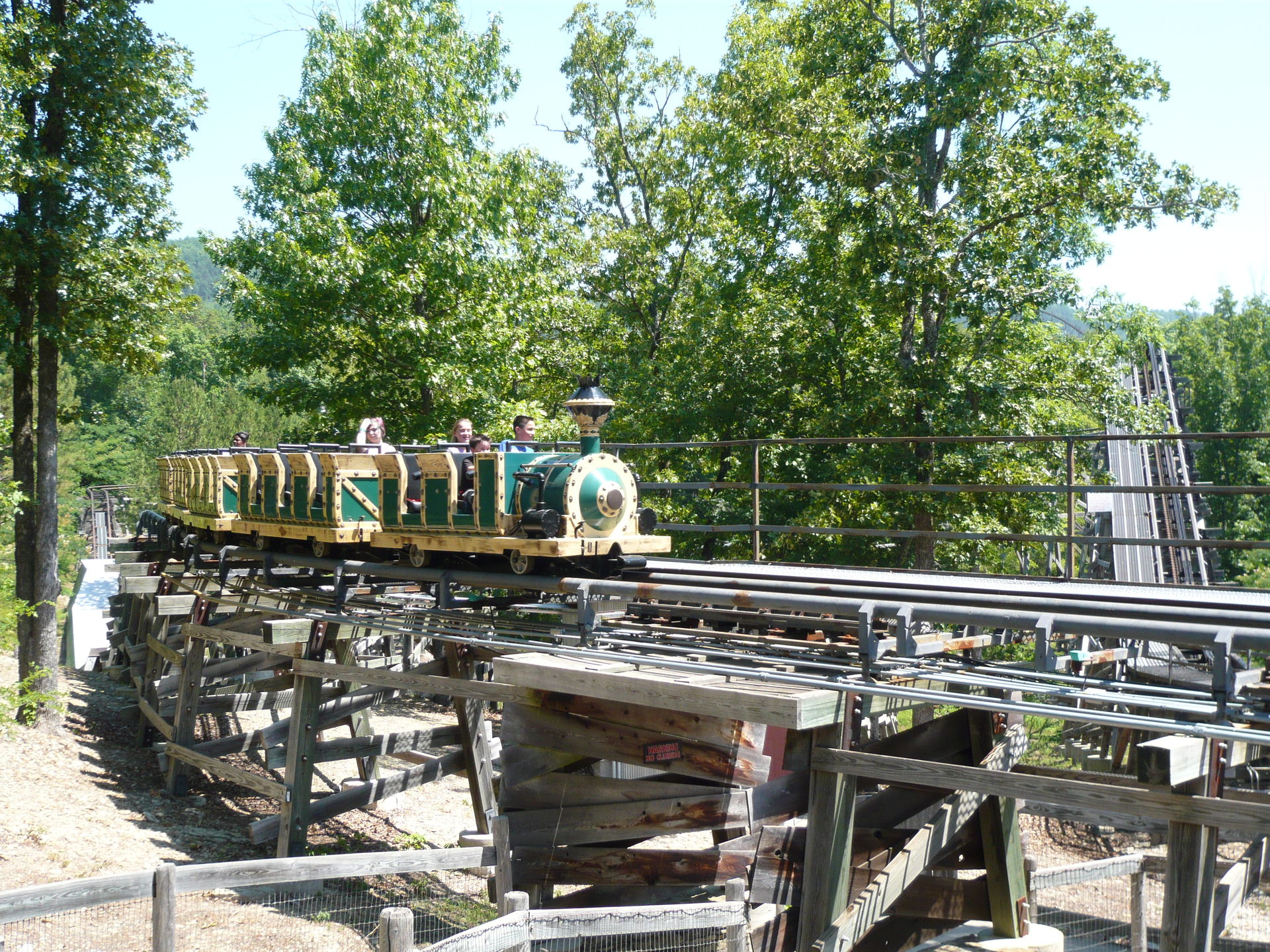 im Bericht zu Six Flags St. Louis geschildert, war diese Anlage zunächst als Doppel zum River King Mine Train im Einsatz, danach in Dollywood beheimatet und dreht nunmehr hier ihre Runden. Sie ist uns im Verlaufe der Jahre also quasi entgegen gekommen - oder sind wir ihr hinterher gereist? Fest steht, dass sie seit dem jeweiligen letzten Aufenthalt in SFSL eine grössere Distanz als wir zurück gelegt hat.
