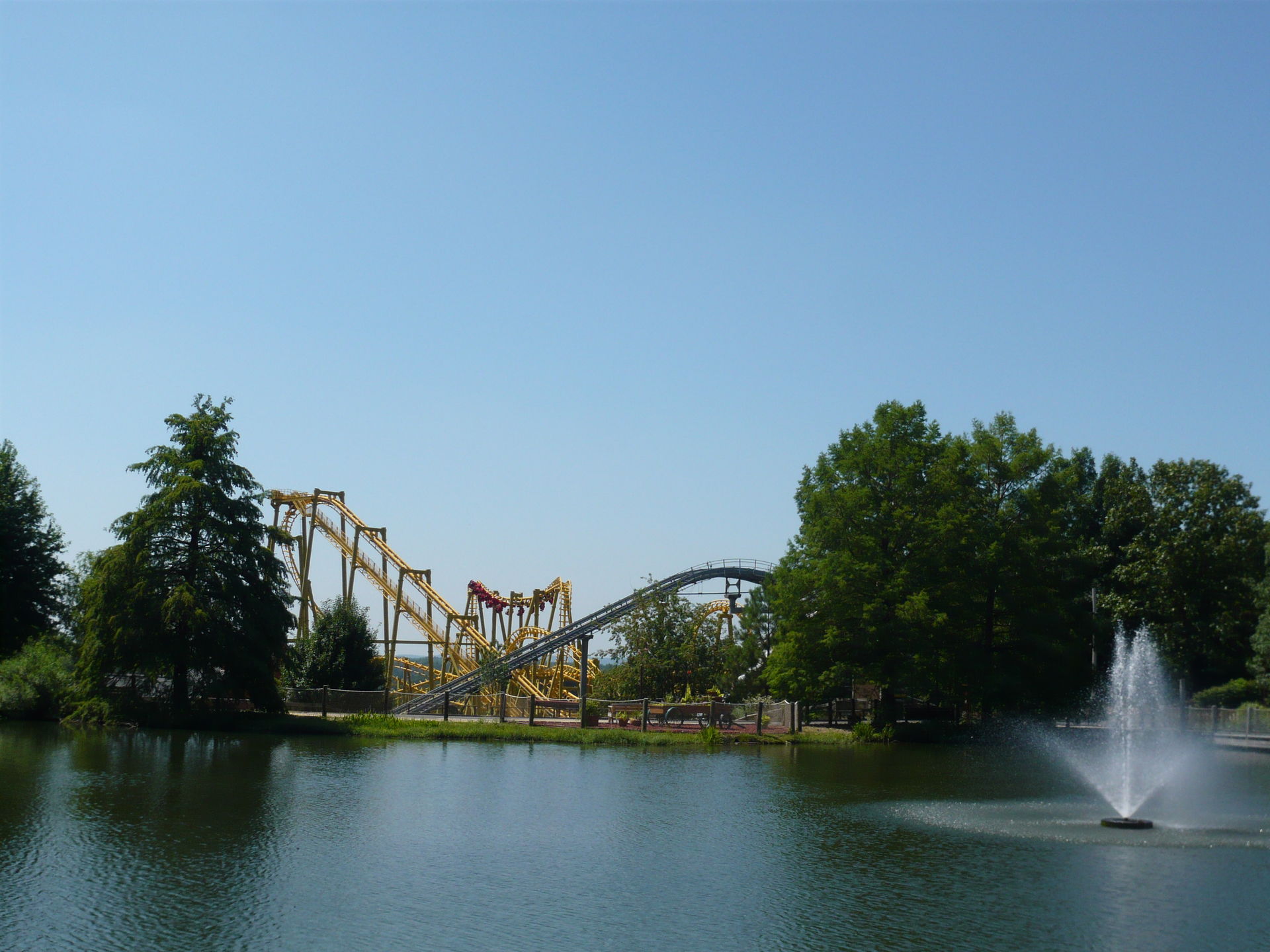 Eine Weile lang haben wir noch ein paar Fahrten mit den um den See gruppierten Flatrides gemacht und beim Spillwater zugesehen. Dann hat endlich der X-Coaster seinen Betrieb aufgenommen.