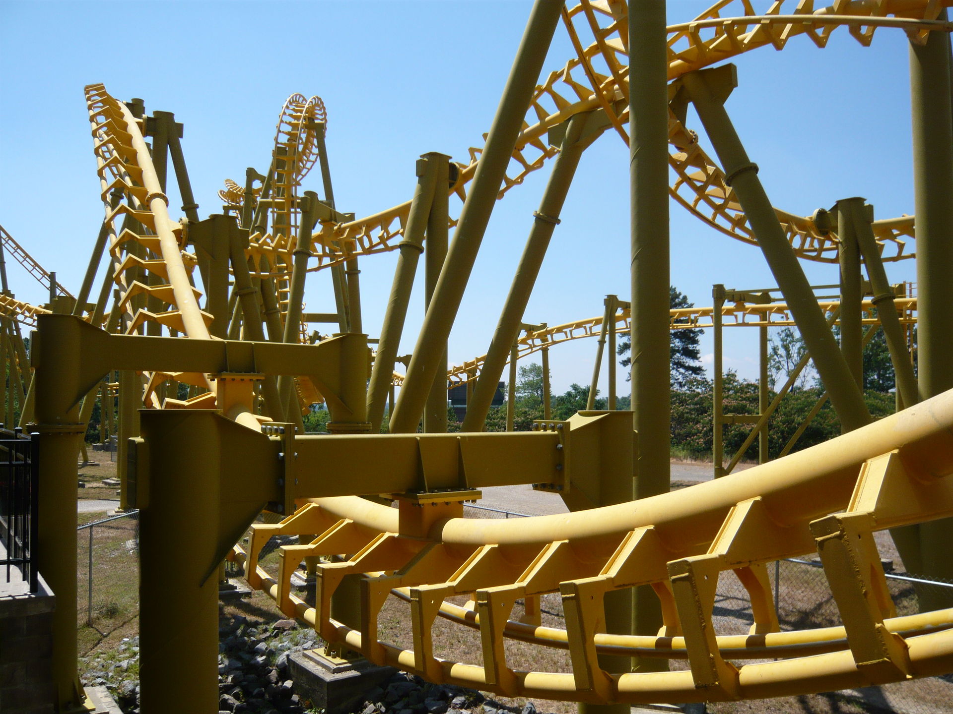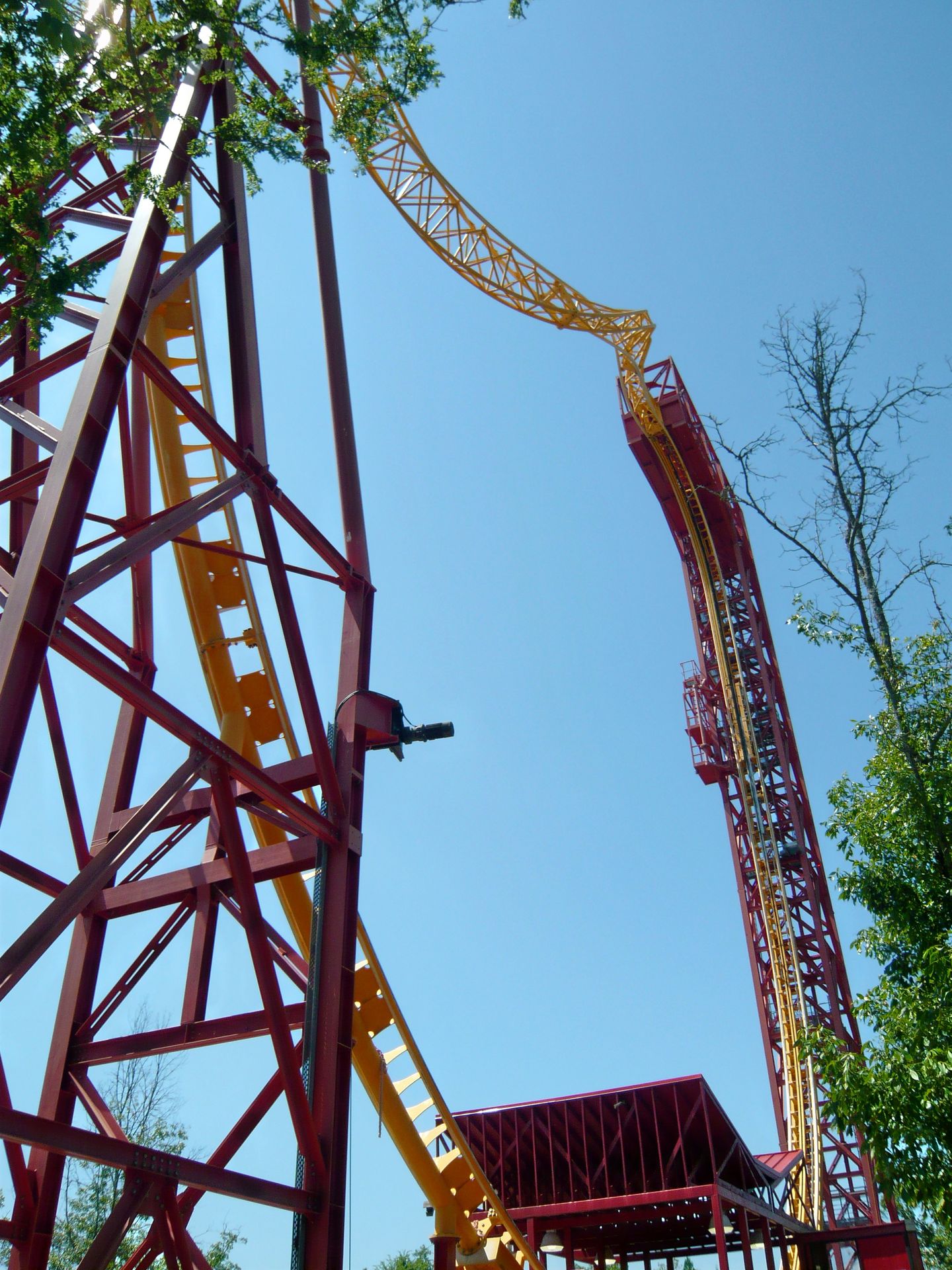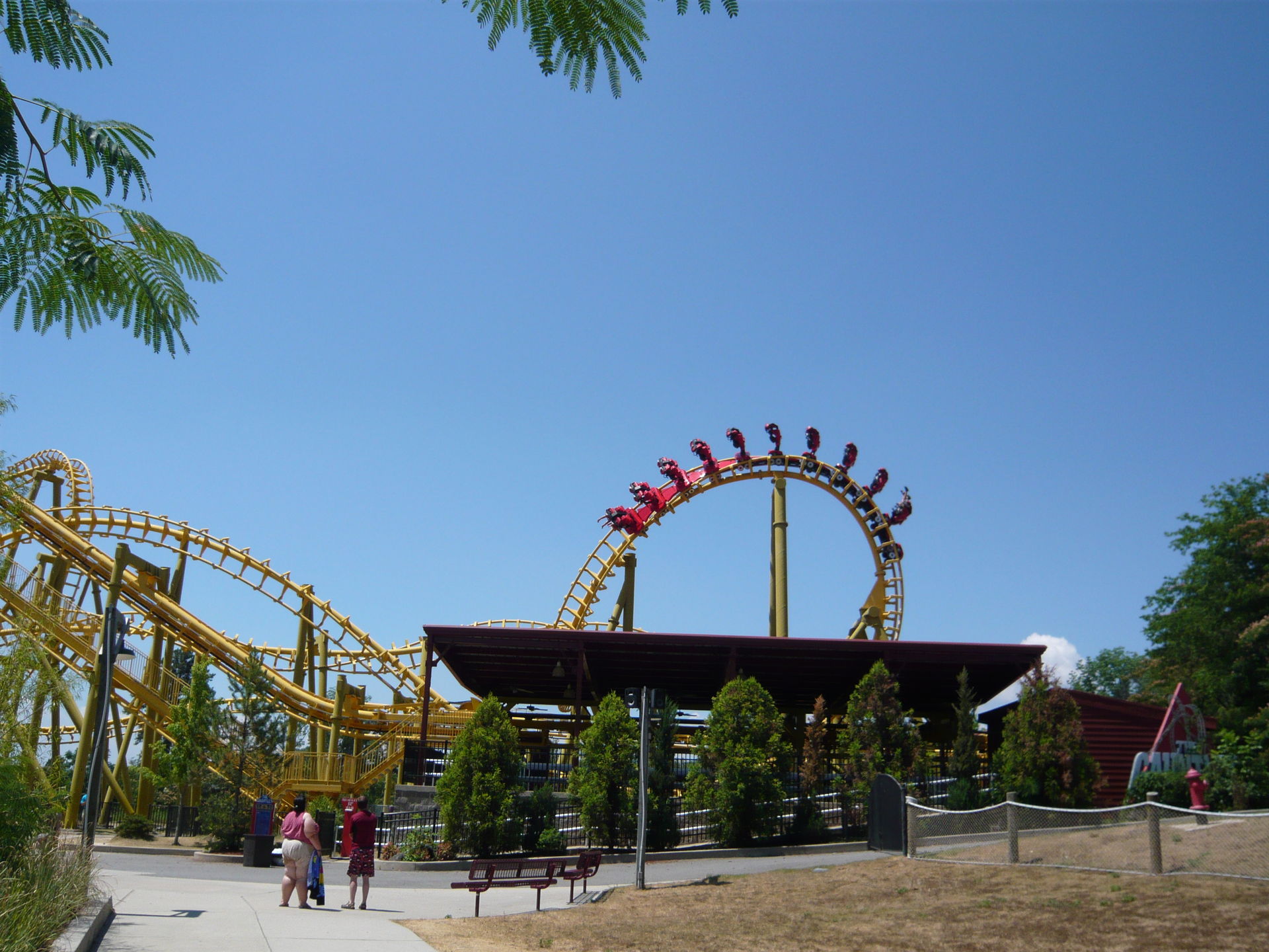 Vekoma SLCs gefahren und kann daher bloss sagen, dass sich dieses Exemplar im Rahmen des üblichen Grads an Passagierkomfort bewegt, was die Dinger halt so hervorbringen können. Und so schlimm wie die Todesmaschine Mind Eraser in Six Flags America wars definitiv nicht. Aber man muss natürlich auch klarstellen: insbesondere durch die auch hier wirklich saublöd konstruierten, schultermalträtierenden Bügel und mit dieser pissgelb-rotzgrünen Farbgebung ist das Teil nicht nur eine Beleidigung für alle gesunden Schulter- und Ohrenpaare dieser Welt, sondern auch für die Augen. Und weiter im Takt.