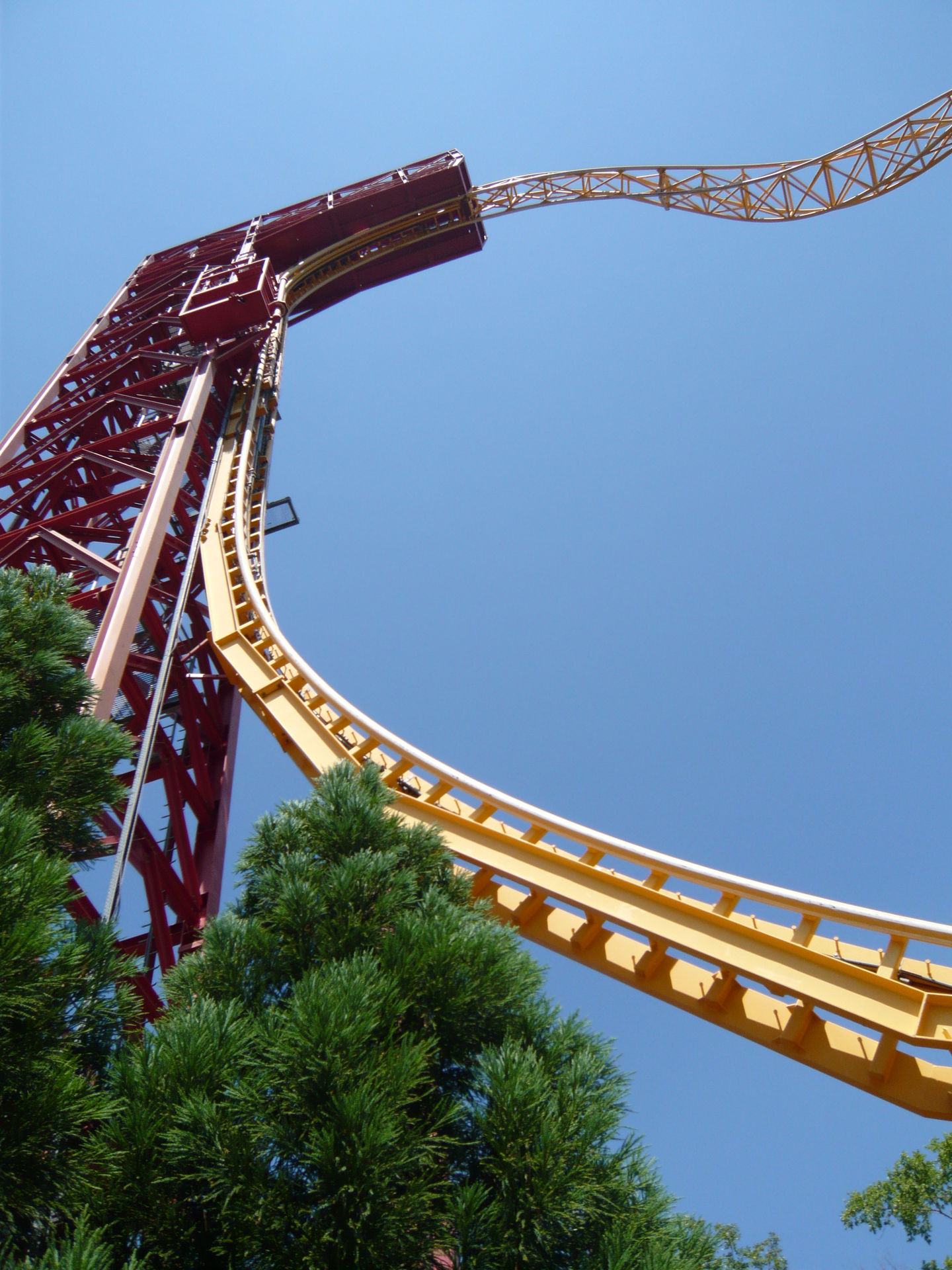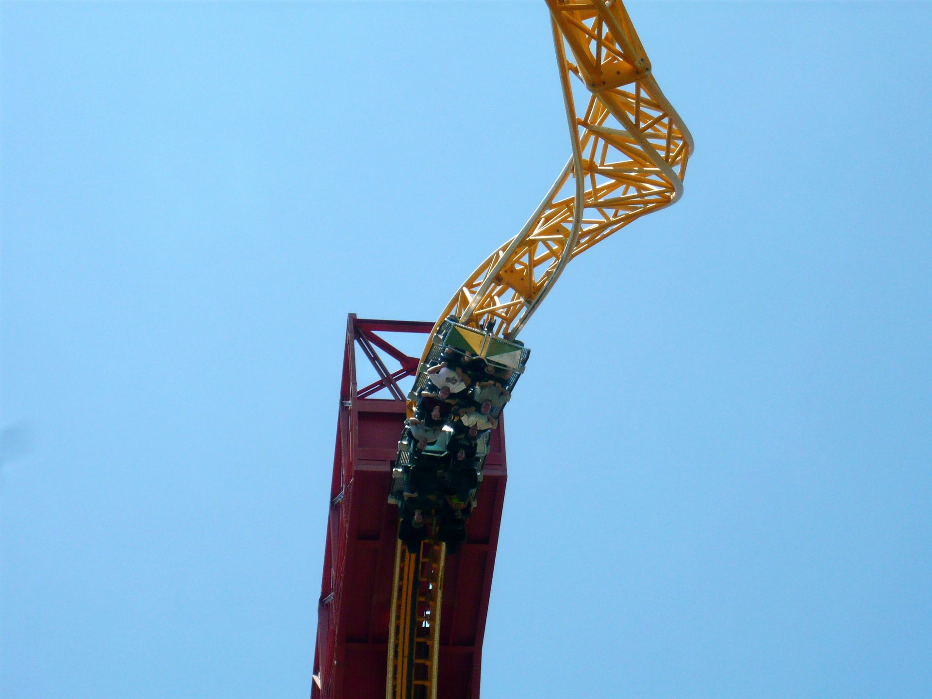 Schraube in schwindelerregender Höhe etwas Tempo gewinnend, windet man sich dann in einer zweiten direkt in den wieder runterführenden Halblooping und pendelt mit dem gewonnenen Tempo dann vor- und rückwärts nach und nach aus. Hat insgesamt betrachtet zwar schon Spass gemacht, ist für meinen Geschmack aber einfach kein vollwertiger Coaster, sondern ist sich vielmehr wie ein gar nicht so flatter Flatride gefahren.