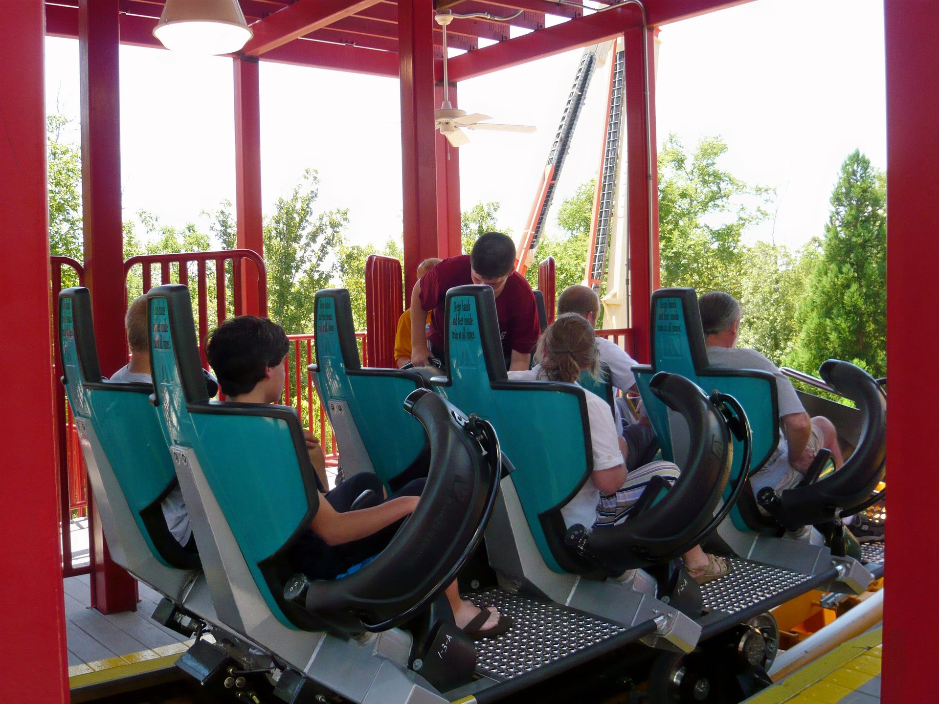 Der eine Kollege und ich nahmen in der Frontrow Platz, der andere im hintersten Wagen. Es folgte dann eine recht lange, interessante Strecke durchs tiefe Gestrüpp, mit vielen Kurven, Schussfahrten, Helices, drei Lifthills und abschliessender grösserer Schussfahrt in einen Tunnel, was bei vielen Minetrains in dieser Gegend der USA offenbar ein Staple ist. Spass hats leider nicht allzu doll gemacht, da man einige Male ziemlich übel durchgeschüttelt wurde und auch weil man in der Frontrow ständig bis weit in alle Drops hineinhing und dann ziemlich unsanftes Nachpushen erlebte, wenn der restliche Zug nachrollte. Der gemeinsame Bügel für die beiden Passagiere war für Personen mit langen Beinen etwas gar unbequem und hat beim Mitstreiter sogar für einen kleinen blauen Fleck am Oberschenkel gesorgt. Der andere Mitstreiter, der hinten im Zug sass, war nicht ganz so streng mit der Bahn und schien eine etwas entspanntere Fahrt gehabt zu haben. Eine zweite Fahrt fand jedoch niemand von uns nötig.