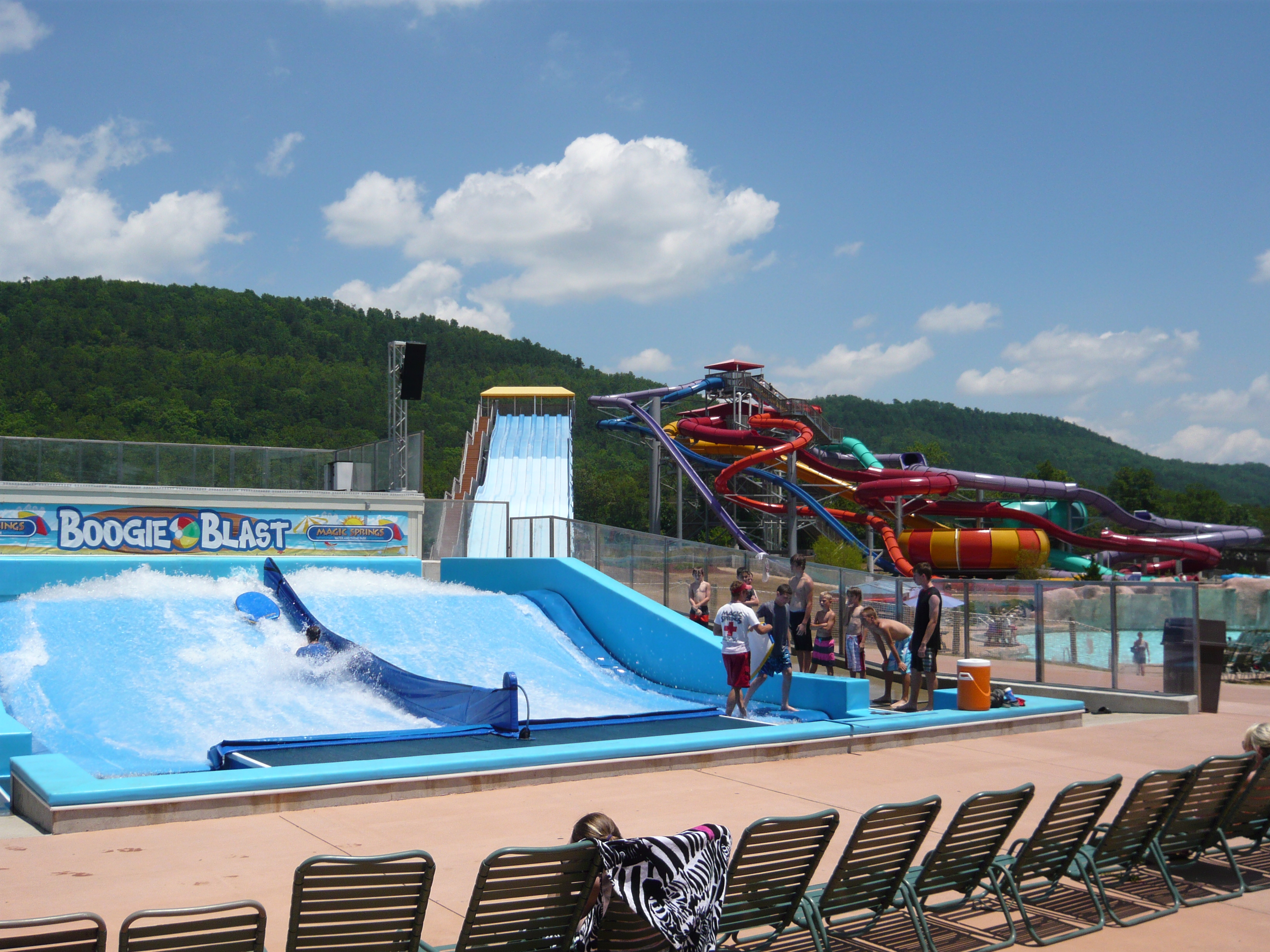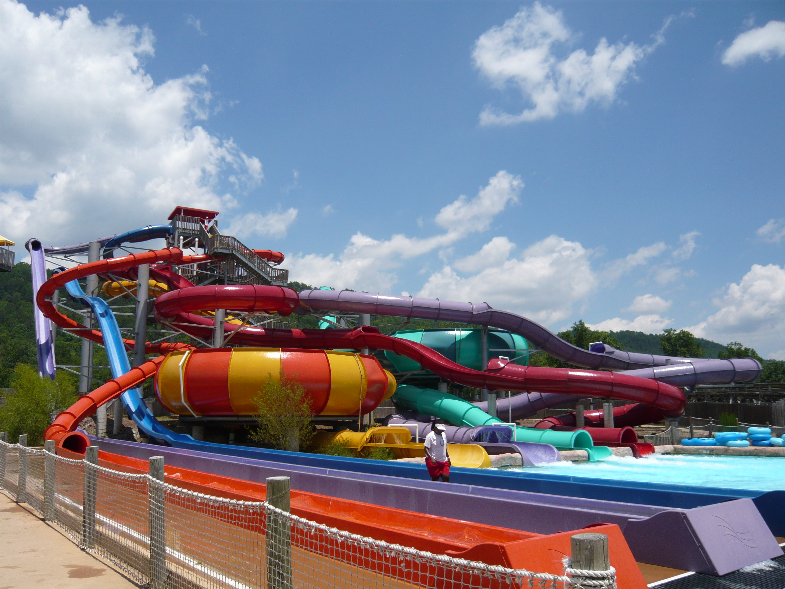 Wenn der zumindest cool anzusehende, riesige Proslide Matten-Racer vielleicht doch noch aufgemacht hätte, hätten wir womöglich noch unser Schwimmzeug aus dem Auto gefischt, um den an sich teuren Eintrittspreis in den Park etwas aufzuwerten und uns etwas abzukühlen - denn an diesem Tag herrschte zum ersten Mal auf dieser Reise feuchtwarmes, erdrückendes Südstaaten-Sommerwetter vor. Wir haben dann aber wie gesagt lieber noch ein wenig die historisch sehenswerte Stadt Hot Springs erkundet und verliessen nach knapp zweieinhalb Stunden den Park auch schon wieder.