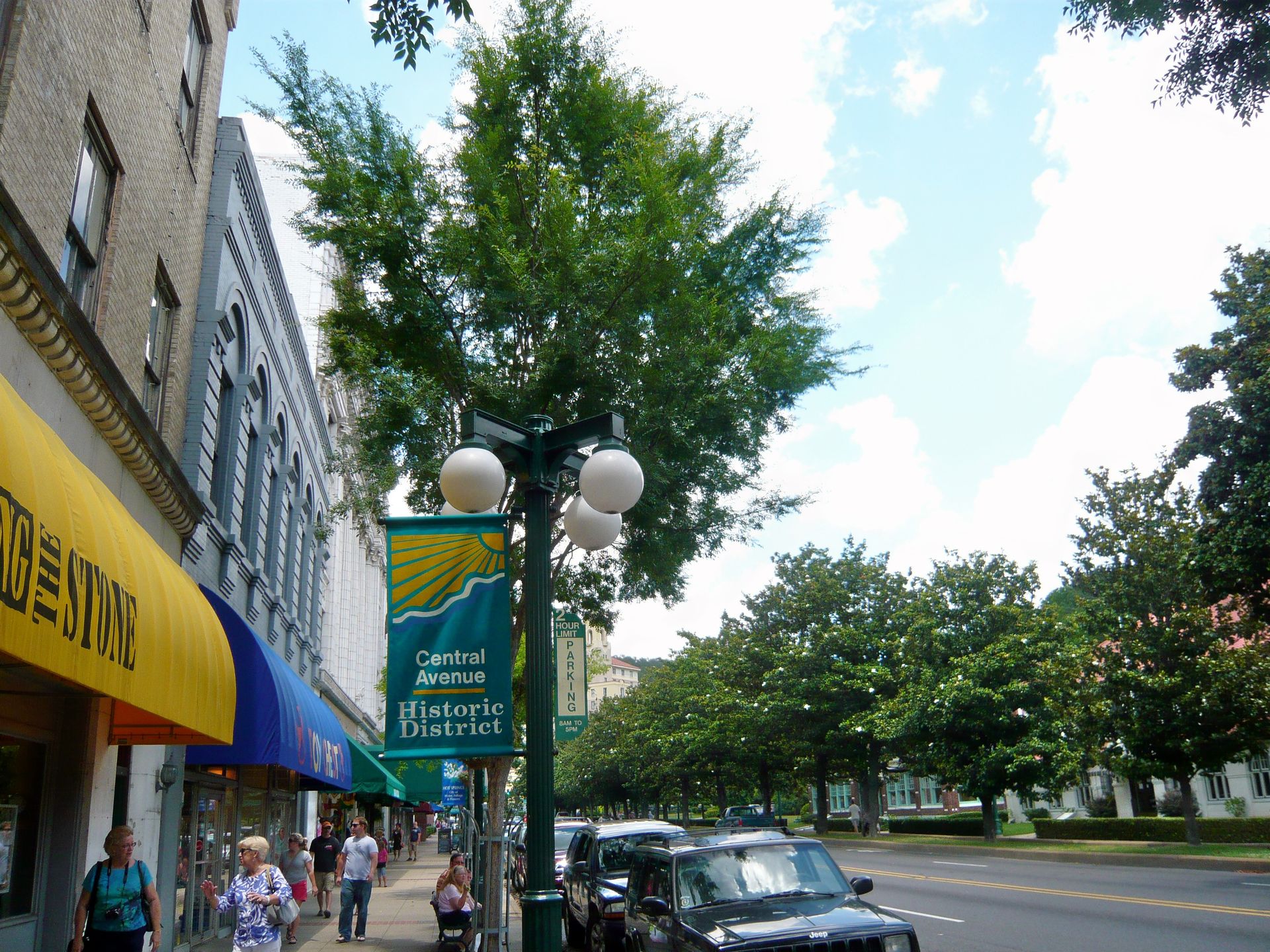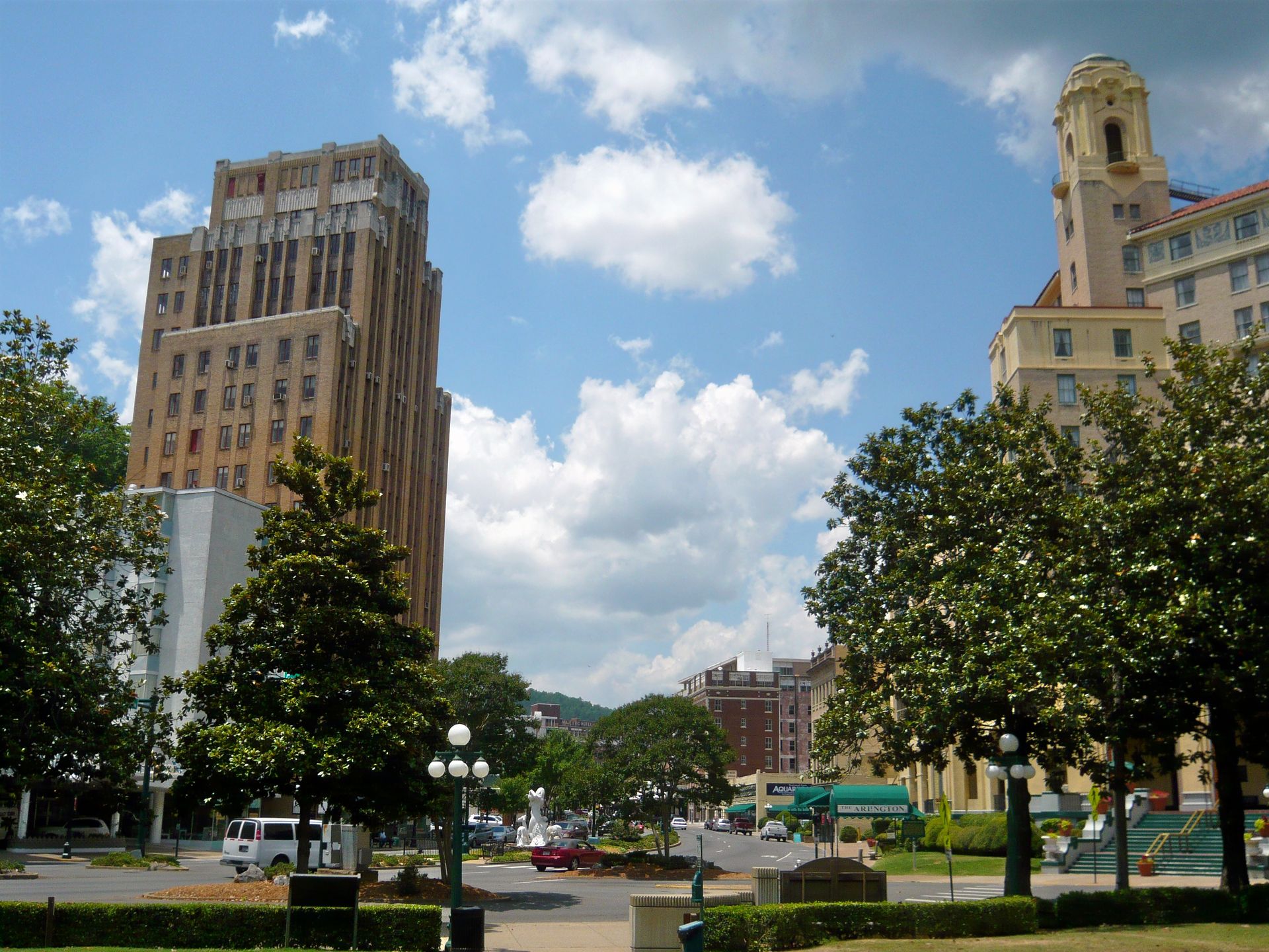 Das hier ist die Central Avenue, auch bekannt als Bath House Row. Sie bildet das Herzstück des Hot Springs National Parks. Wir waren auch erstaunt, dass ein Nationalpark offenbar durchaus auch städtisches Gebiet umfassen kann - klingt komisch, ist aber so! Entlang dieser Avenue sind alle historisch bedeutenden Bade-Kurhäuser, die mit der touristischen Nutzung der namensgebenden heissen Quellen entstanden sind, bis heute erhalten geblieben - obwohl man nur noch in zweien davon heute noch zur Kur gehen kann.