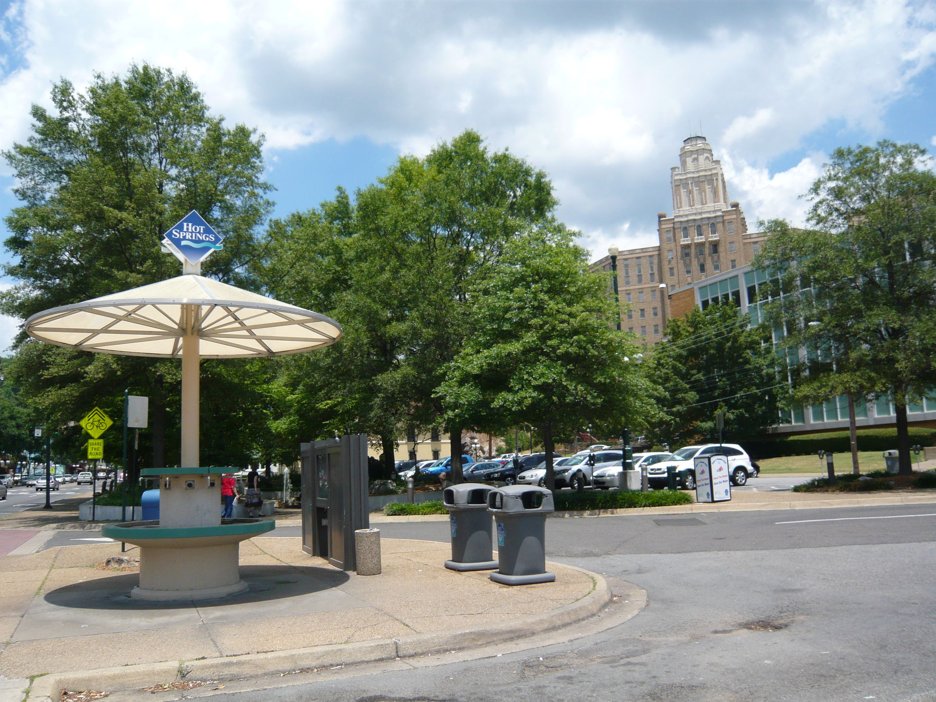 In einer Parkanlage am Nordende der Bath House Row sprudelt so eine heisse Quelle sogar direkt aus den Felsen. Nun einige Bilder der berühmten Badehäuser selbst, die wie gesagt historische und architektonische Signifikanz haben: