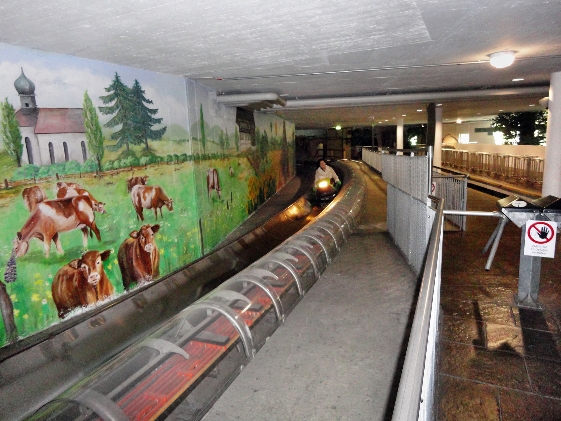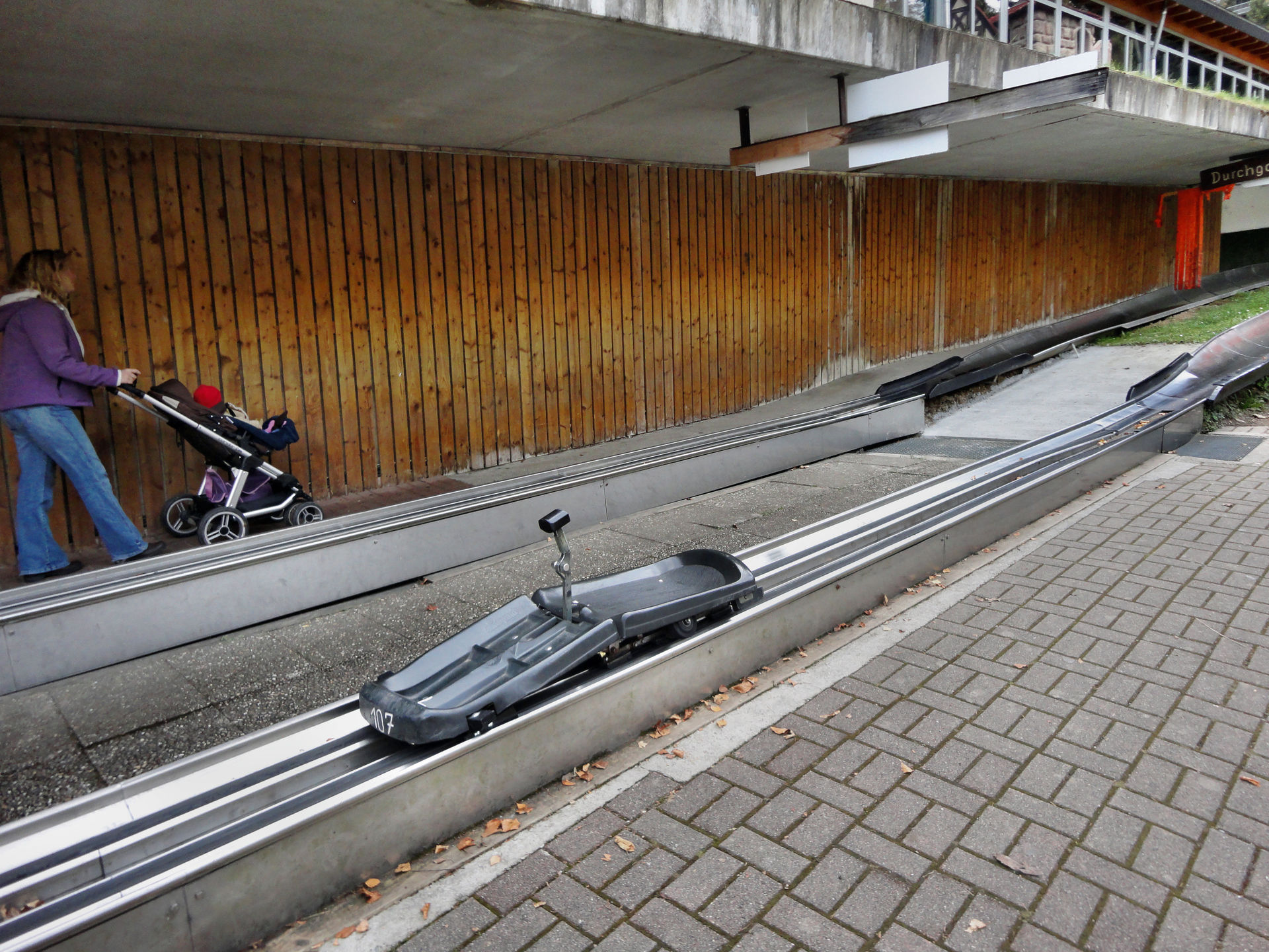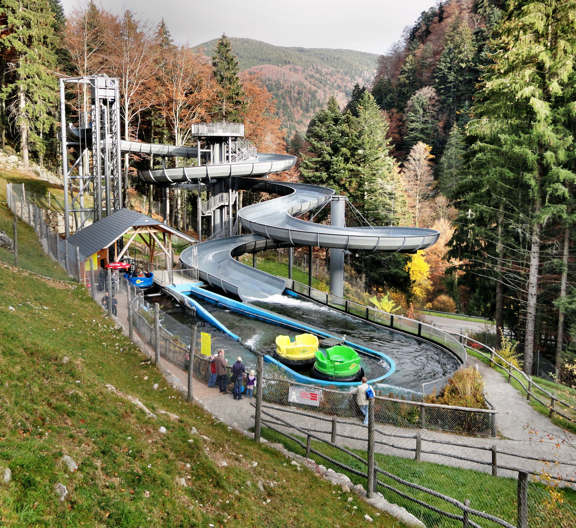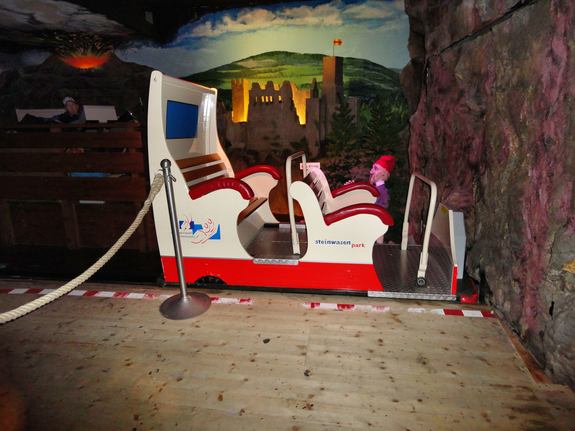 Vom Alpin Coaster in Gutach ging es beim 3.Tag unseres 2011er Europa Park- Halloween Trips weiter in den Steinwasenpark. Nachdem der Bus direkt vor dem Eingang hielt, suchten wir kurz den Eingang in den Park. Mit etwas Verzögerung fanden wir diesen am Restaurant, auf der Vorderseite des Hauptgebäudes. Dieses Gebäude beinhaltet im oberen Bereich, neben dem erwähnten Restaurant auch mehrere Märchen und Miniaturausstellungskästen. Eine kleinere Themenfahrt und ein Kino. Ebenfalls gelangt man von hier in die so genannte Eishöhle von wo man Einblicke in die Achterbahn und Bobkartbahn im Keller des Gebäudes bekam. Nachdem wir im Außenbereich eine kleine Runde durch den Tierpark gemacht haben, ging es um das Gebäude herum und auf der Seite des Raftings hinab. Auch die Station des Sessellifts und der Ausstieg der Rodelbahn befinden sich hier. In der letzten Ecke befindet sich der Eingang für den „Keller“ des Gebäudes, wo man zu den beiden schon erwähnten Attraktionen gelangt. Anschließend ging es noch mal auf kleiner Runde durch den Tierpark und zu dem Darkride im Gebäude ehe uns der Bus über den Notschrei hinab nach Todtnau bringen sollte.