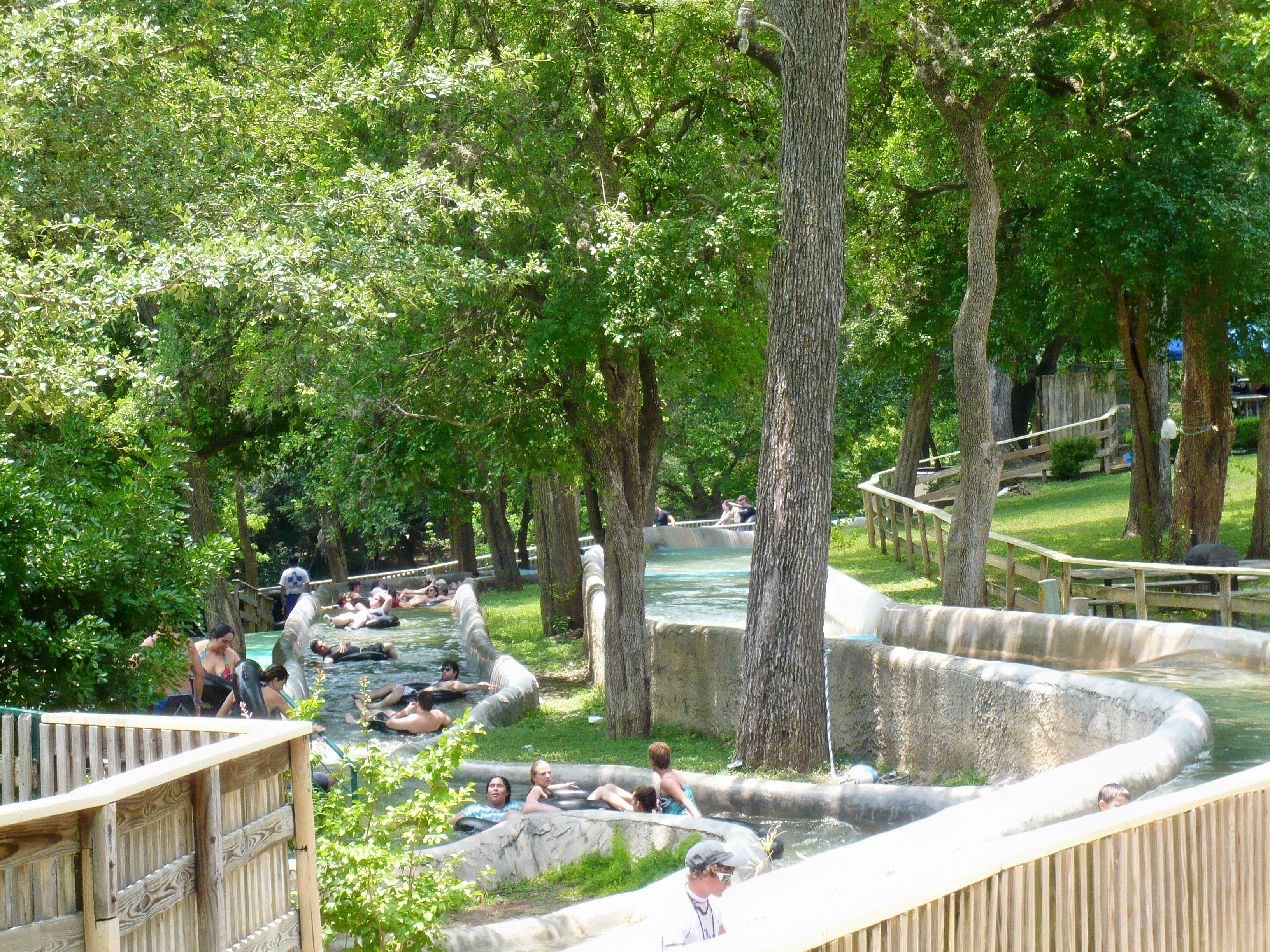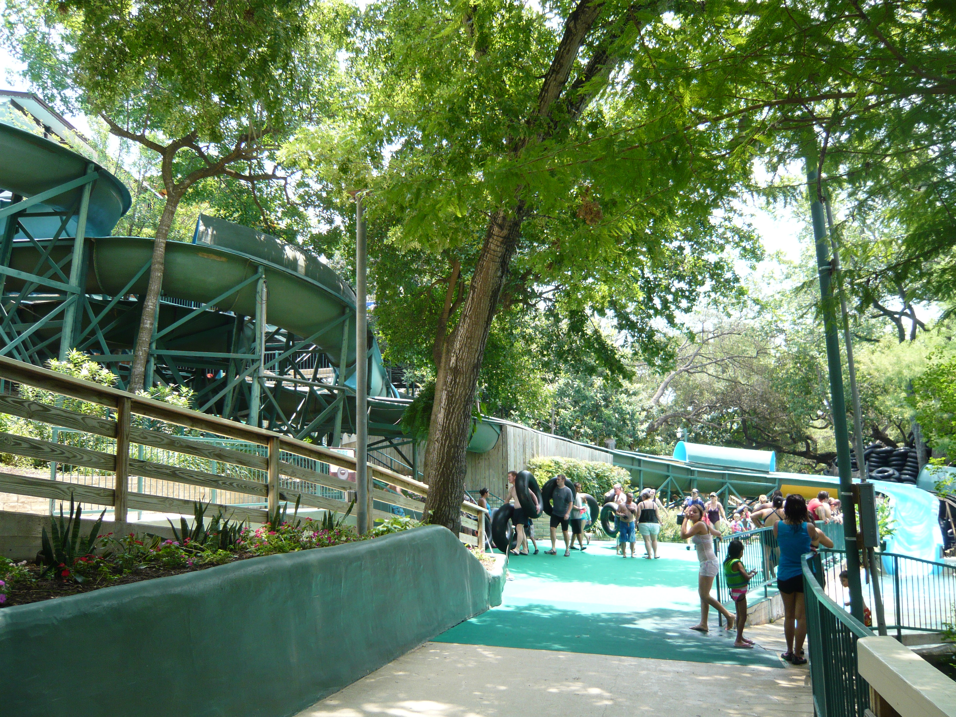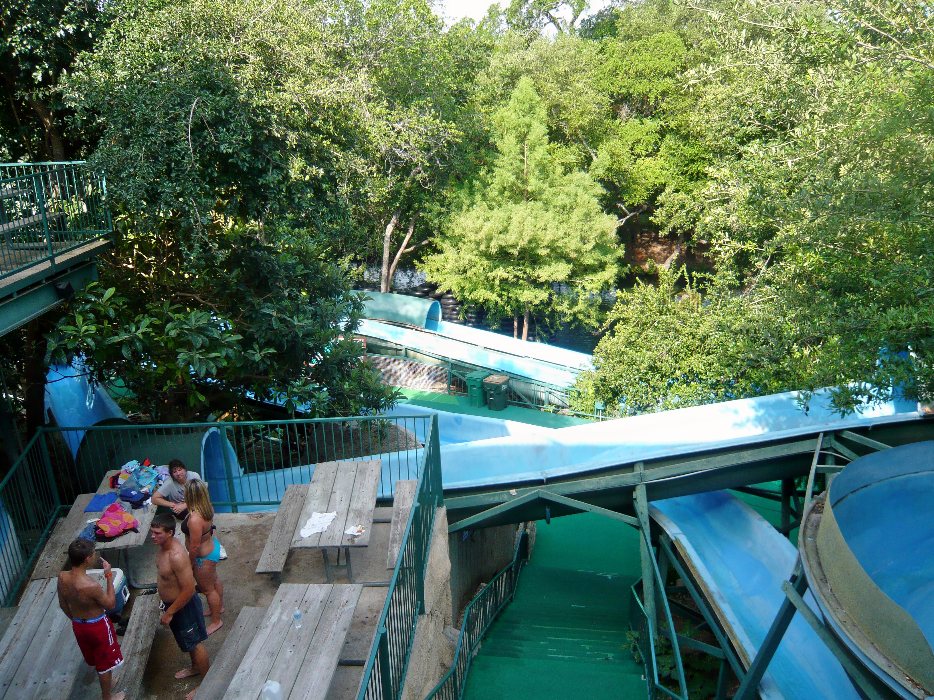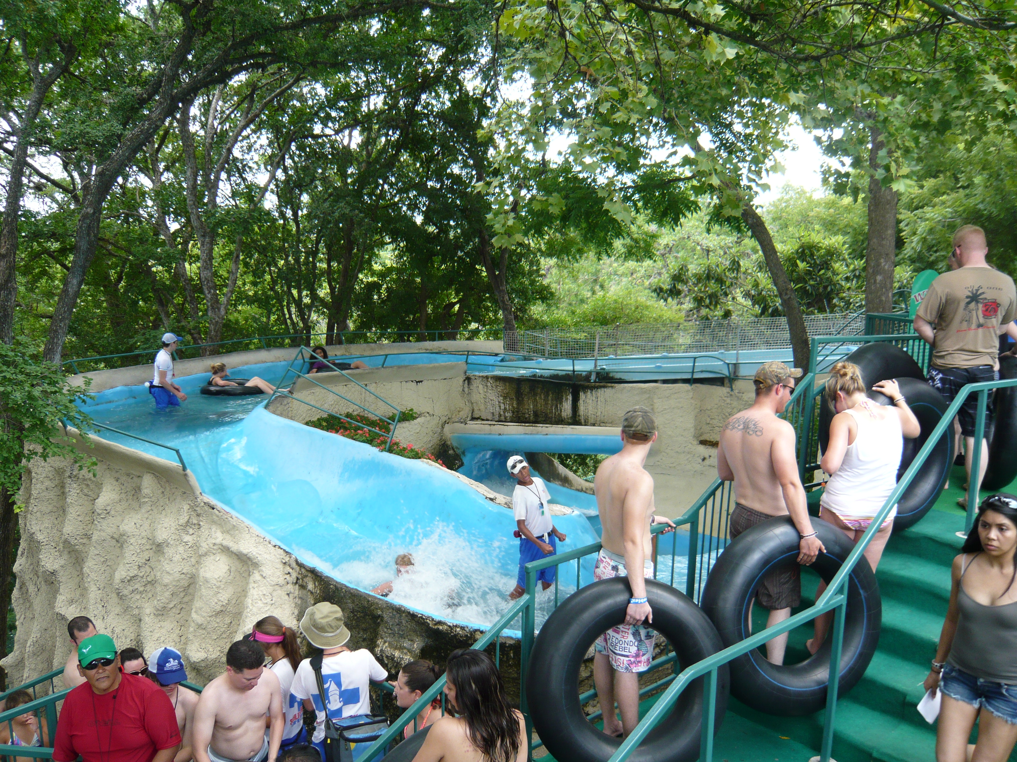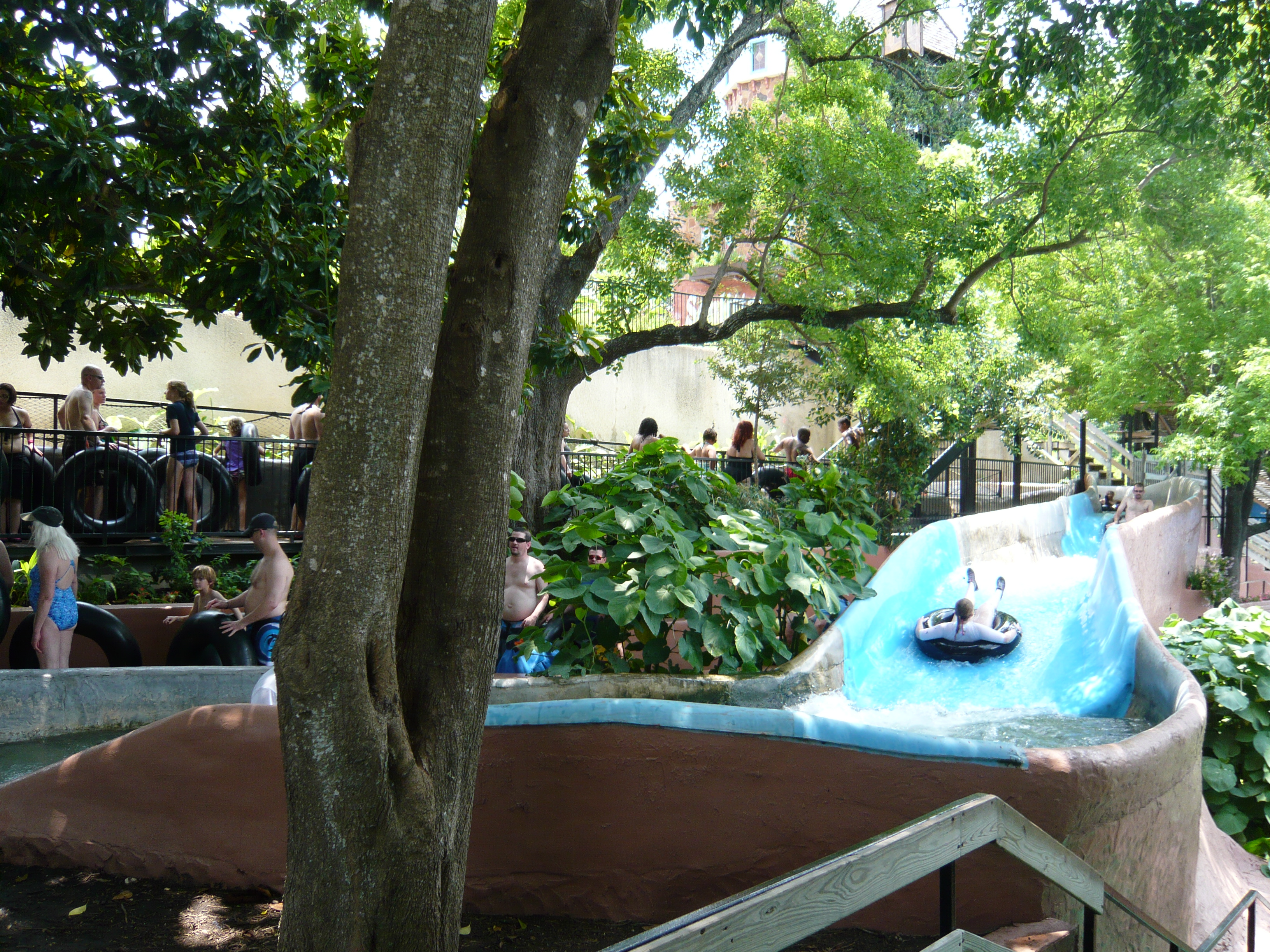 Wie mans auch dreht und wendet - mit all diesen Tube Chutes hat der Park ein absolut einzigartiges, unfassbar spassiges, süchtig machendes und schlicht geniales Attraktionensystem erschaffen, von dem man fast nicht genug kriegen kann! Zuerst eher abschreckend aussehende Warteschlangen bewegen sich durch den hohen Throughput an Parkbesuchern immer sehr rasch voran und man bekommt dann ja auch immer ein mehrere Minuten dauerndes und teilweise ja durchaus auch um stolze Etappen verlängerbares Rutsch- und Flusserlebnis geboten. Hinzu kommt, dass das Ganze ja in erfrischendem kühlem Flusswasser stattfindet und grossteils durch schattige Vegetation führt - und schon hat man die perfekte Freizeitbeschäftigung für einen heissen Texas-Sommertag. Einfach nur super! S Alle Varianten durchzuprobieren beschäftigt die Rutschfreaks hier locker einen ganzen Tag lang, aber der Park hat ja noch anderes zu bieten: