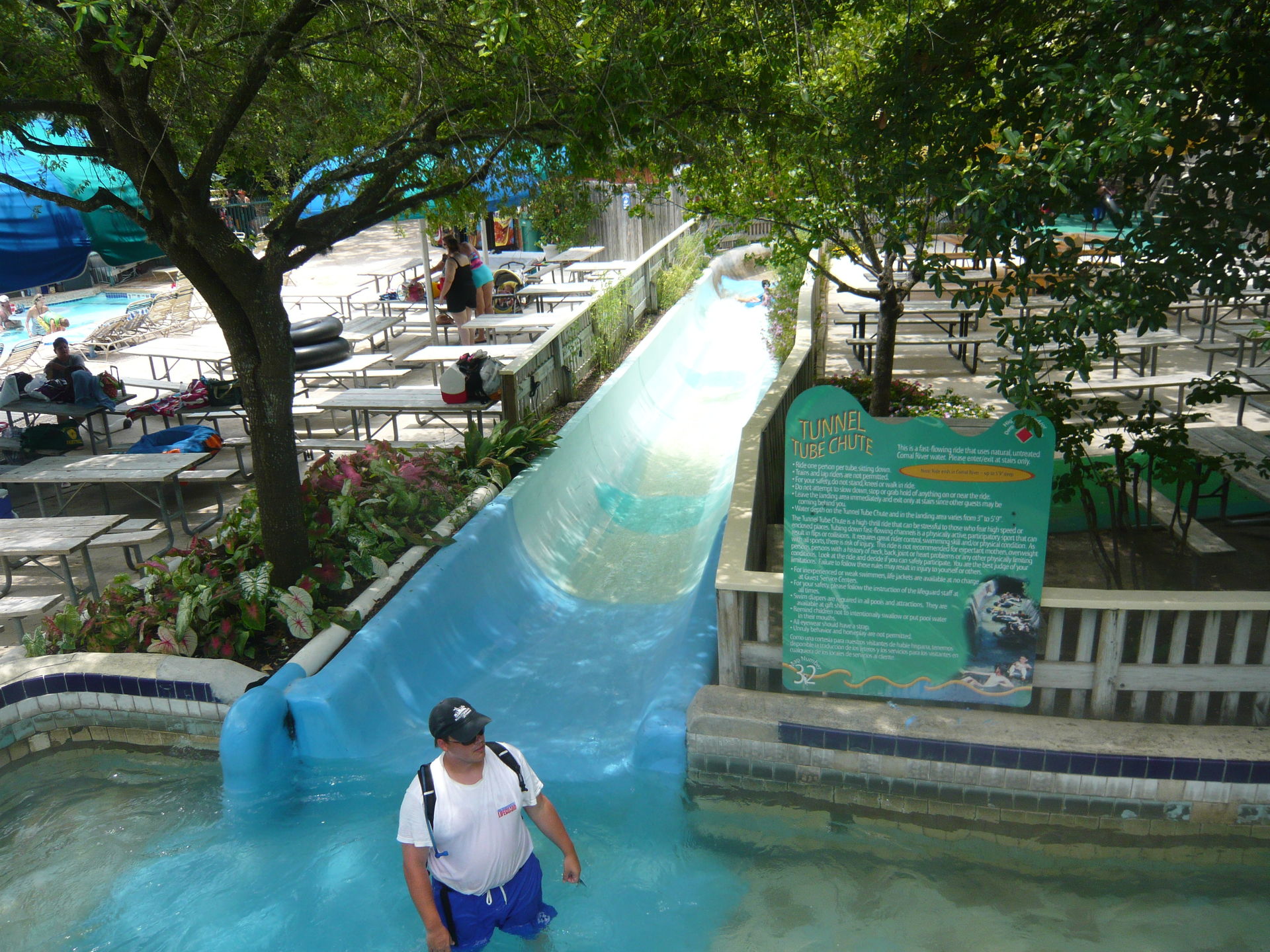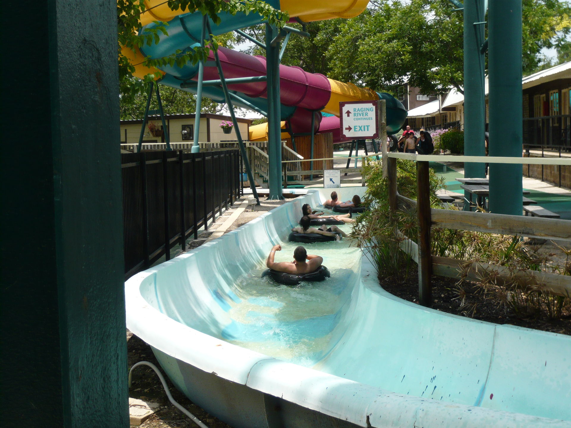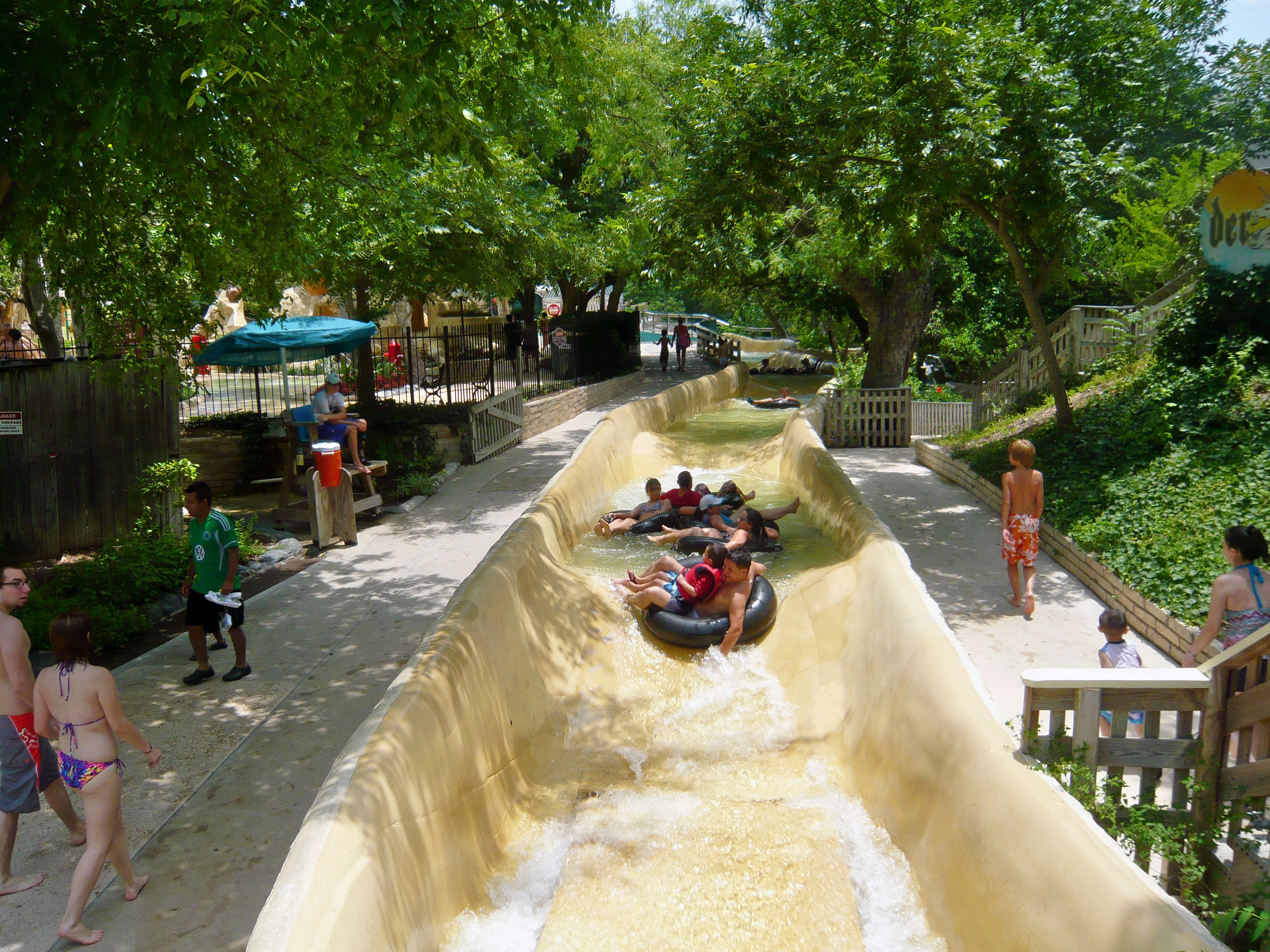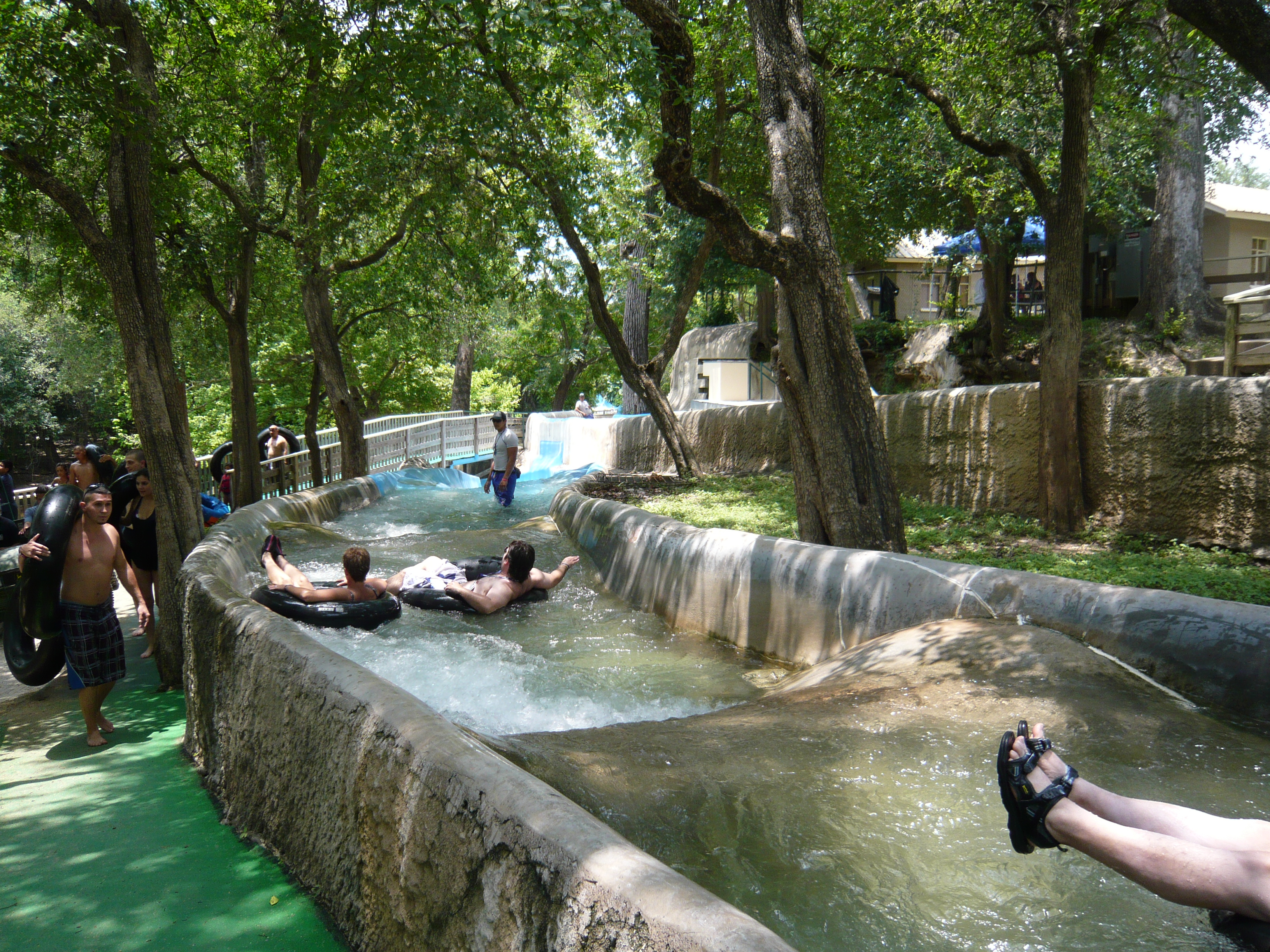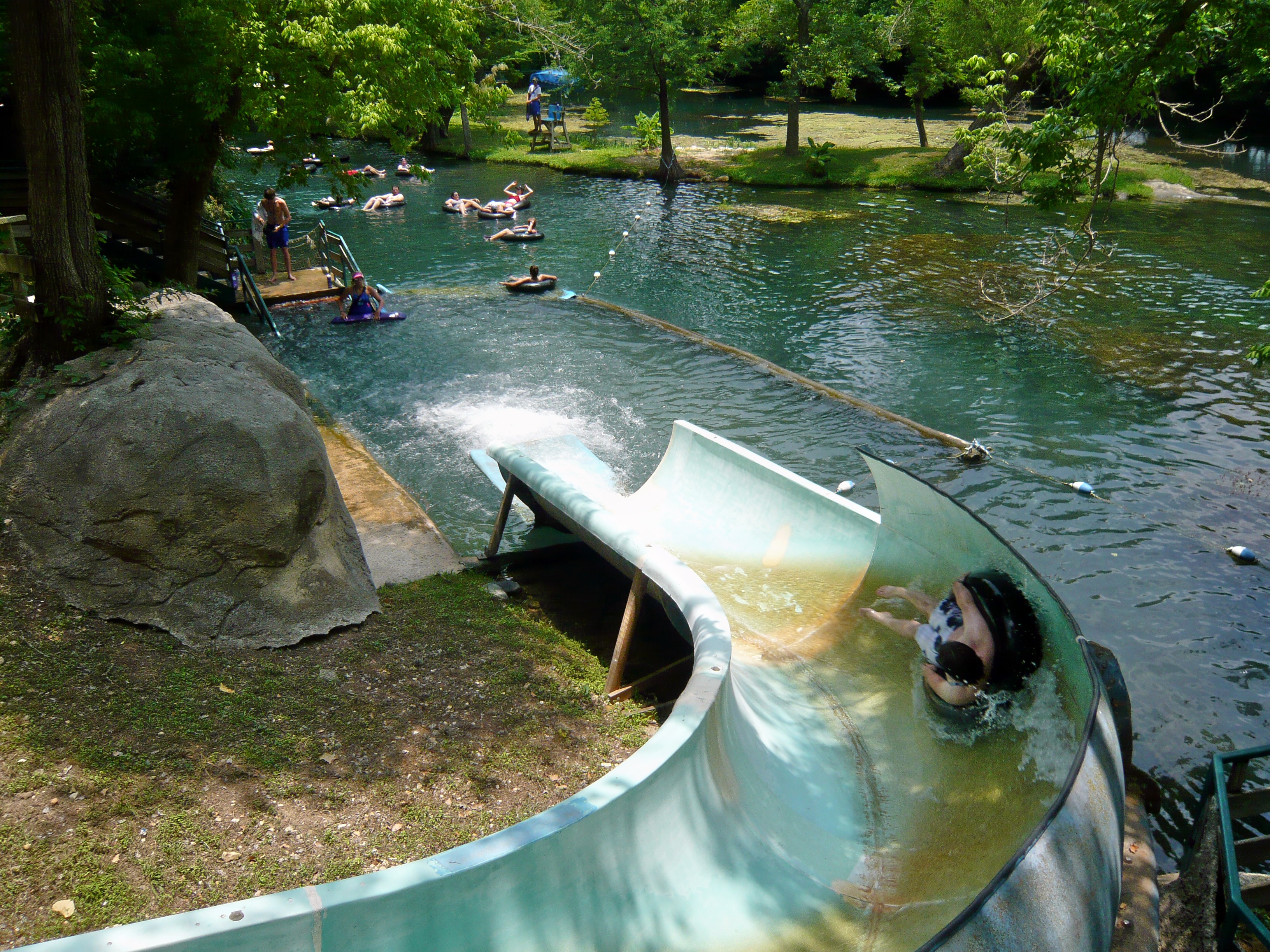 Wie mans auch dreht und wendet - mit all diesen Tube Chutes hat der Park ein absolut einzigartiges, unfassbar spassiges, süchtig machendes und schlicht geniales Attraktionensystem erschaffen, von dem man fast nicht genug kriegen kann! Zuerst eher abschreckend aussehende Warteschlangen bewegen sich durch den hohen Throughput an Parkbesuchern immer sehr rasch voran und man bekommt dann ja auch immer ein mehrere Minuten dauerndes und teilweise ja durchaus auch um stolze Etappen verlängerbares Rutsch- und Flusserlebnis geboten. Hinzu kommt, dass das Ganze ja in erfrischendem kühlem Flusswasser stattfindet und grossteils durch schattige Vegetation führt - und schon hat man die perfekte Freizeitbeschäftigung für einen heissen Texas-Sommertag. Einfach nur super! S Alle Varianten durchzuprobieren beschäftigt die Rutschfreaks hier locker einen ganzen Tag lang, aber der Park hat ja noch anderes zu bieten: