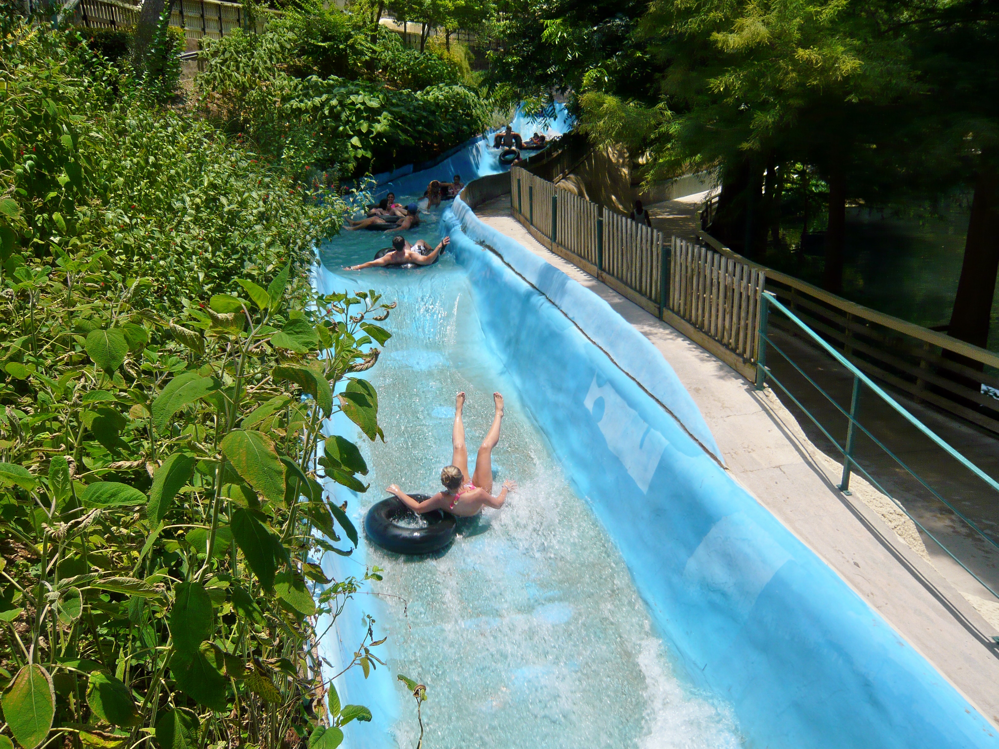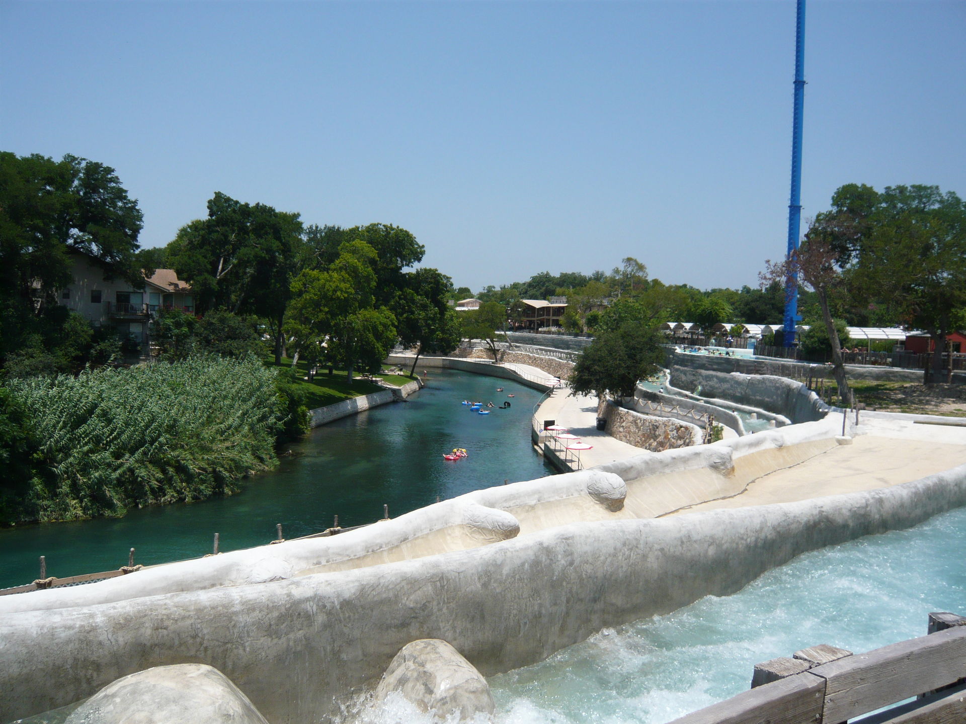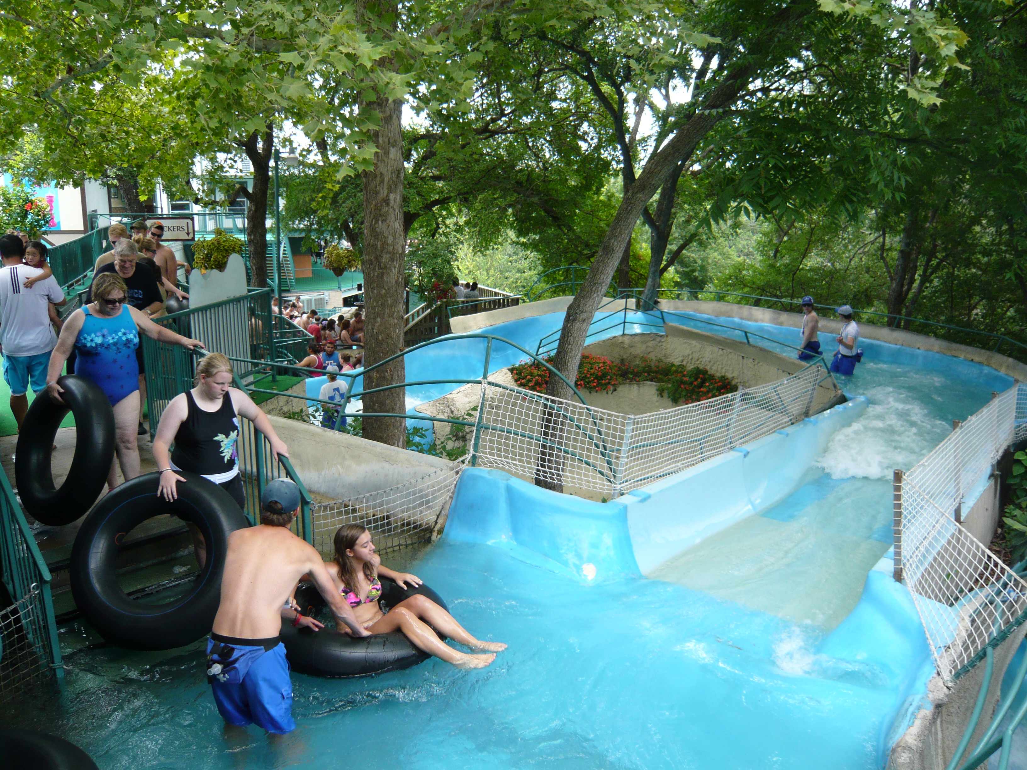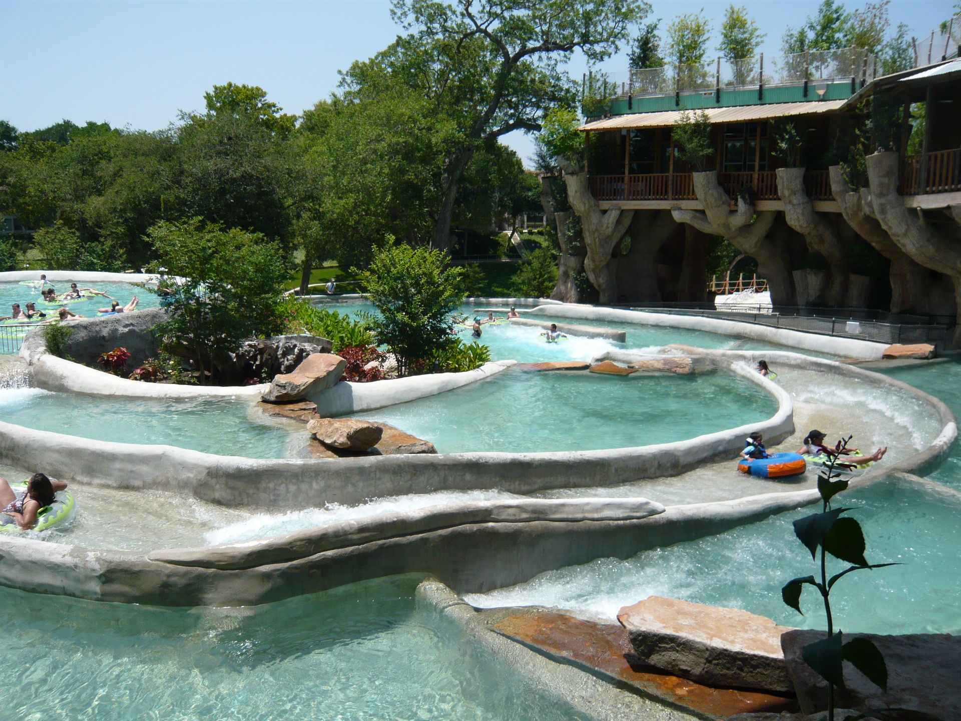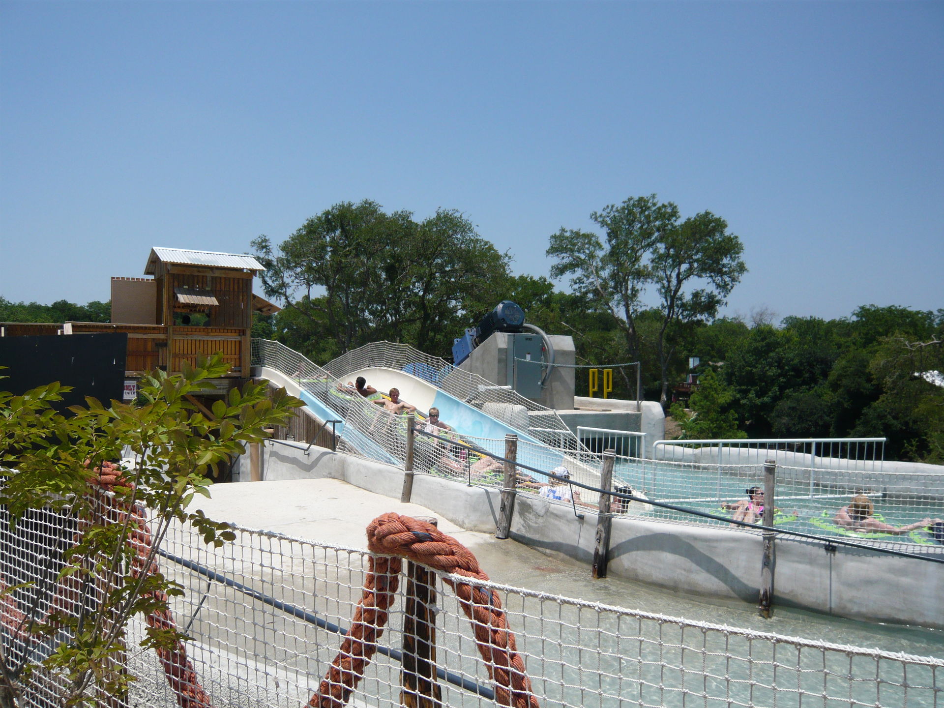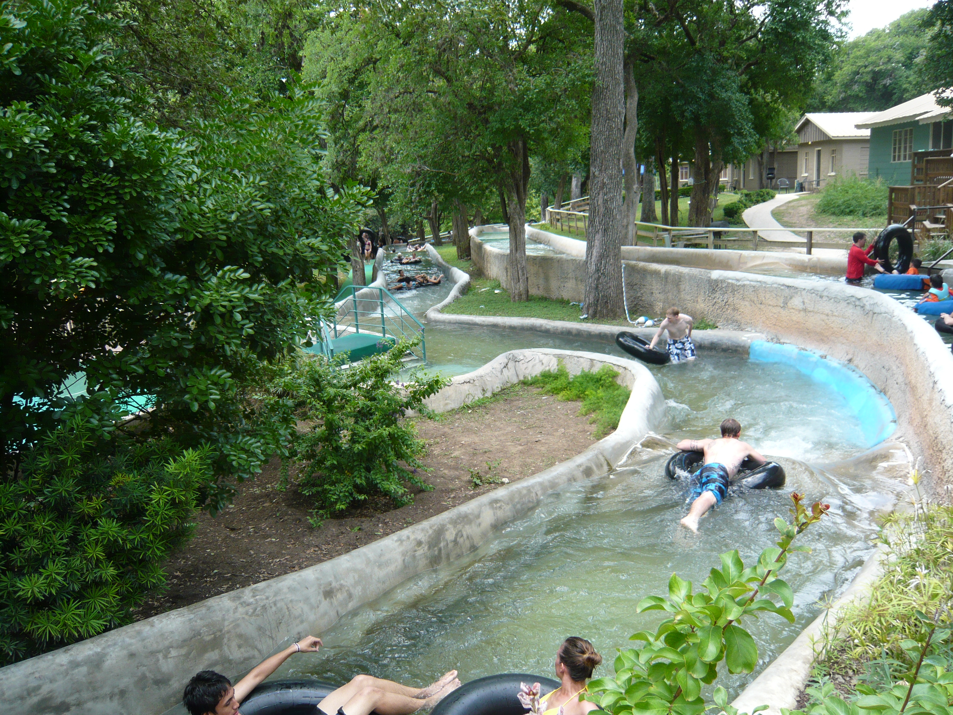 Wie mans auch dreht und wendet - mit all diesen Tube Chutes hat der Park ein absolut einzigartiges, unfassbar spassiges, süchtig machendes und schlicht geniales Attraktionensystem erschaffen, von dem man fast nicht genug kriegen kann! Zuerst eher abschreckend aussehende Warteschlangen bewegen sich durch den hohen Throughput an Parkbesuchern immer sehr rasch voran und man bekommt dann ja auch immer ein mehrere Minuten dauerndes und teilweise ja durchaus auch um stolze Etappen verlängerbares Rutsch- und Flusserlebnis geboten. Hinzu kommt, dass das Ganze ja in erfrischendem kühlem Flusswasser stattfindet und grossteils durch schattige Vegetation führt - und schon hat man die perfekte Freizeitbeschäftigung für einen heissen Texas-Sommertag. Einfach nur super! S Alle Varianten durchzuprobieren beschäftigt die Rutschfreaks hier locker einen ganzen Tag lang, aber der Park hat ja noch anderes zu bieten: