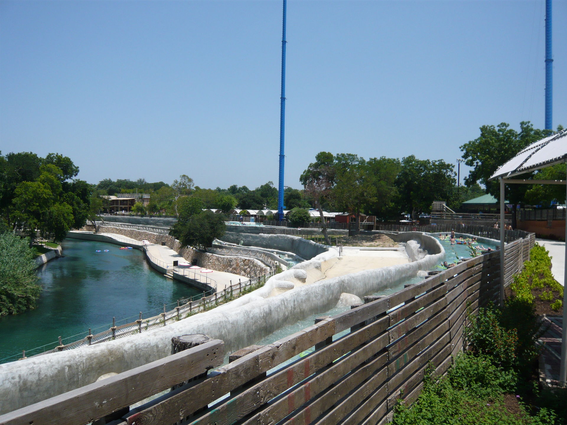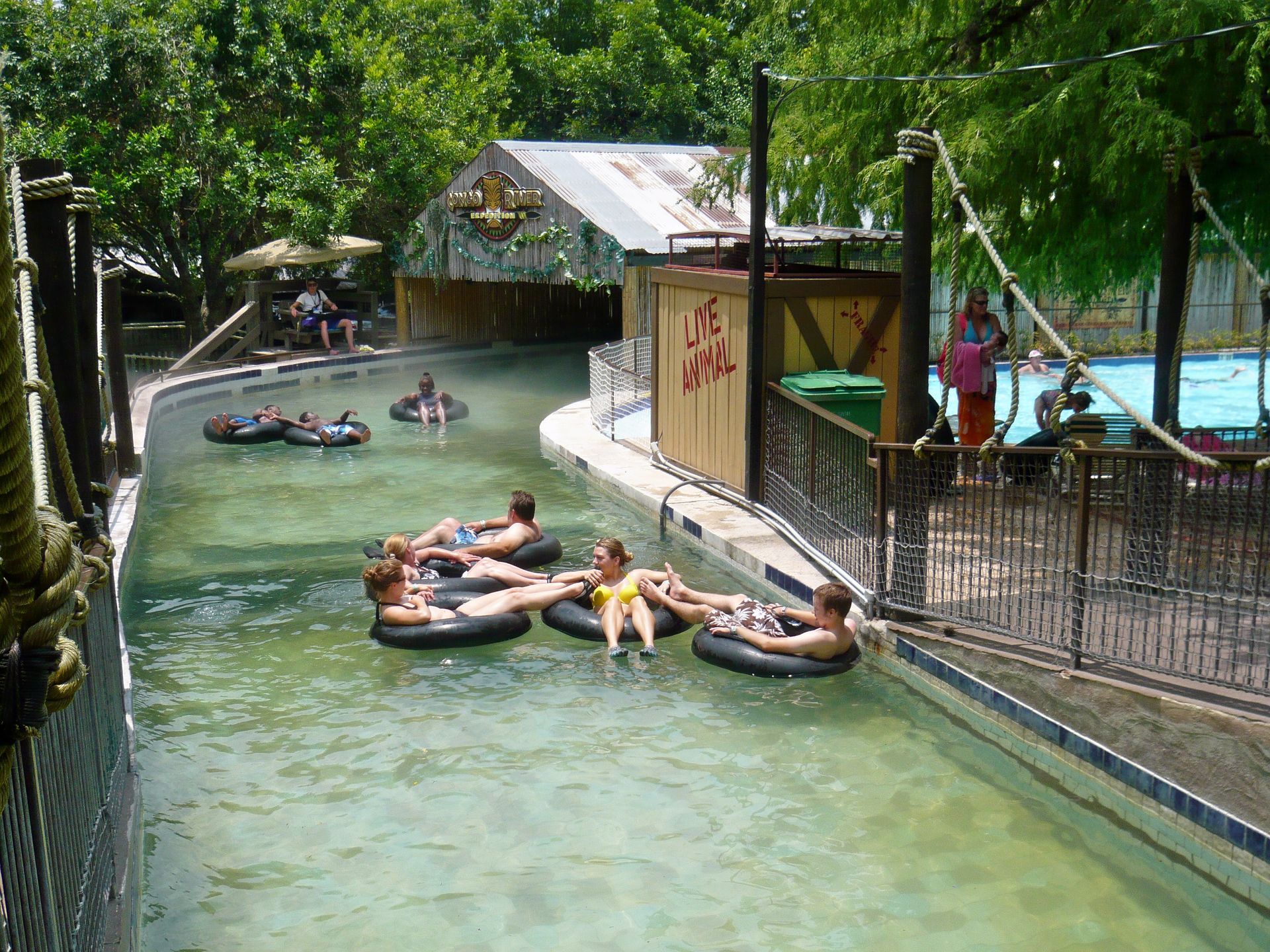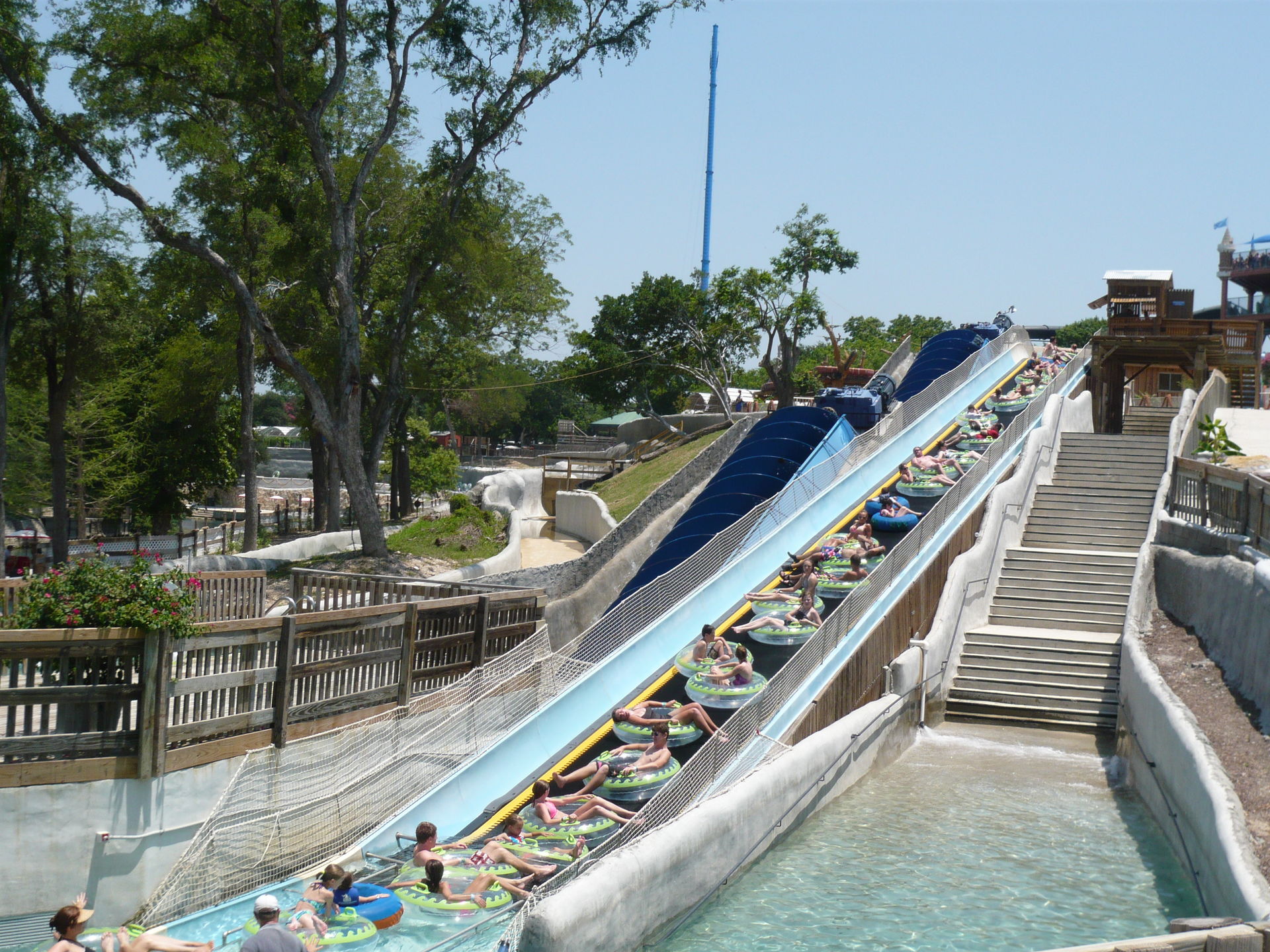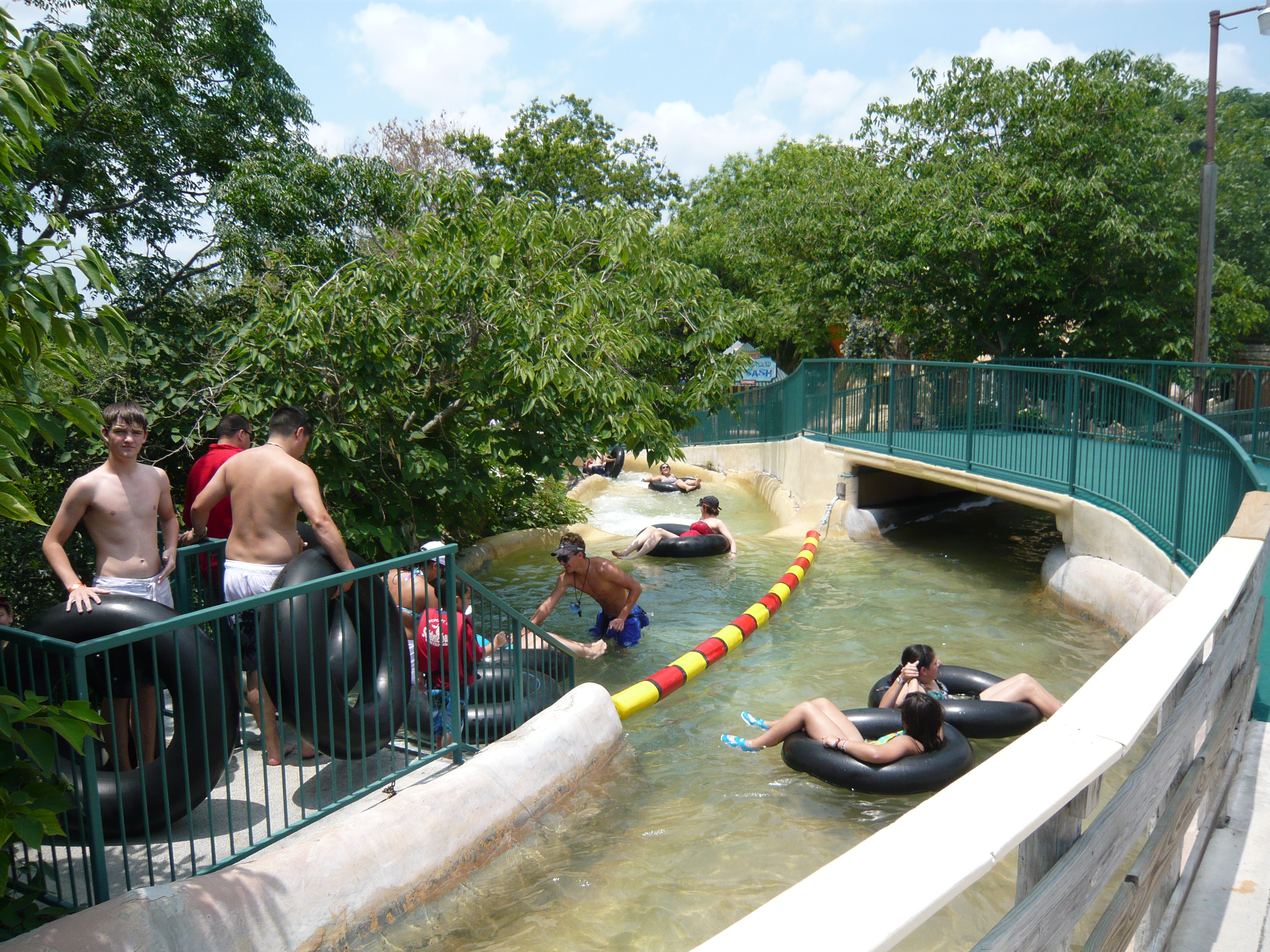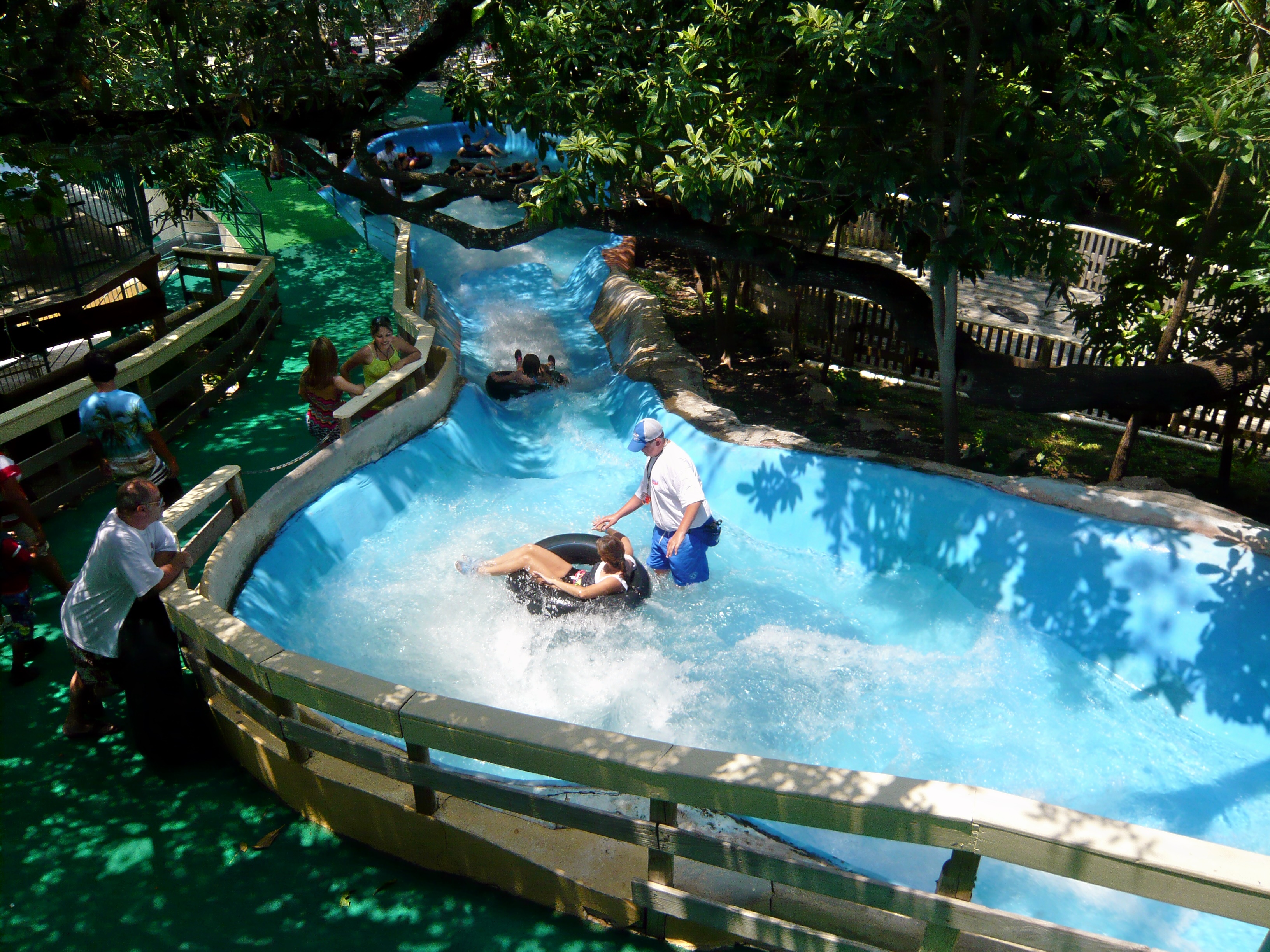 Wie mans auch dreht und wendet - mit all diesen Tube Chutes hat der Park ein absolut einzigartiges, unfassbar spassiges, süchtig machendes und schlicht geniales Attraktionensystem erschaffen, von dem man fast nicht genug kriegen kann! Zuerst eher abschreckend aussehende Warteschlangen bewegen sich durch den hohen Throughput an Parkbesuchern immer sehr rasch voran und man bekommt dann ja auch immer ein mehrere Minuten dauerndes und teilweise ja durchaus auch um stolze Etappen verlängerbares Rutsch- und Flusserlebnis geboten. Hinzu kommt, dass das Ganze ja in erfrischendem kühlem Flusswasser stattfindet und grossteils durch schattige Vegetation führt - und schon hat man die perfekte Freizeitbeschäftigung für einen heissen Texas-Sommertag. Einfach nur super! S Alle Varianten durchzuprobieren beschäftigt die Rutschfreaks hier locker einen ganzen Tag lang, aber der Park hat ja noch anderes zu bieten: