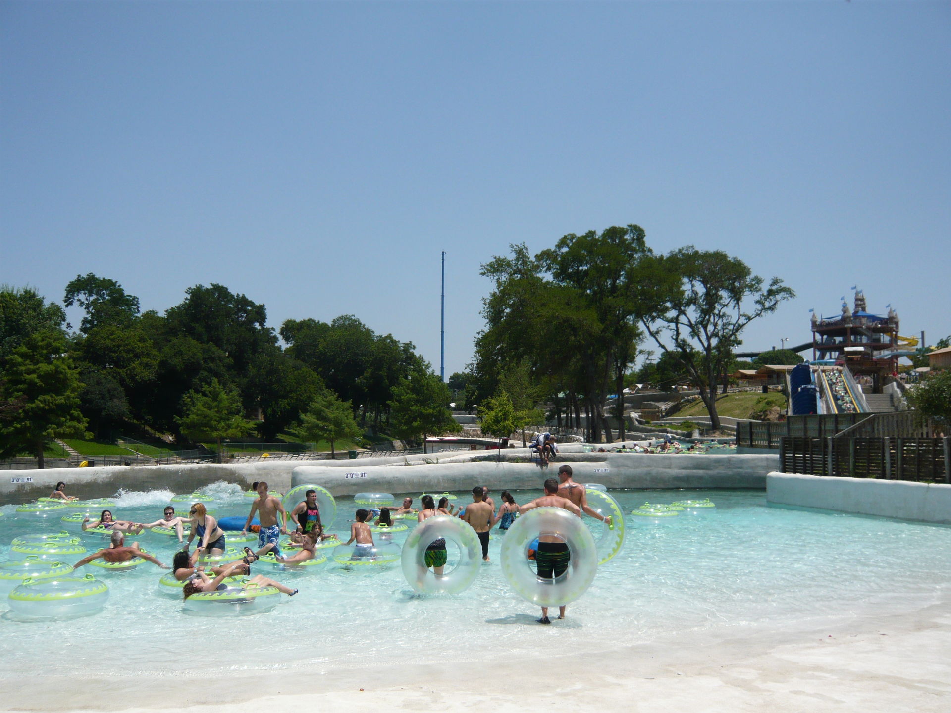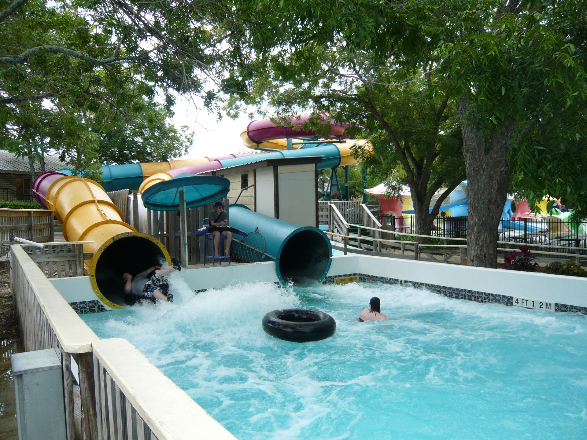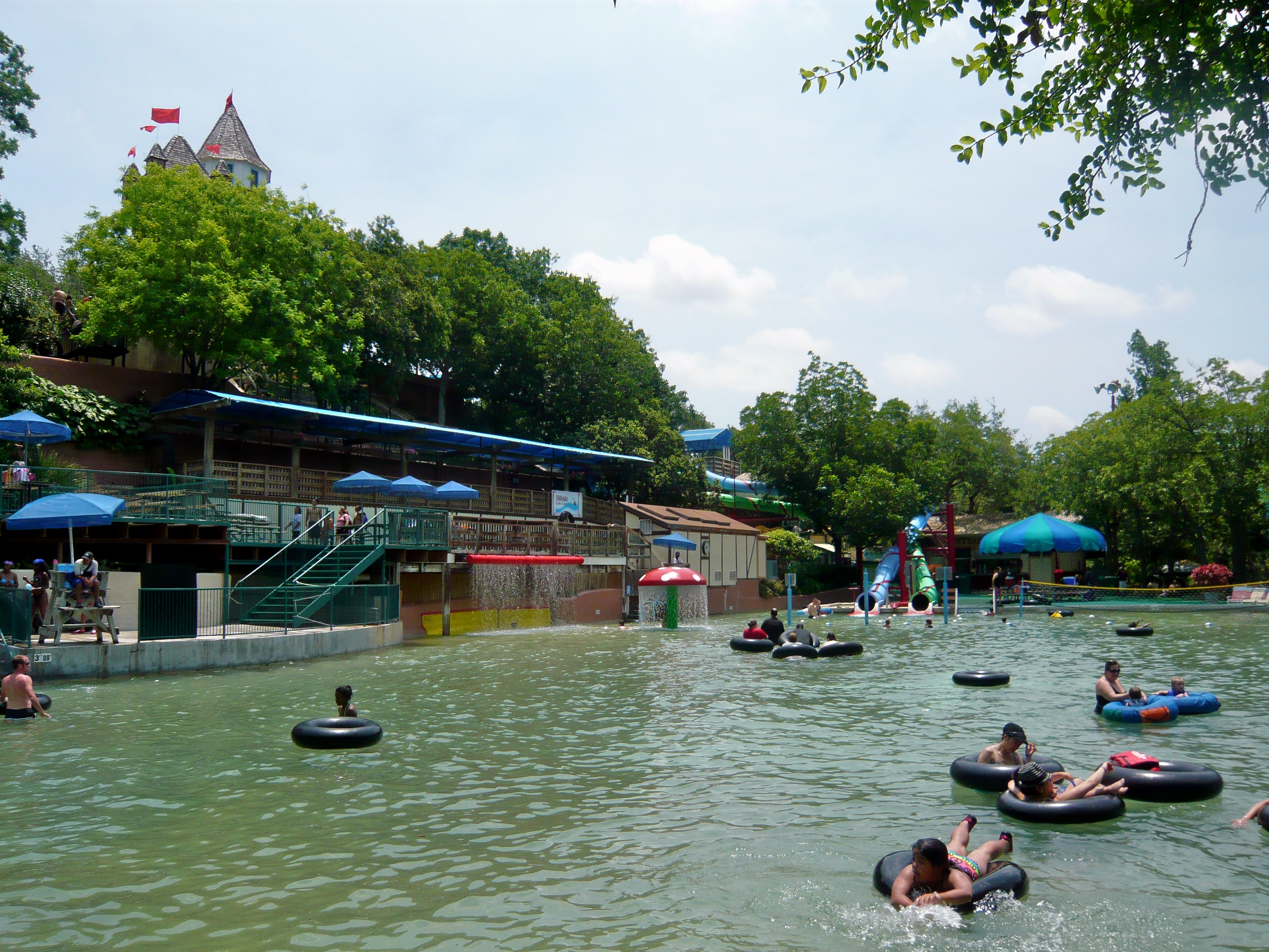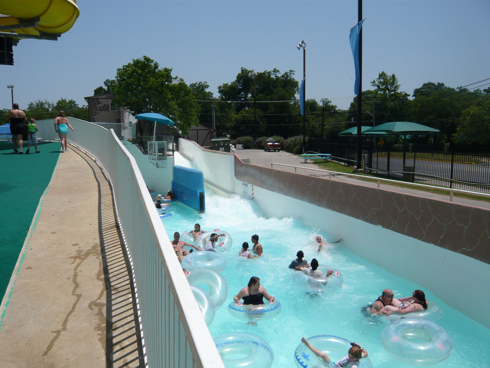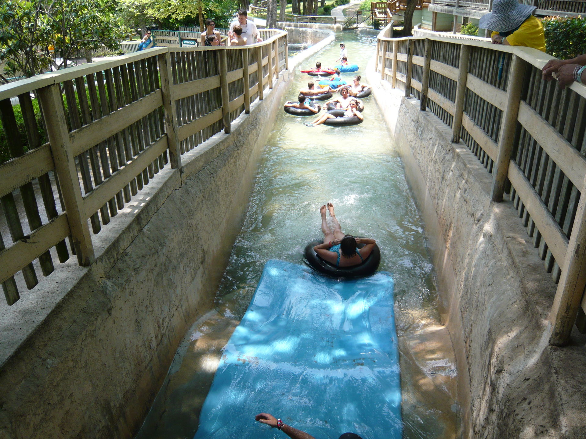 Wie mans auch dreht und wendet - mit all diesen Tube Chutes hat der Park ein absolut einzigartiges, unfassbar spassiges, süchtig machendes und schlicht geniales Attraktionensystem erschaffen, von dem man fast nicht genug kriegen kann! Zuerst eher abschreckend aussehende Warteschlangen bewegen sich durch den hohen Throughput an Parkbesuchern immer sehr rasch voran und man bekommt dann ja auch immer ein mehrere Minuten dauerndes und teilweise ja durchaus auch um stolze Etappen verlängerbares Rutsch- und Flusserlebnis geboten. Hinzu kommt, dass das Ganze ja in erfrischendem kühlem Flusswasser stattfindet und grossteils durch schattige Vegetation führt - und schon hat man die perfekte Freizeitbeschäftigung für einen heissen Texas-Sommertag. Einfach nur super! S Alle Varianten durchzuprobieren beschäftigt die Rutschfreaks hier locker einen ganzen Tag lang, aber der Park hat ja noch anderes zu bieten: