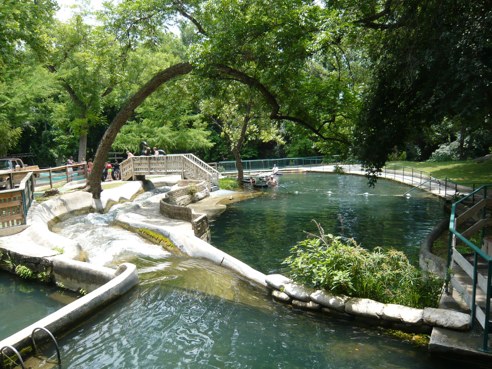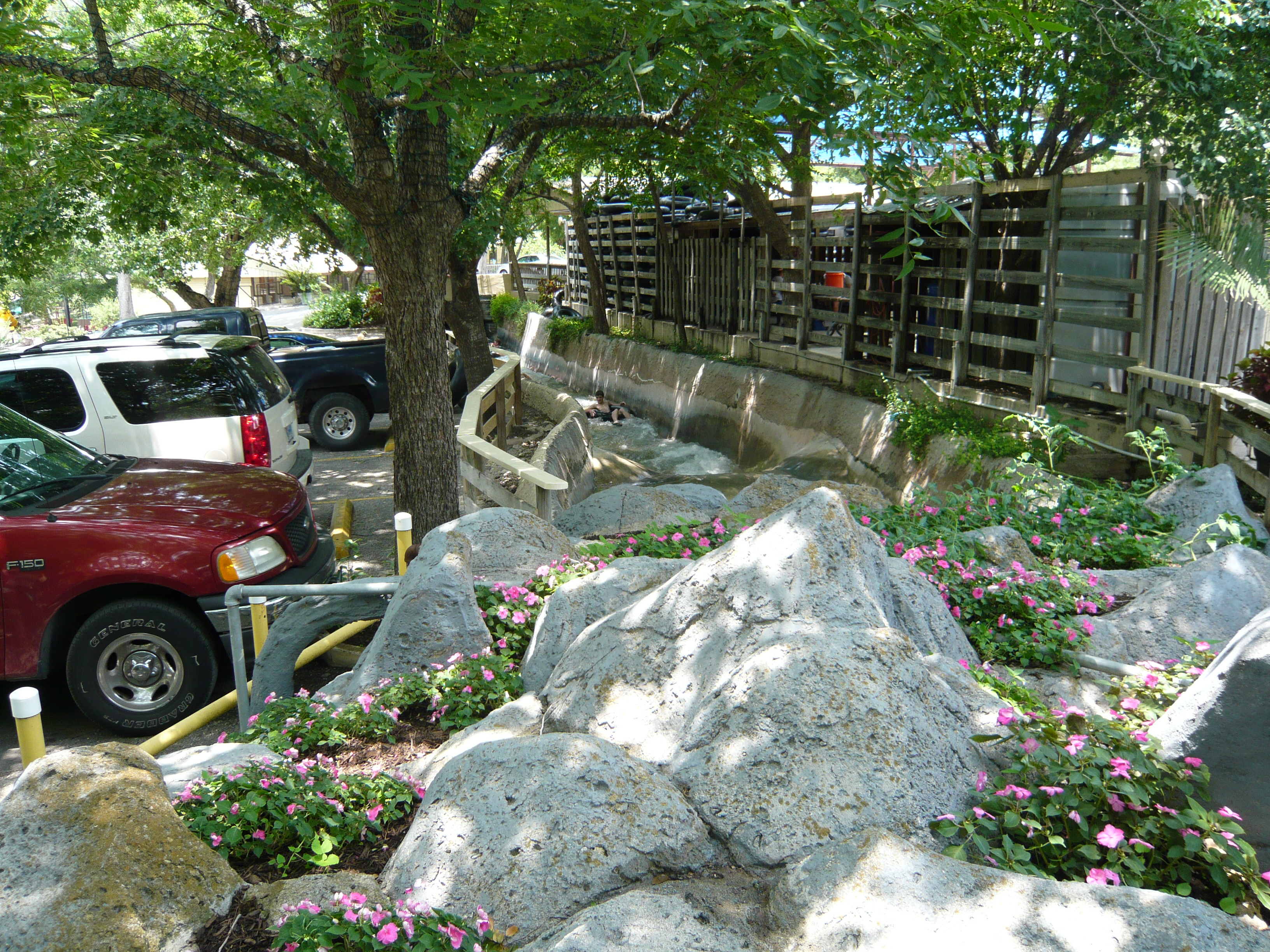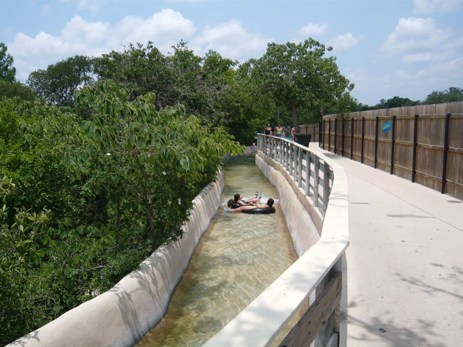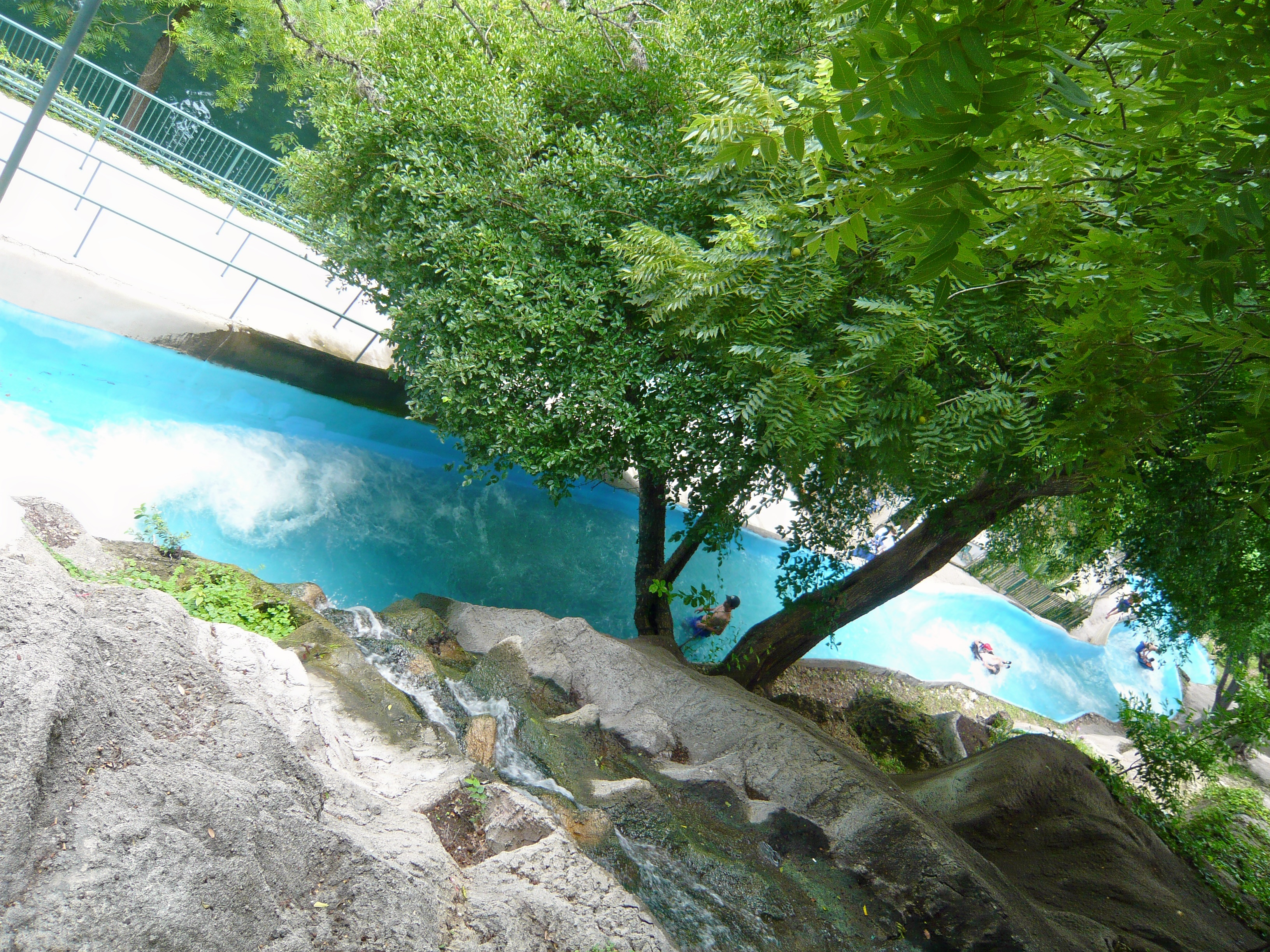 Bei diesen könnte man fast den Eindruck kriegen, dass das durch die Wasserpark-Gäste verbrauchte Wasser einfach ungefiltert in den Comal River zurückgeleitet wird. Allerdings war in der Nähe der Lagune noch eine Art Säuberungswehr zu sehen, das wahrscheinlich vom Park betrieben wird und wo das Wasser nochmals durchmuss, bevor es in den eigentlichen Comal River zurück gelangt - der Park macht sich ja streng genommen nur einen Seitenarm davon zu Nutze.